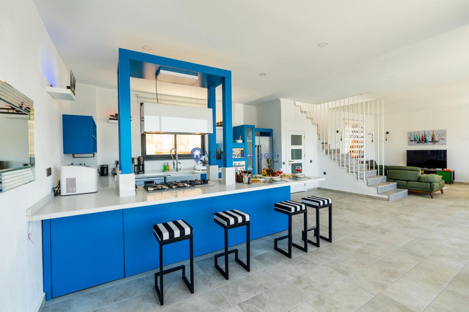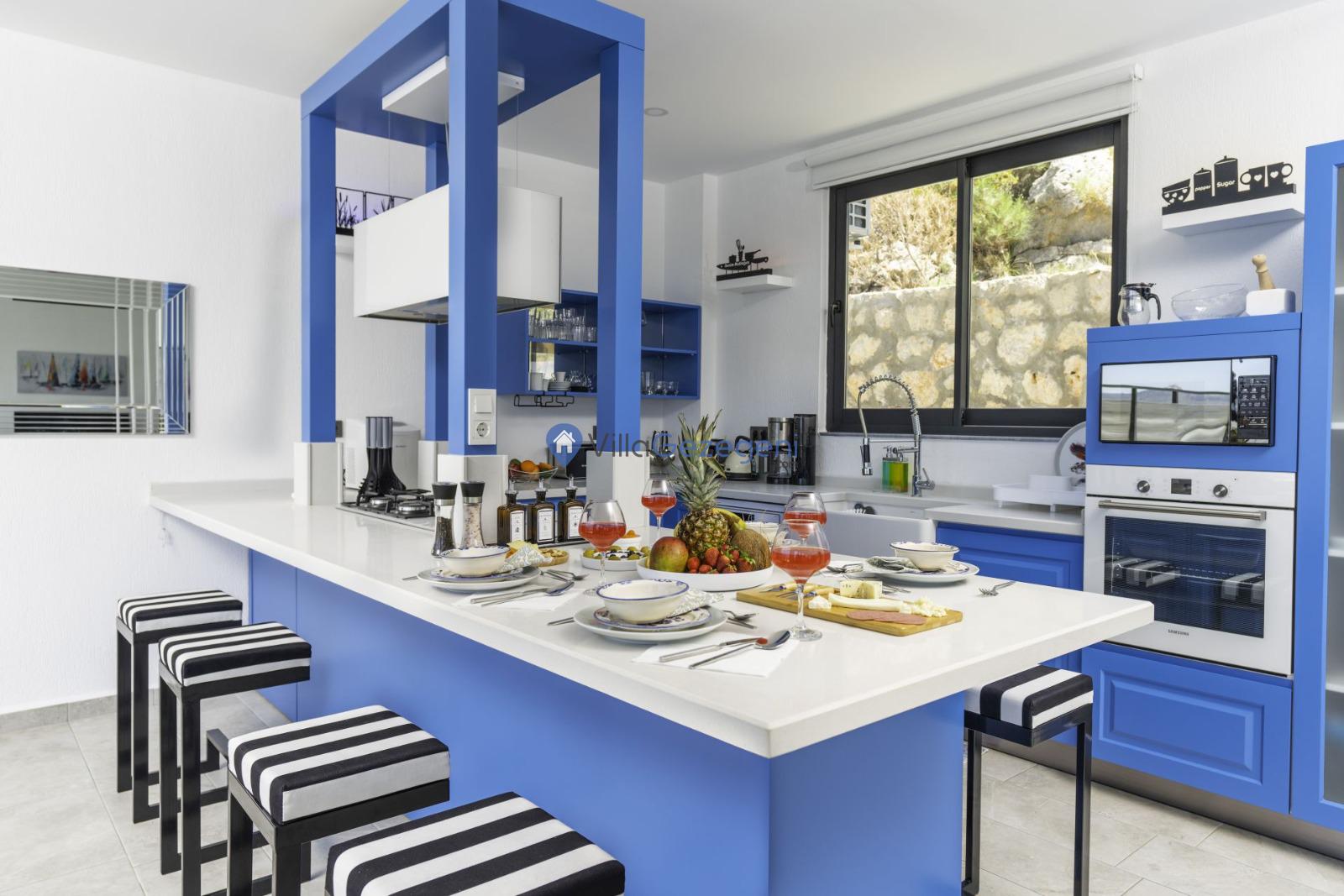 Villamız günlük hayatta sık kullanılan; Mikrodalga fırın, ankastre fırın, buzdolabı, çamaşır makinası, bulaşık makinesi, elektrikli su ısıtıcı kettle, ankastre 4’lü ocak,4 kişilik yemek takımı, kaşık ve çatal takımı, tencere ve tava takımı, bardaklar yer almaktadır. İhtiyacınız durumunda villamızda bulunmayan malzemeler hakkında bizle iletişime geçebilir ve yardım isteyebilirsiniz.