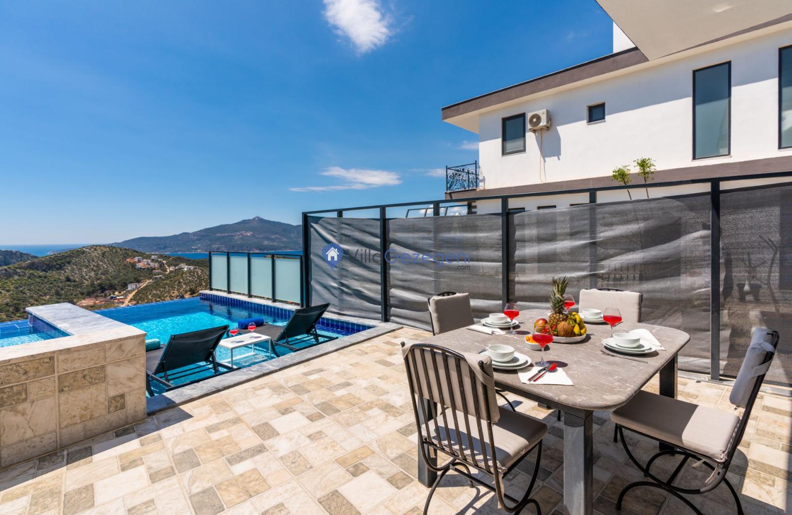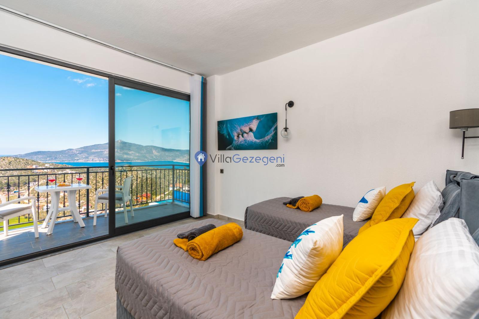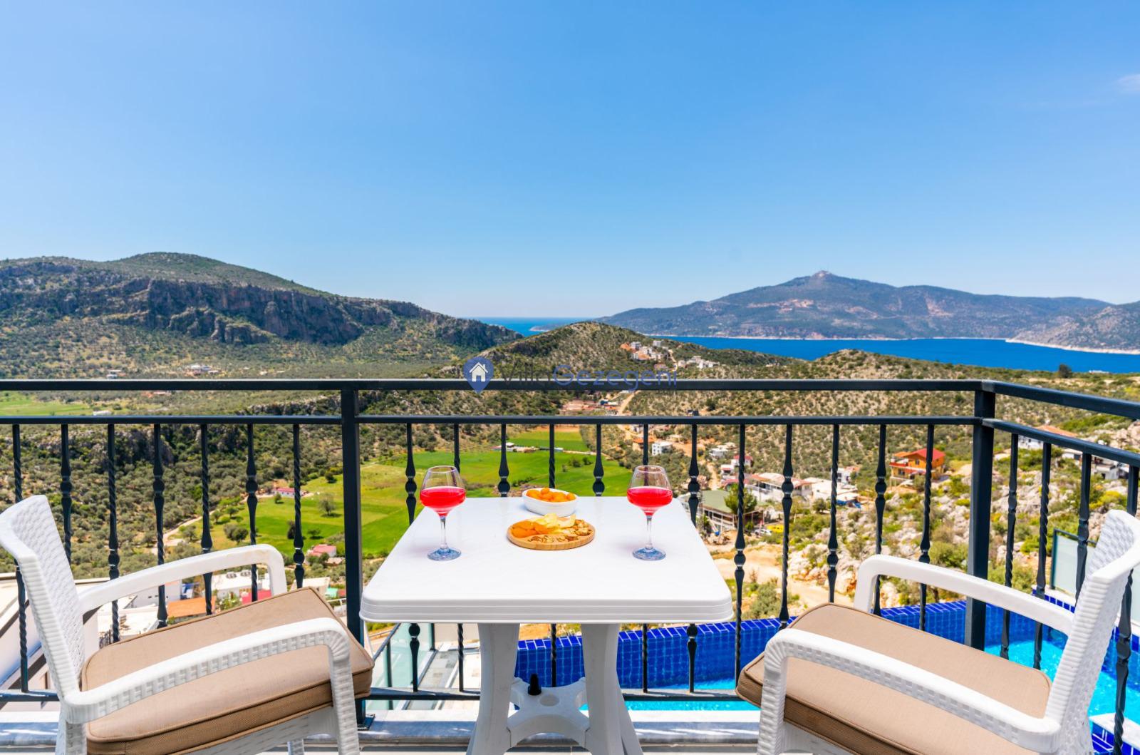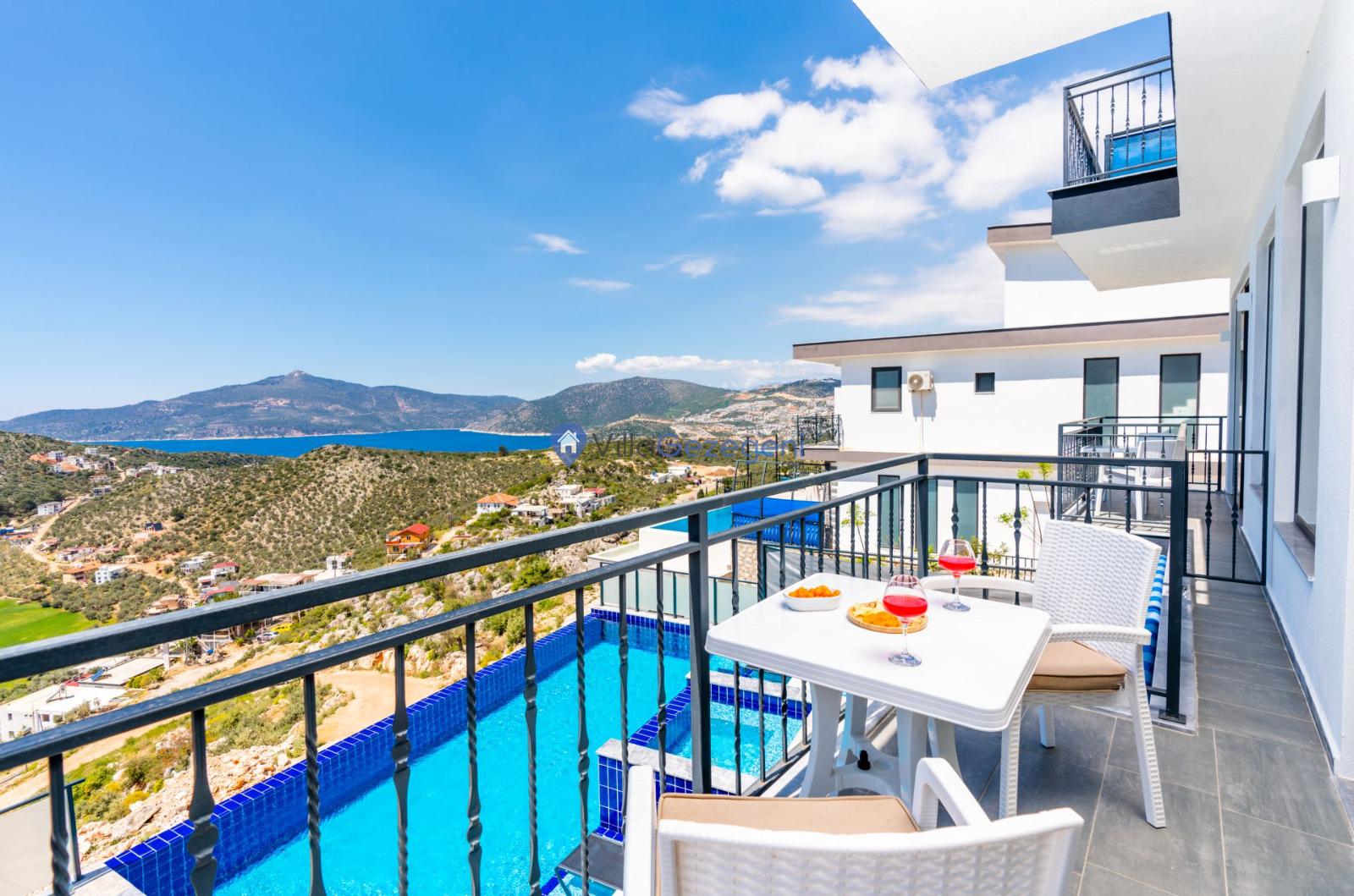 Kaş/Kalkan/Ulugöl Bölgesinde yer alan 2 yatak odalı 4 kişi kapasiteli doğa içerisinde deniz manzaralı tatil villası.
