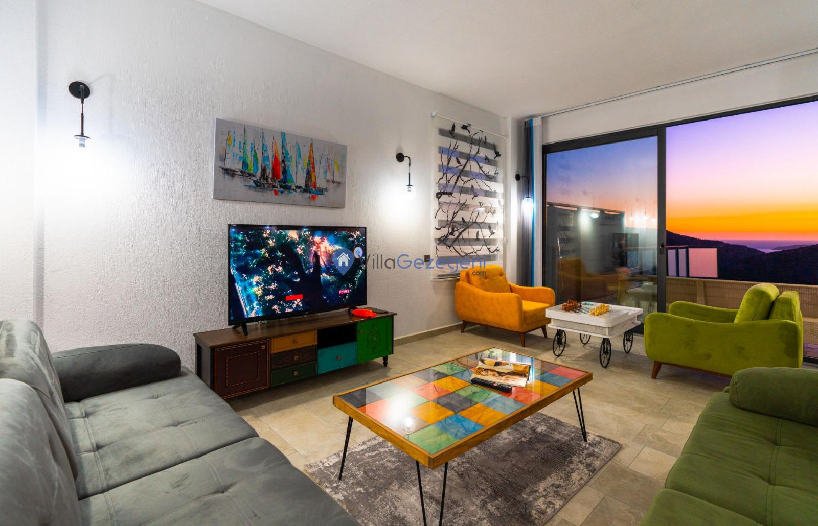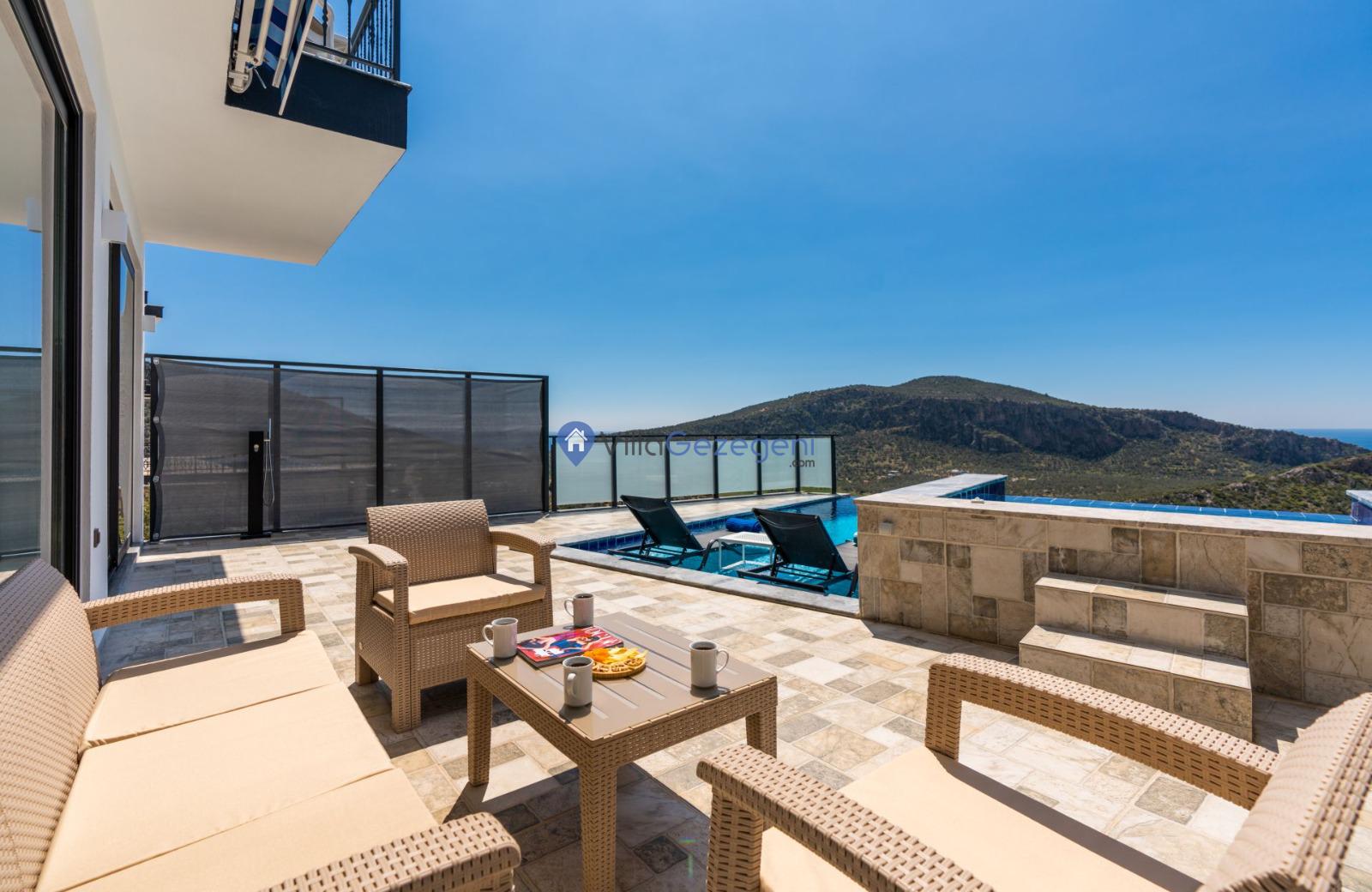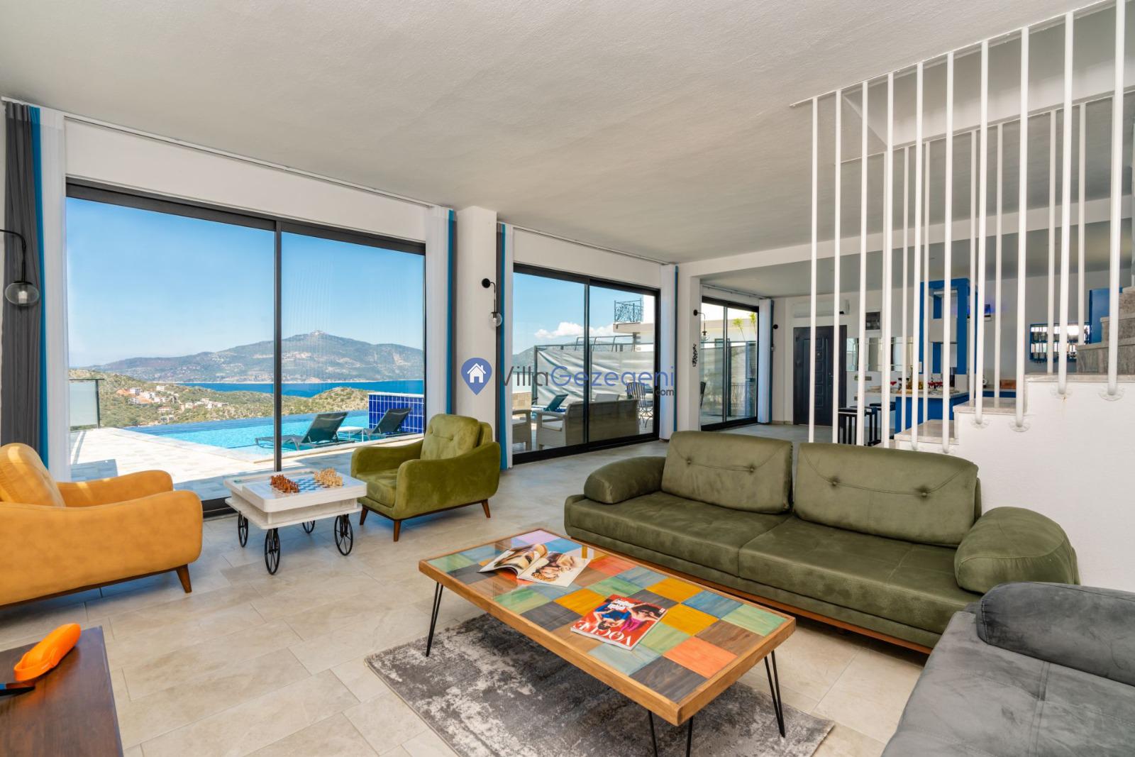 Kaş/Kalkan/Ulugöl Bölgesinde yer alan 2 yatak odalı 4 kişi kapasiteli doğa içerisinde deniz manzaralı tatil villası.
