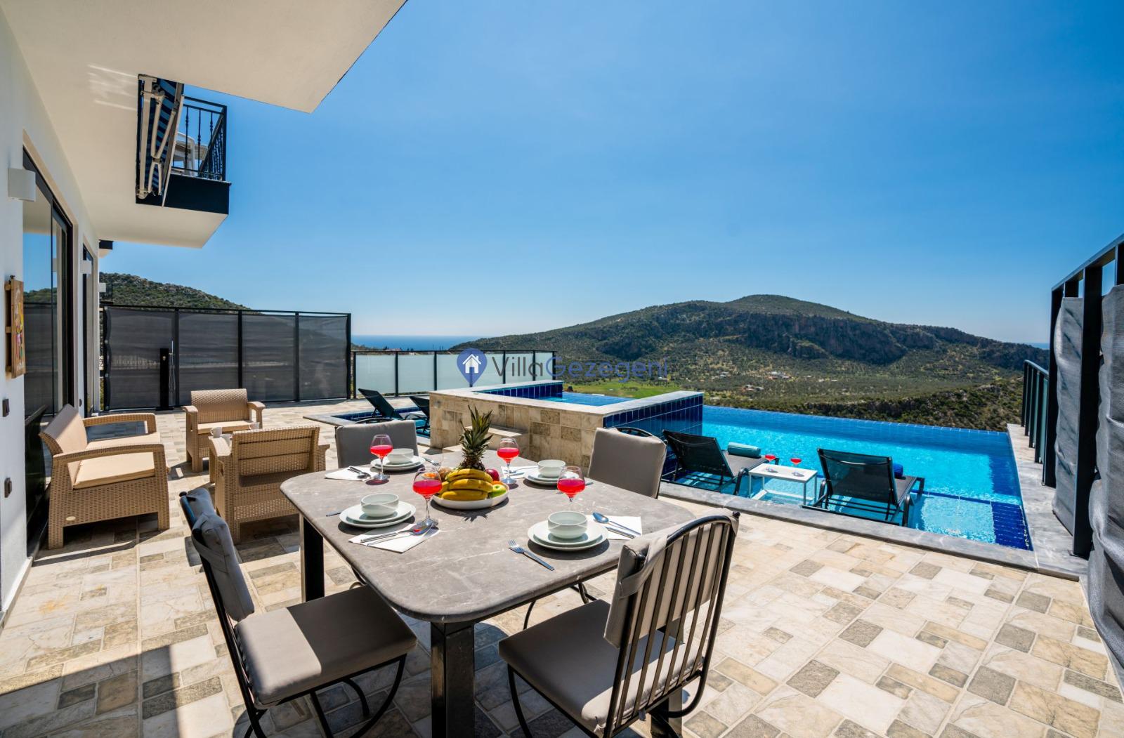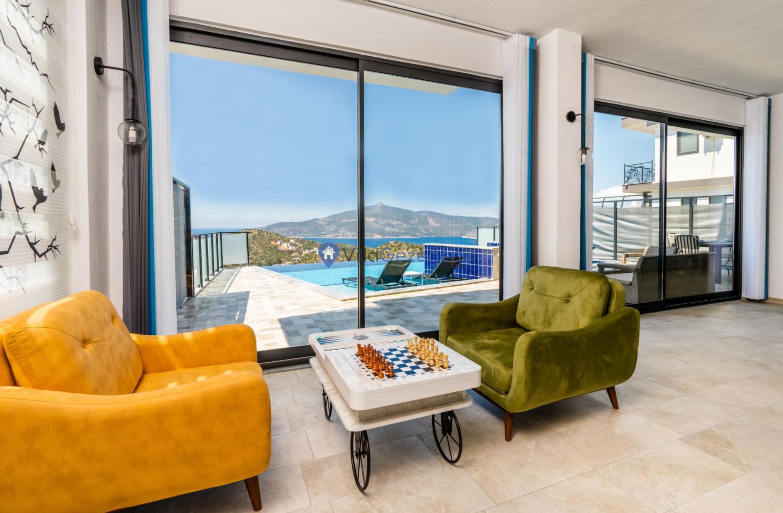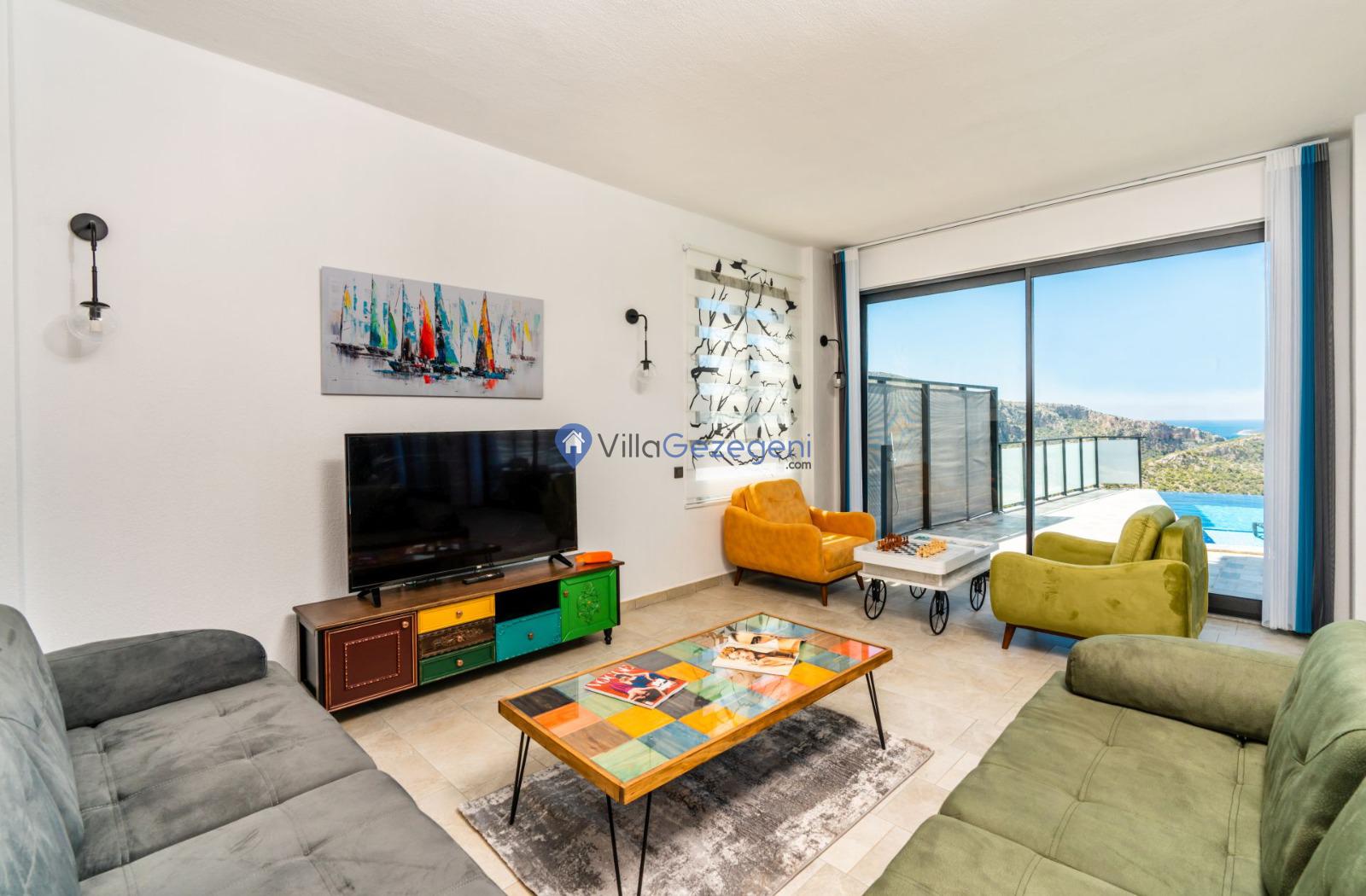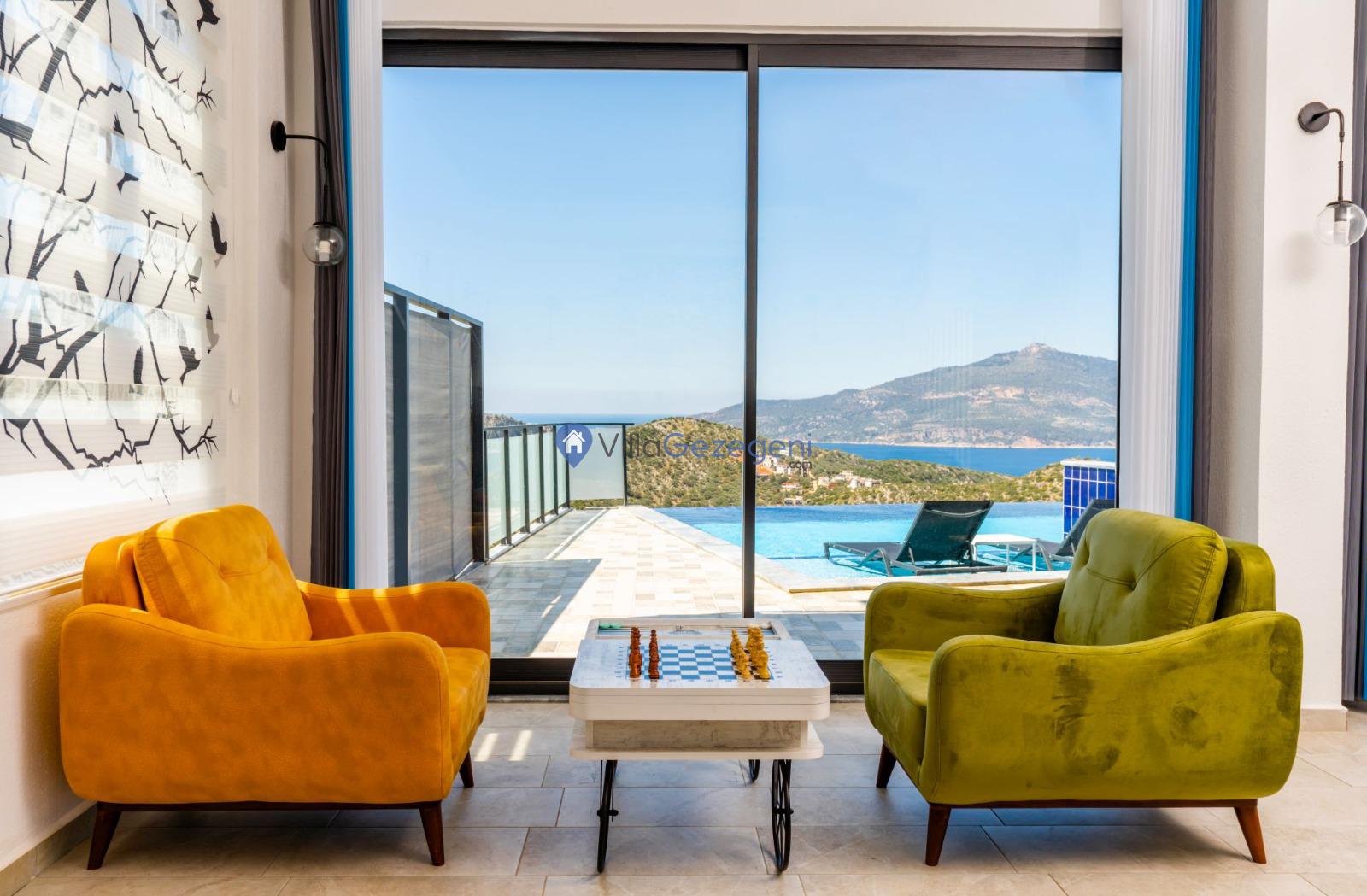 Kaş/Kalkan/Ulugöl Bölgesinde yer alan 2 yatak odalı 4 kişi kapasiteli doğa içerisinde deniz manzaralı tatil villası.
