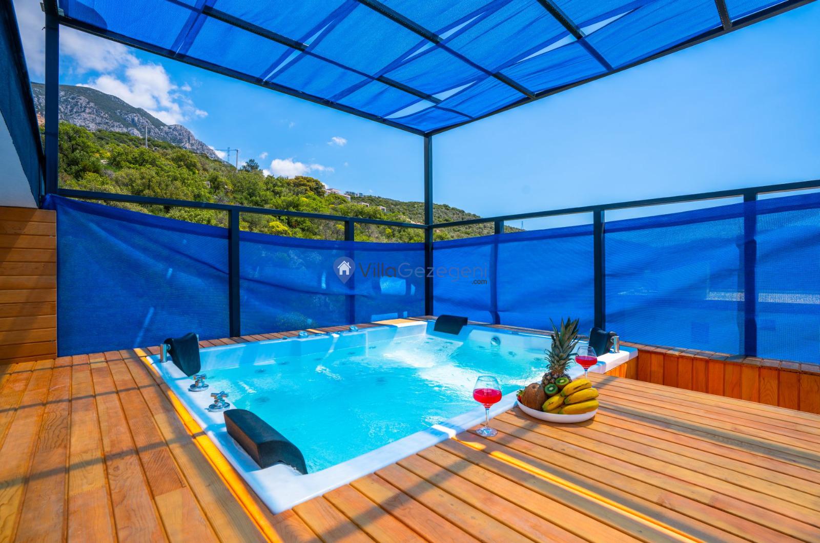 Villa Sarp Kalkan, Kalkan Ulugöl bölgesinde 4 kişi kapasiteli, salıncaklı, jakuzili, merkeze yakın, doğa içinde, muhafazakar, balayına uygun kiralık villa.