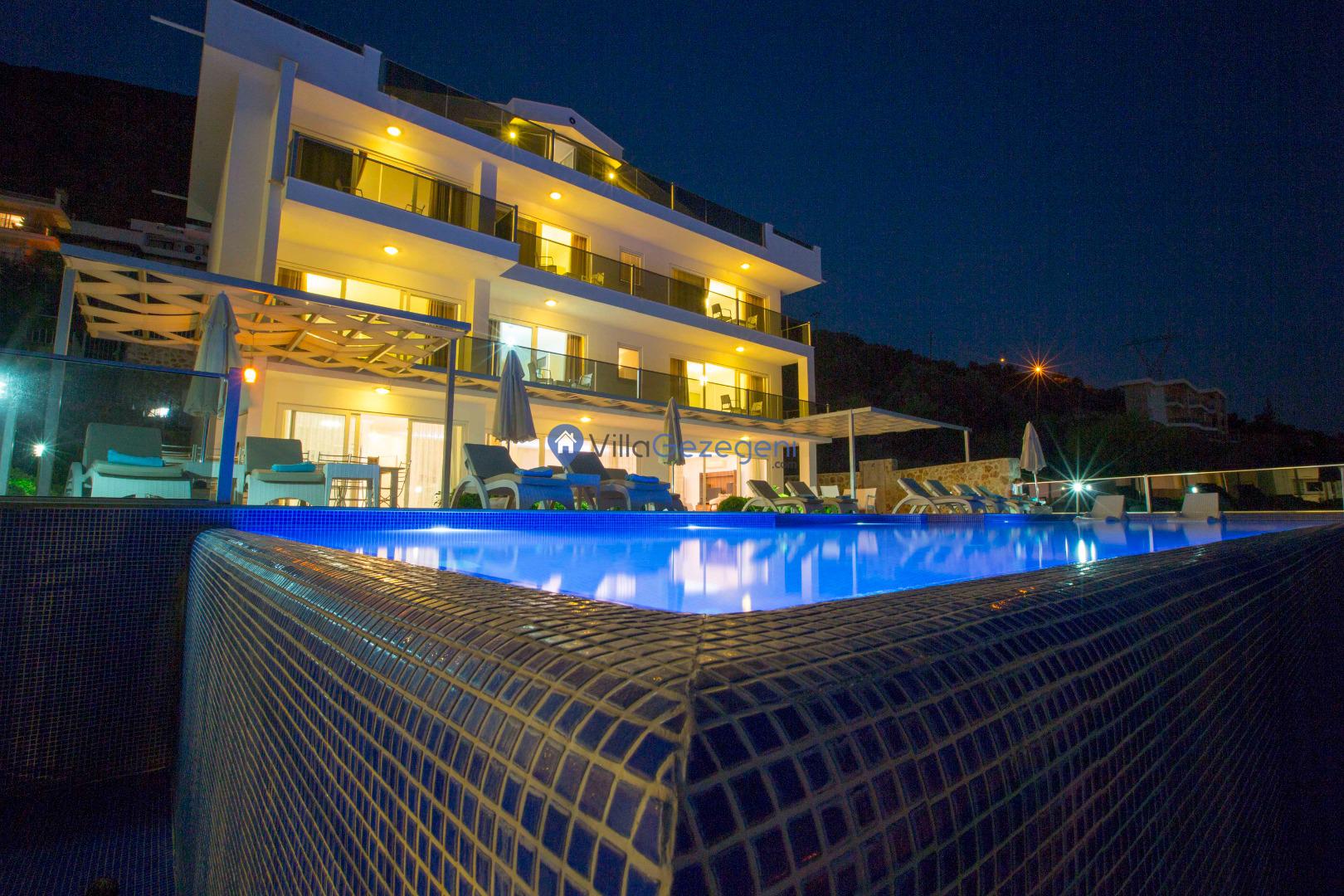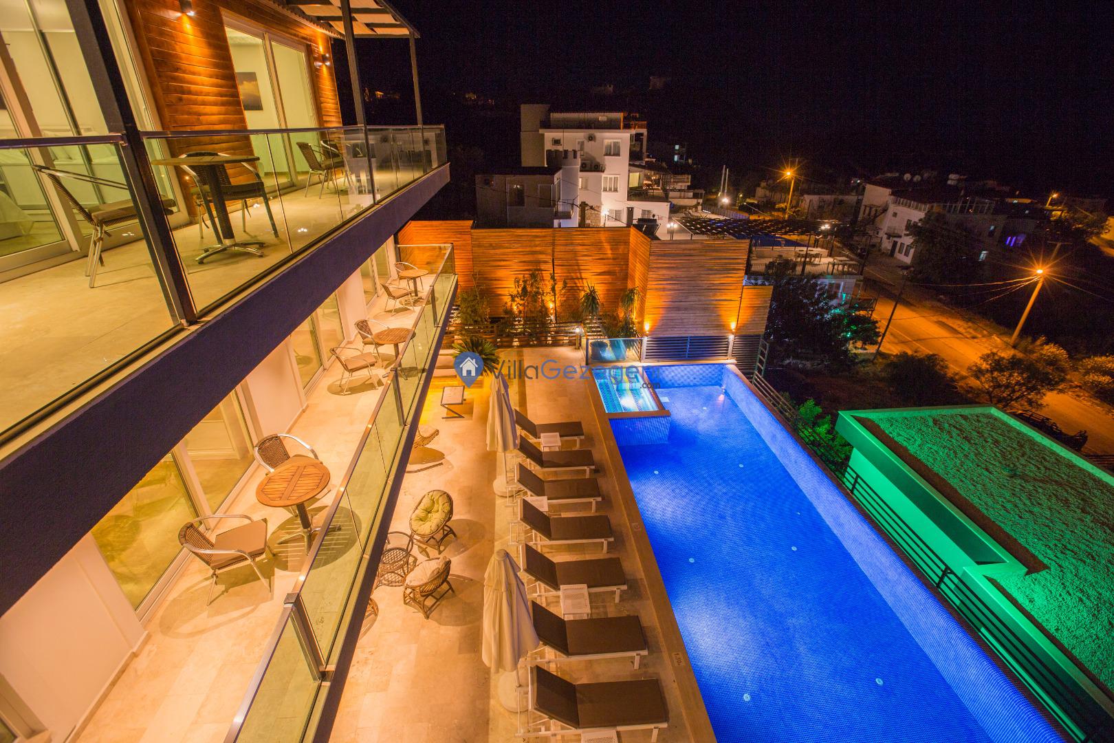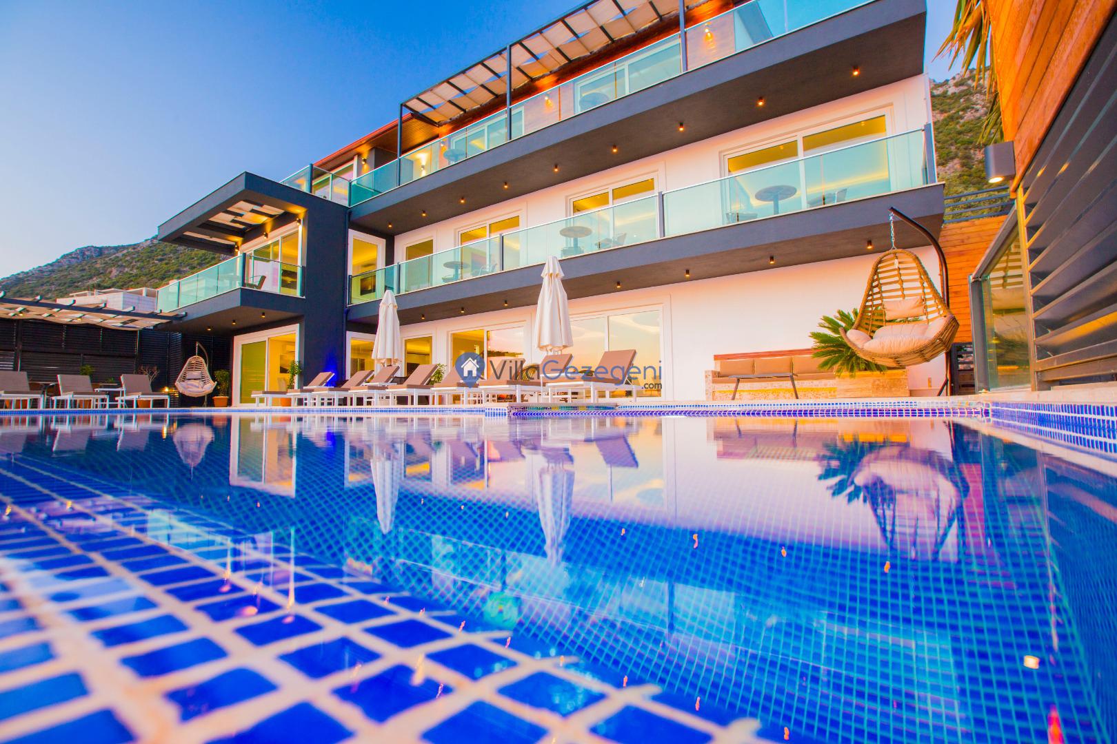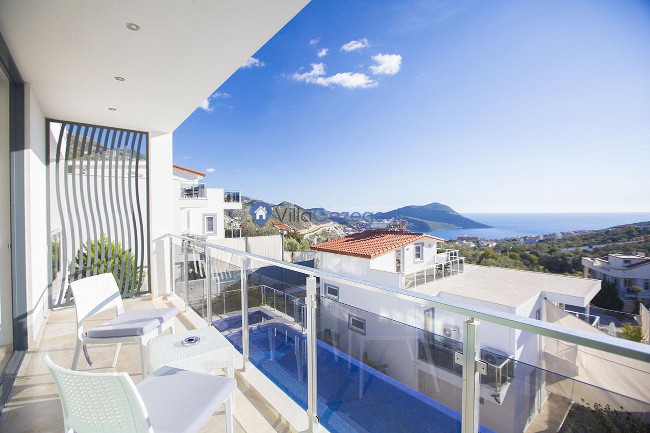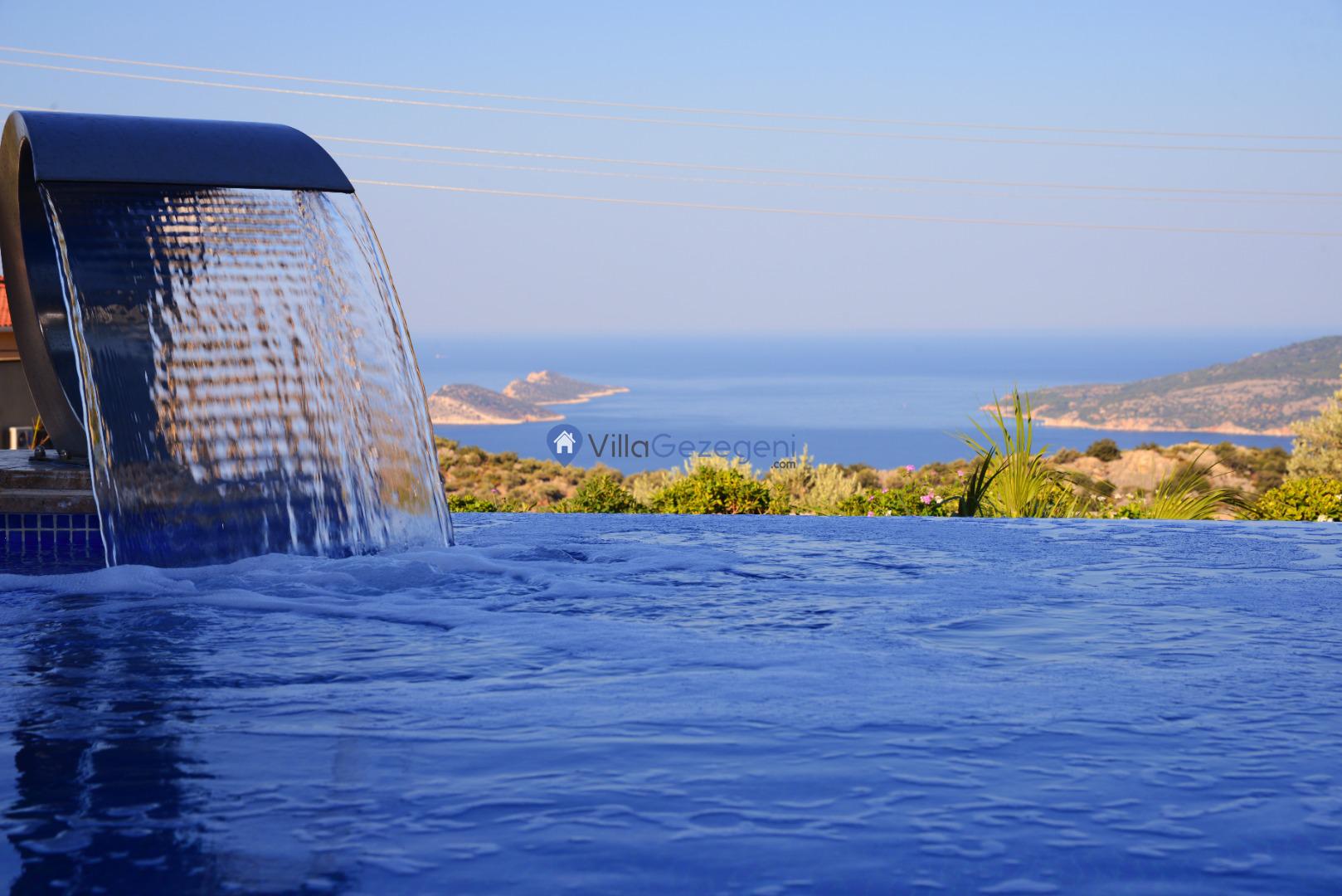 Villa Ela, Kalkan Akbel'de 12 kişilik, lüks, deniz manzaralı, jakuzili, ısıtmalı havuzlu, markete yakın, kiralık geniş aile ve arkadaş grubu villası.