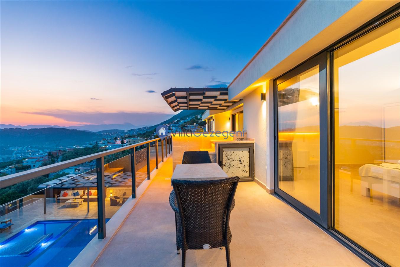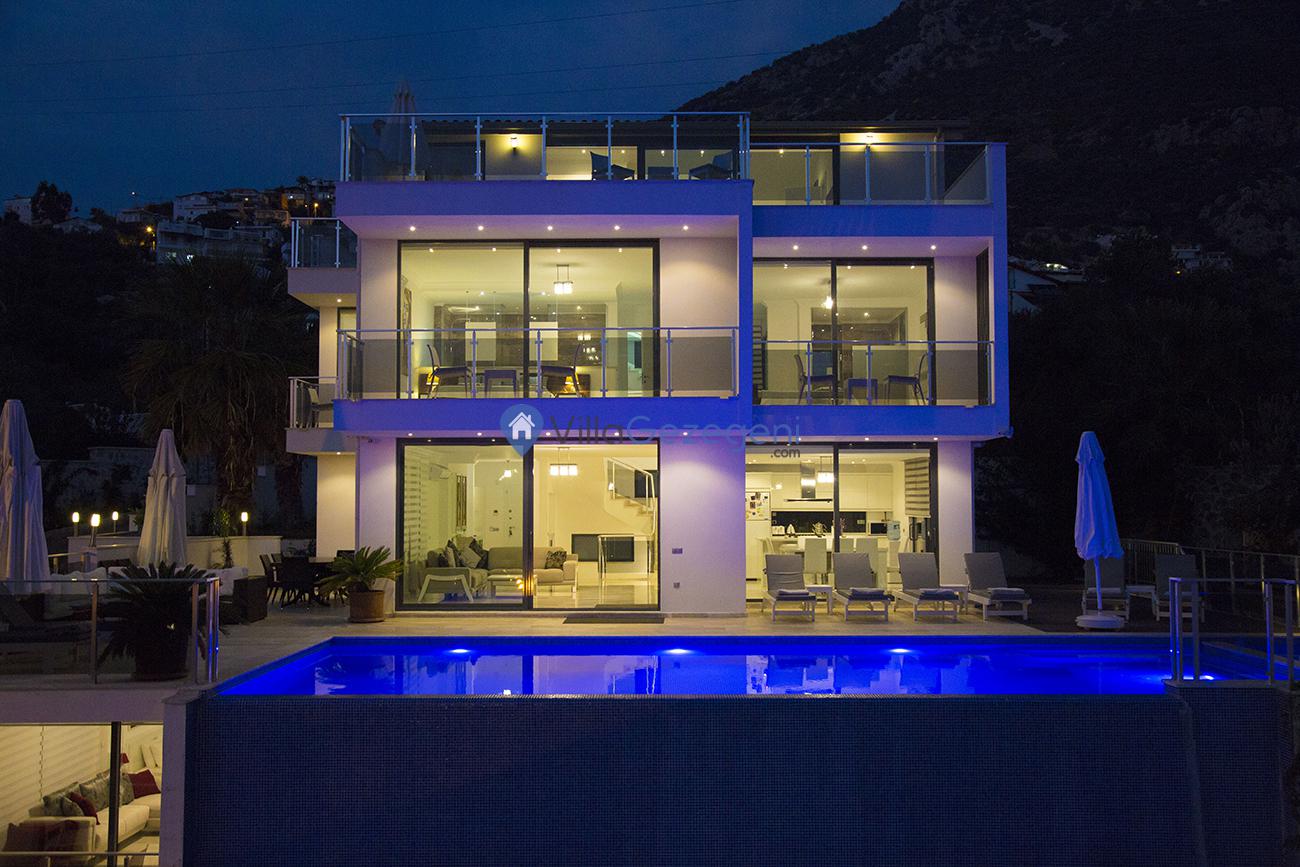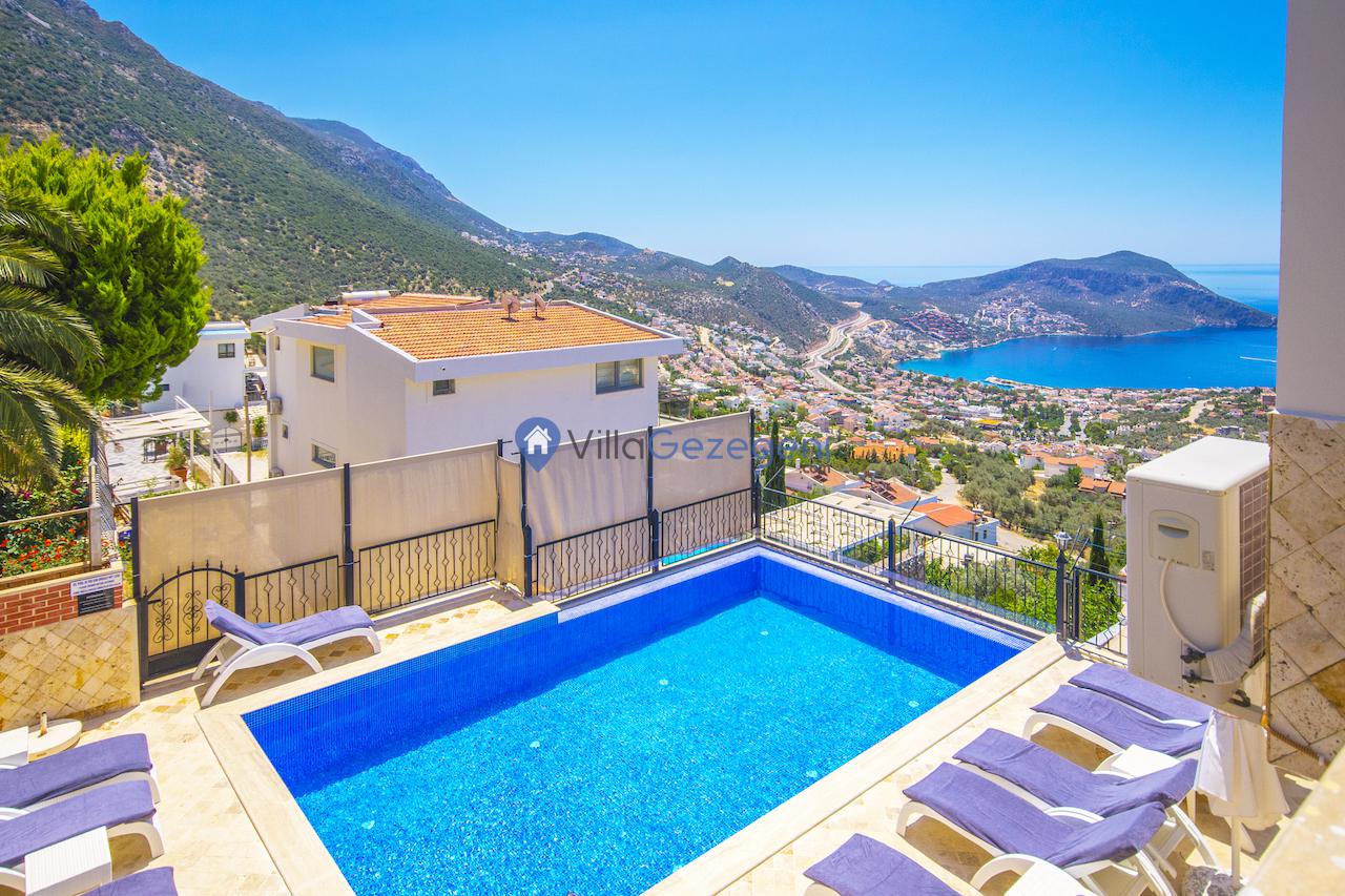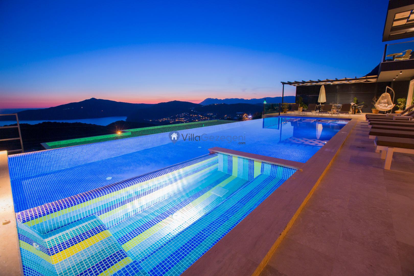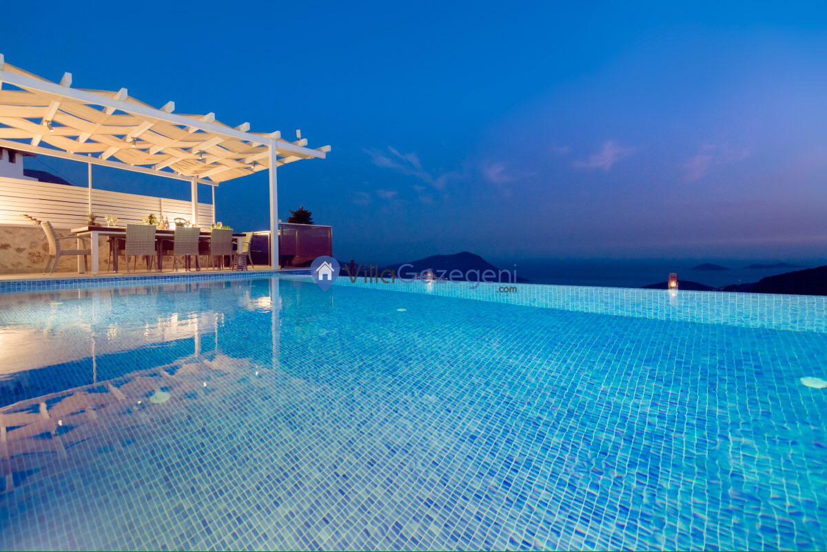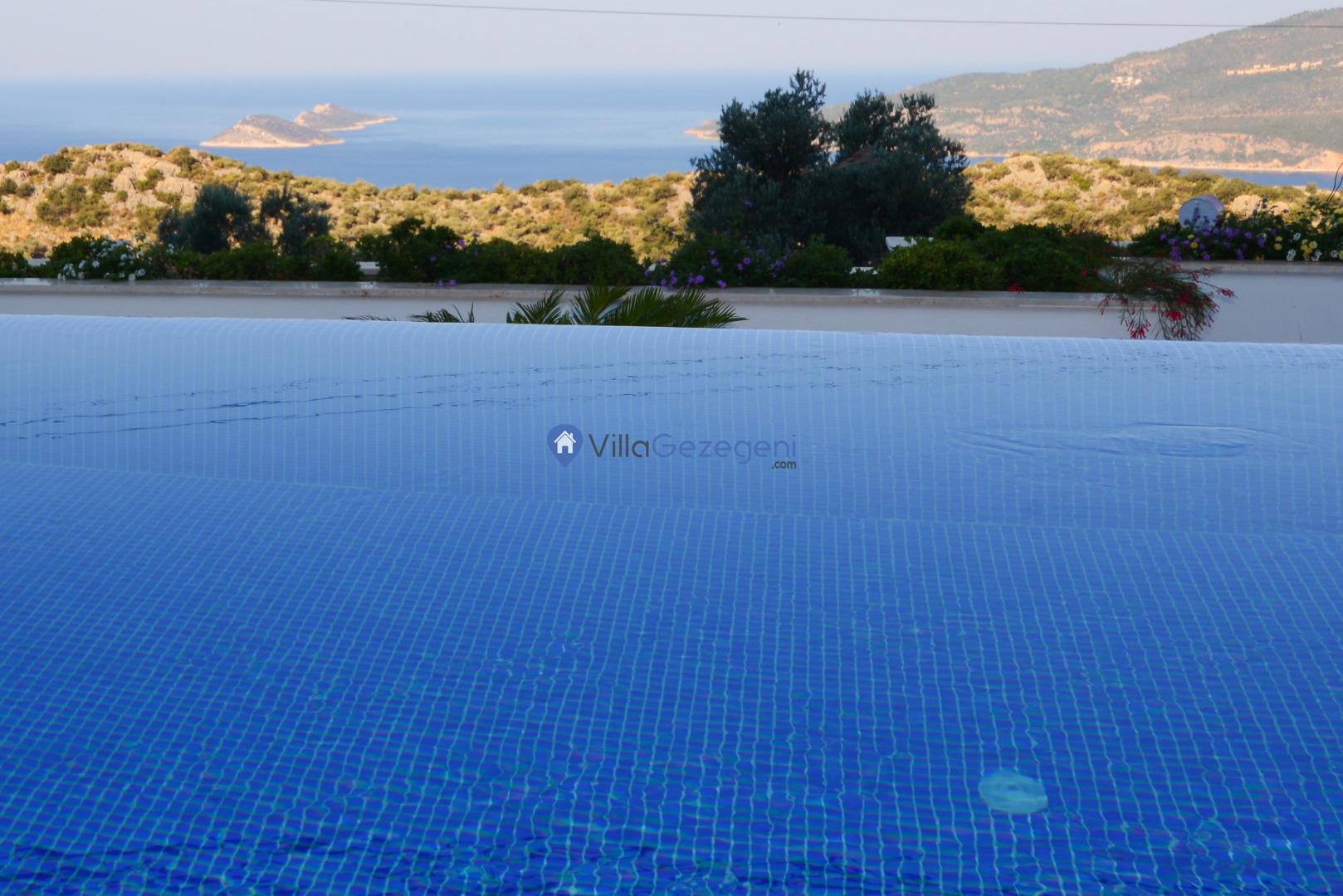 Villa Ela, Kalkan Akbel'de 12 kişilik, lüks, deniz manzaralı, jakuzili, ısıtmalı havuzlu, markete yakın, kiralık geniş aile ve arkadaş grubu villası.