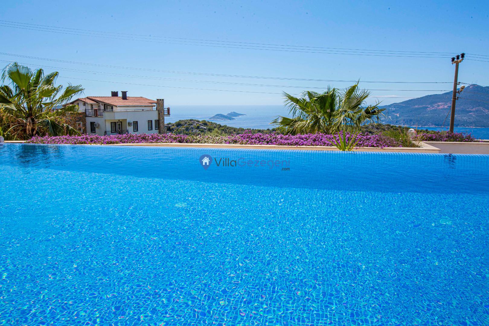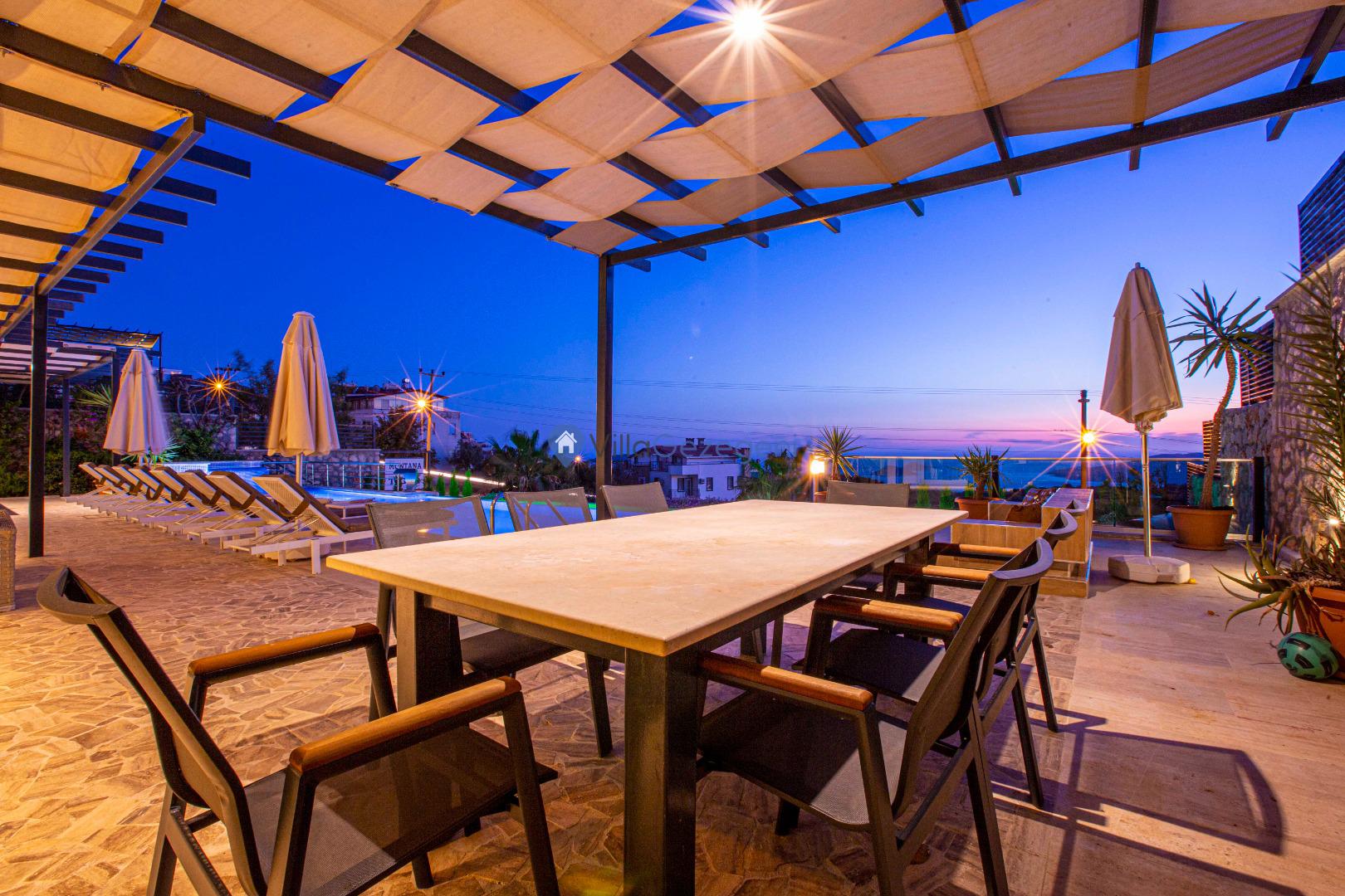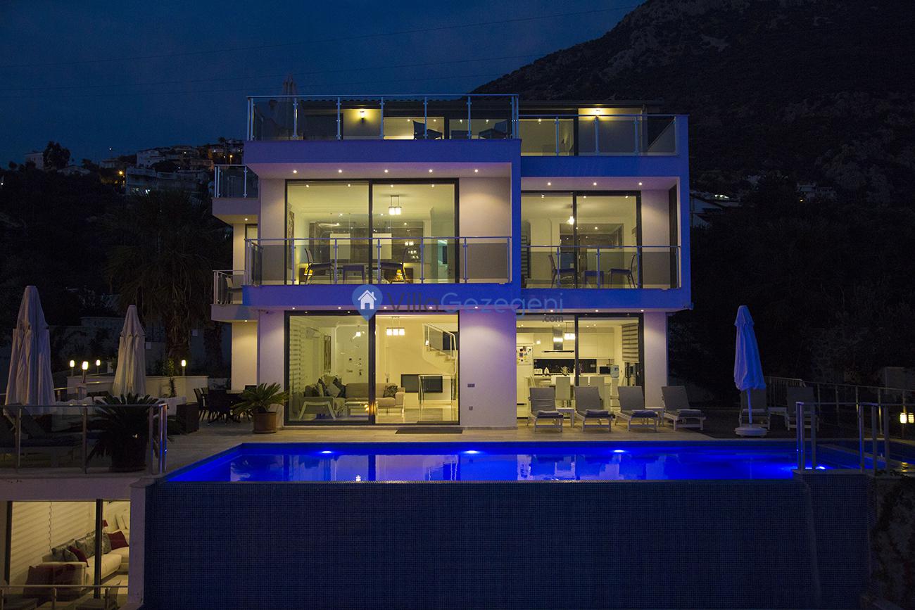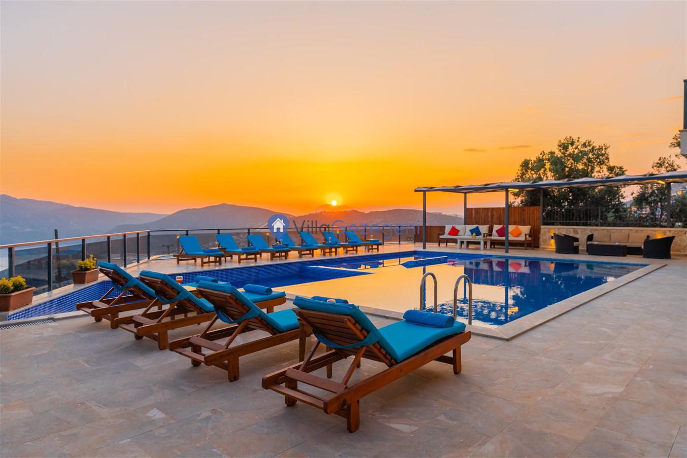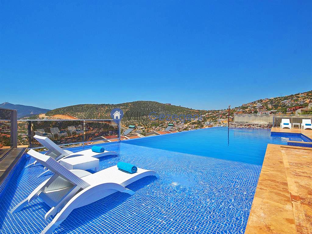 Villa Ela, Kalkan Akbel'de 12 kişilik, lüks, deniz manzaralı, jakuzili, ısıtmalı havuzlu, markete yakın, kiralık geniş aile ve arkadaş grubu villası.
