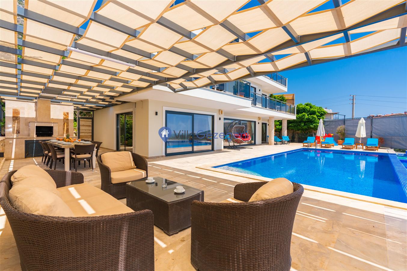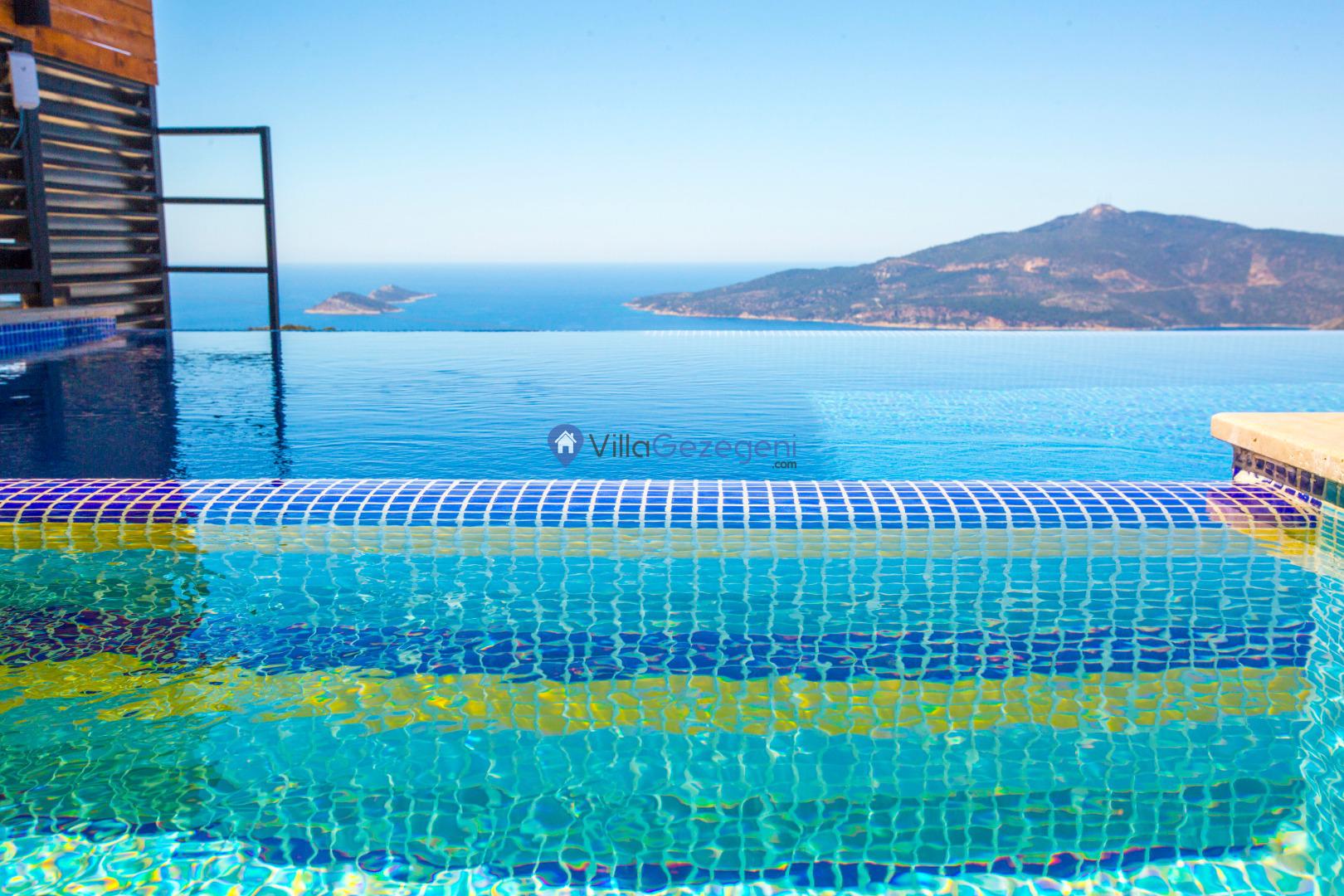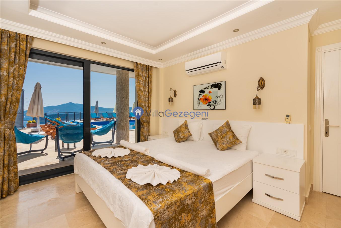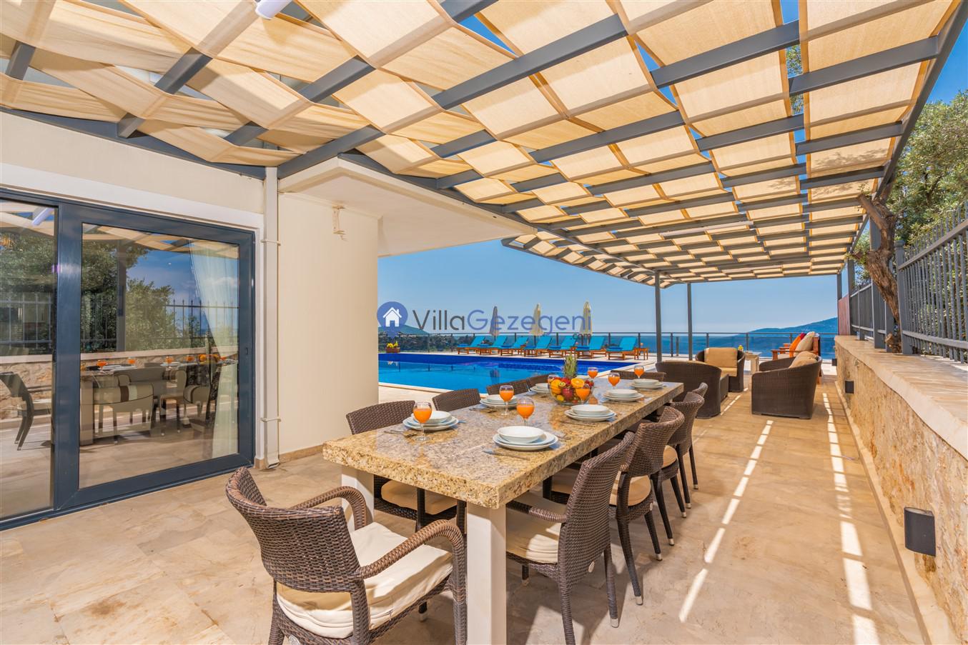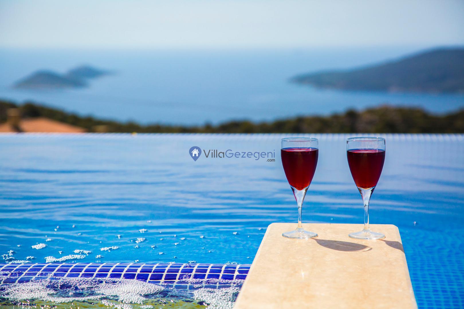 Villa Ela, Kalkan Akbel'de 12 kişilik, lüks, deniz manzaralı, jakuzili, ısıtmalı havuzlu, markete yakın, kiralık geniş aile ve arkadaş grubu villası.