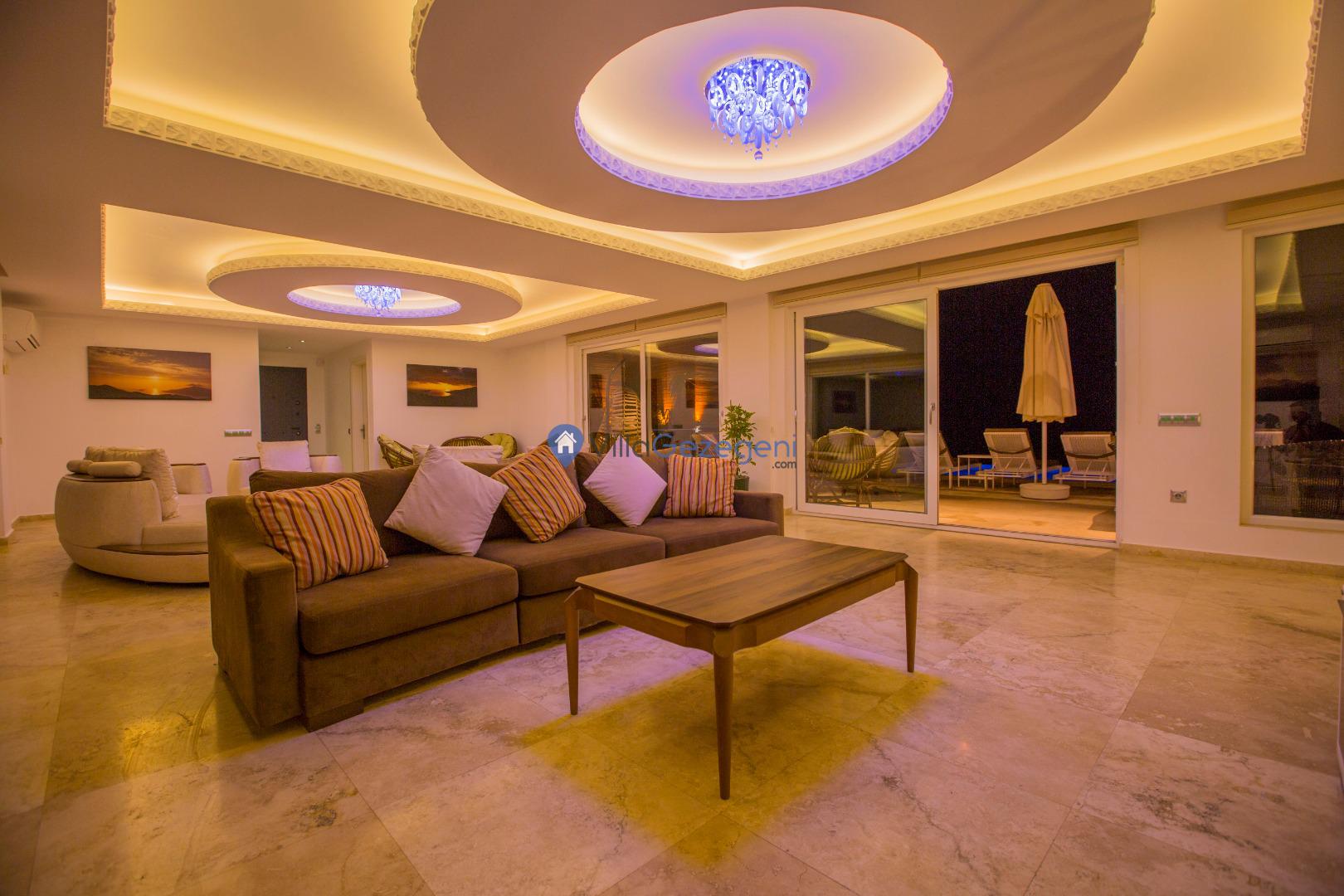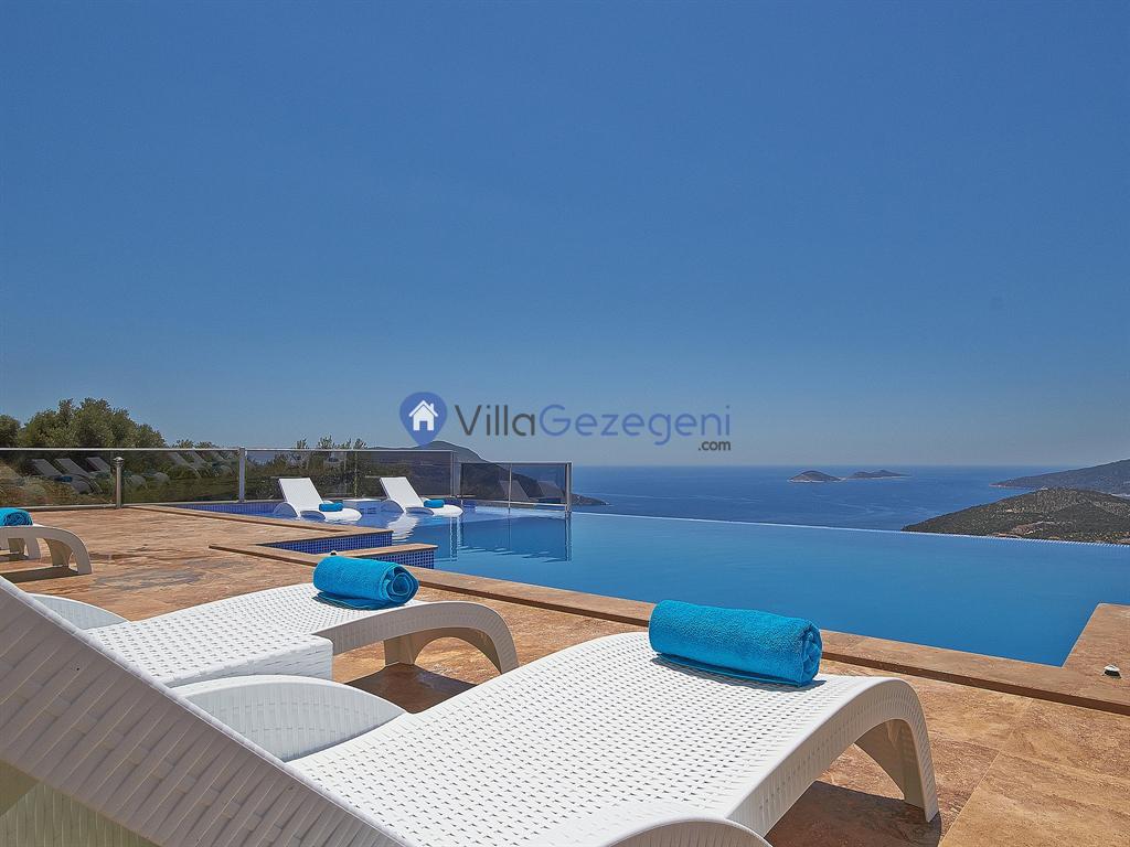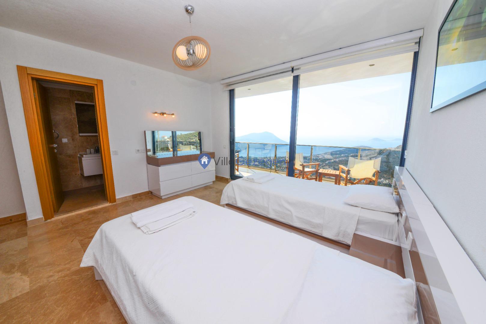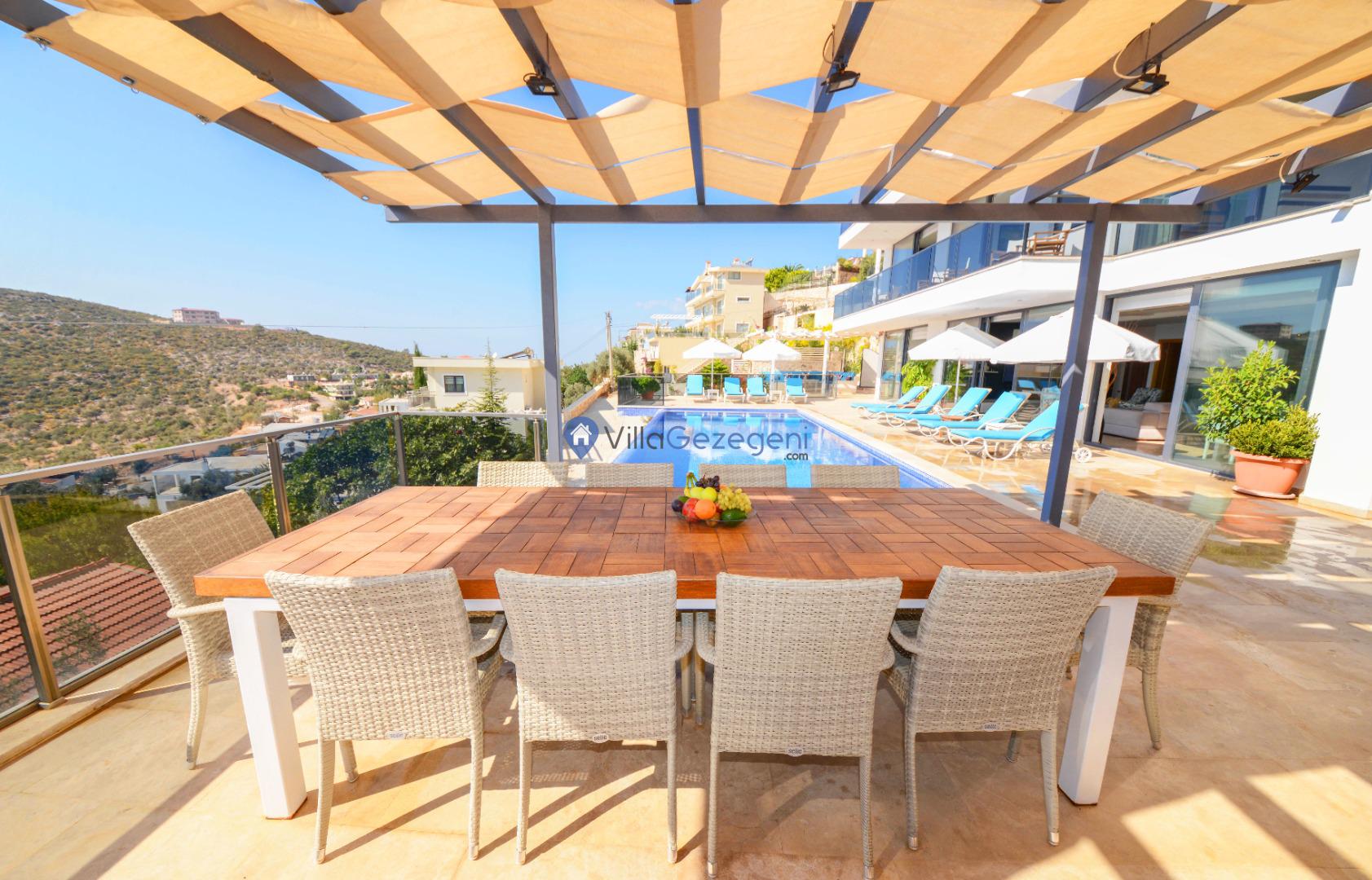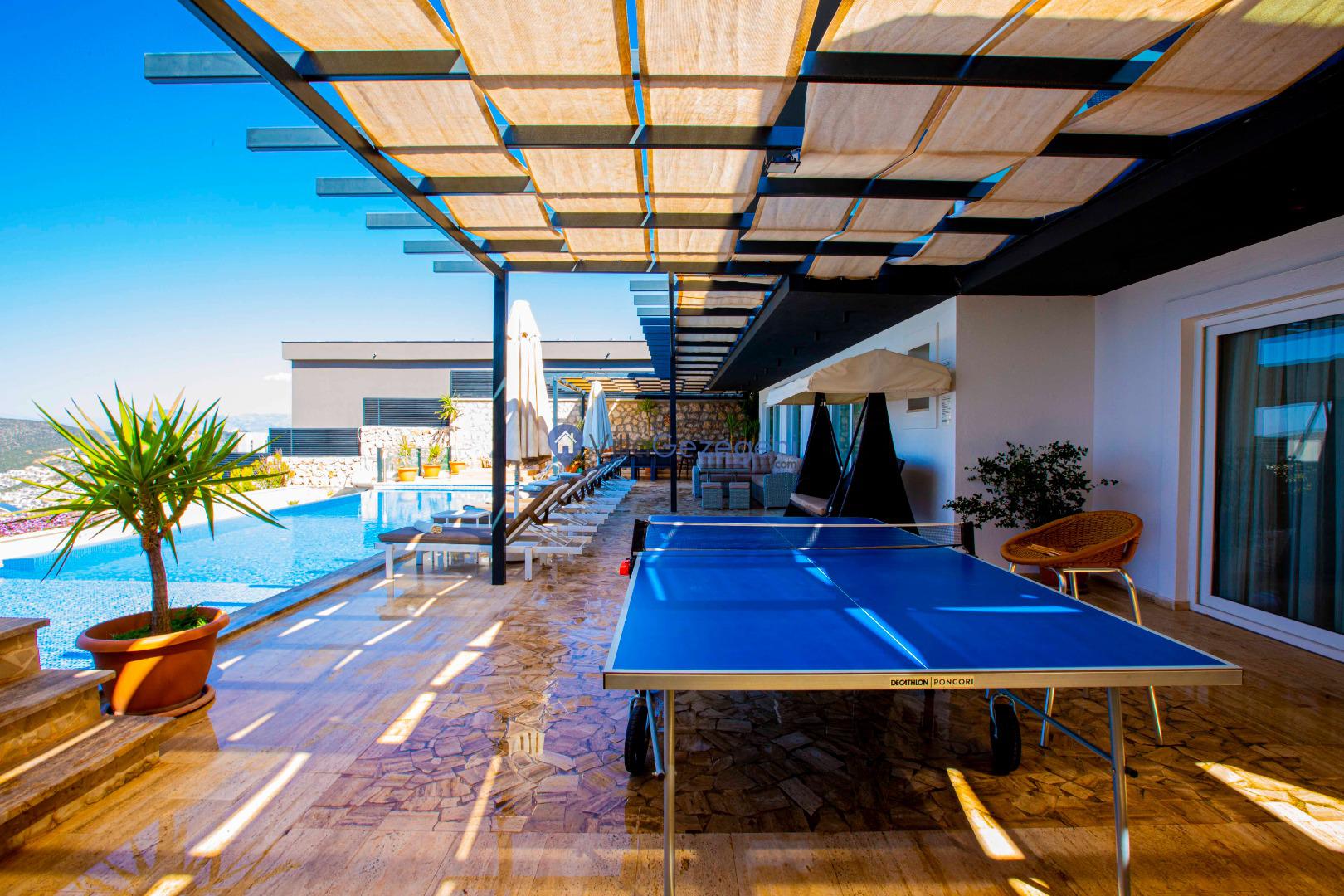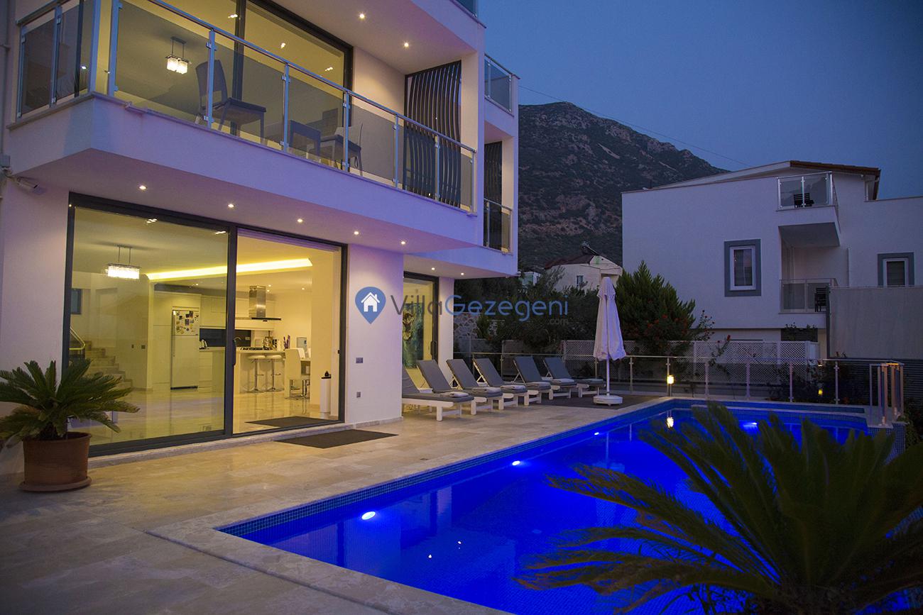 Villa Ela, Kalkan Akbel'de 12 kişilik, lüks, deniz manzaralı, jakuzili, ısıtmalı havuzlu, markete yakın, kiralık geniş aile ve arkadaş grubu villası.