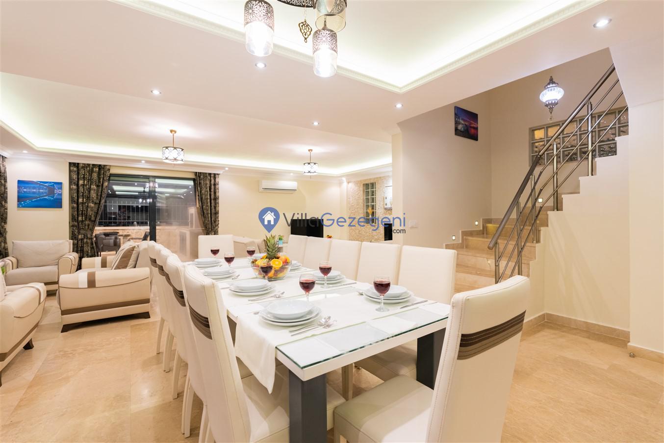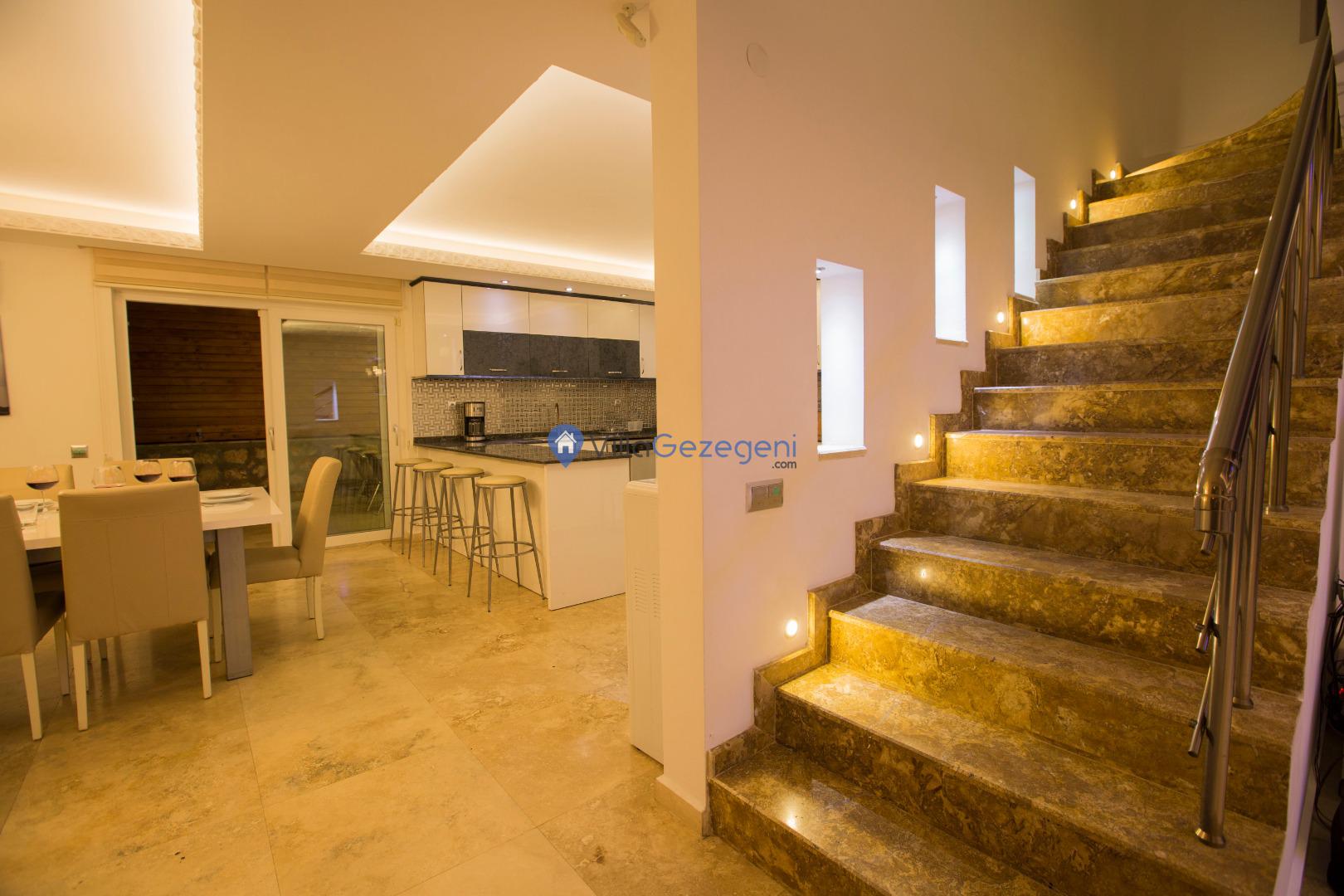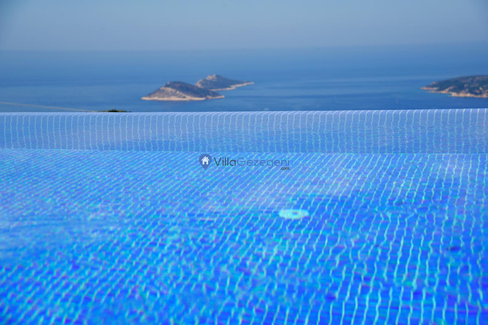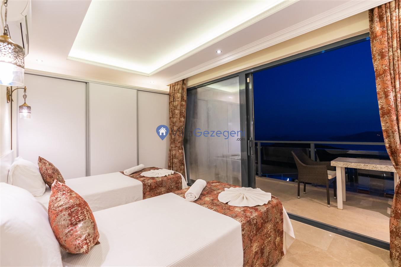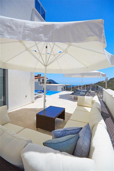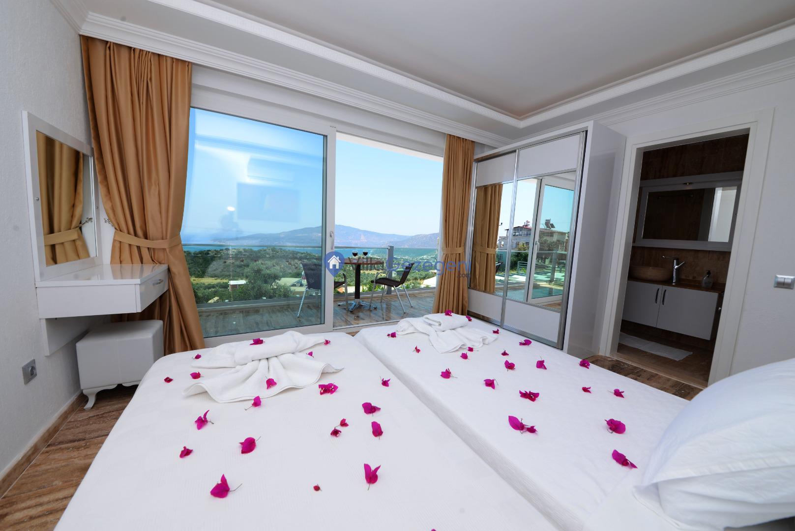 Villa Ela, Kalkan Akbel'de 12 kişilik, lüks, deniz manzaralı, jakuzili, ısıtmalı havuzlu, markete yakın, kiralık geniş aile ve arkadaş grubu villası.