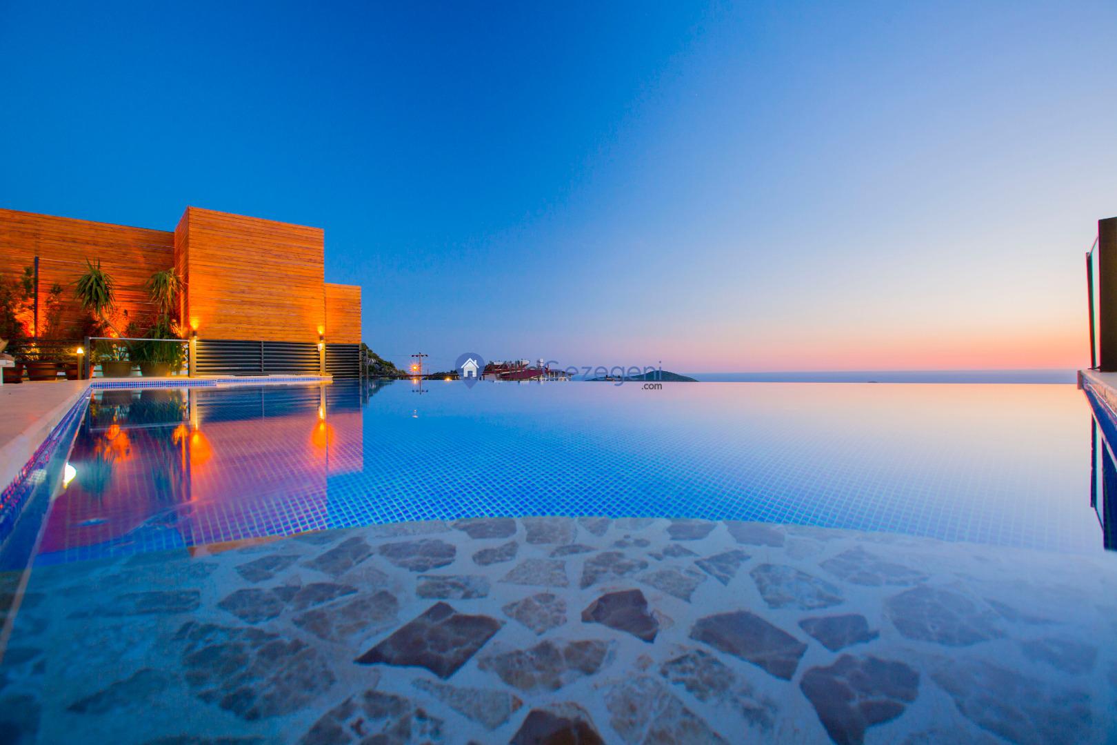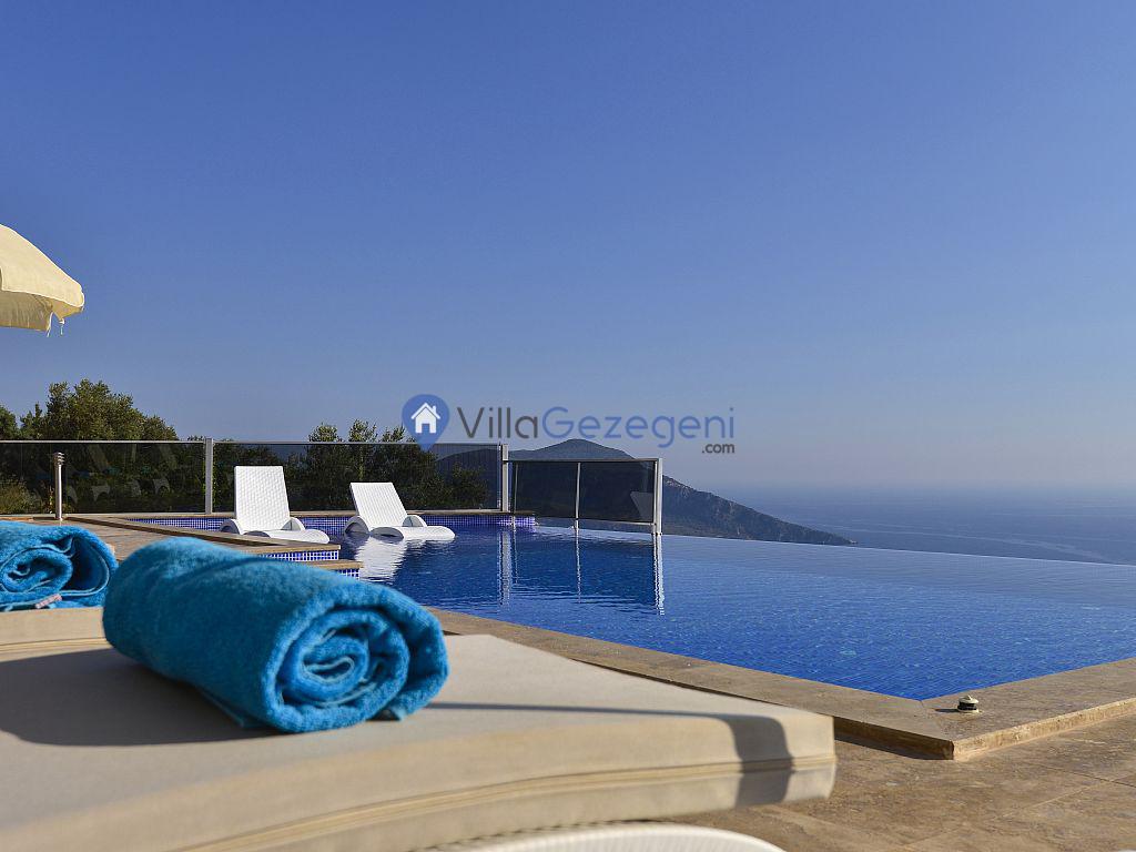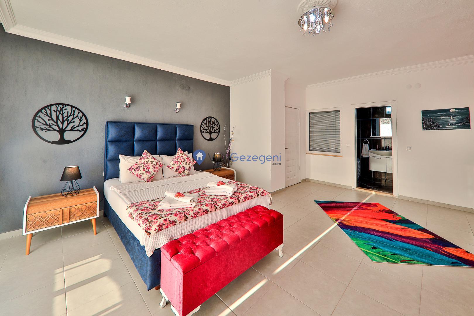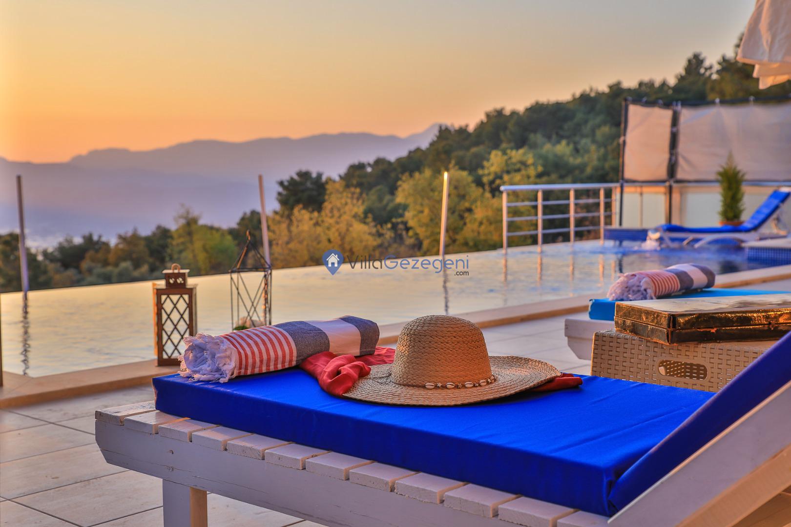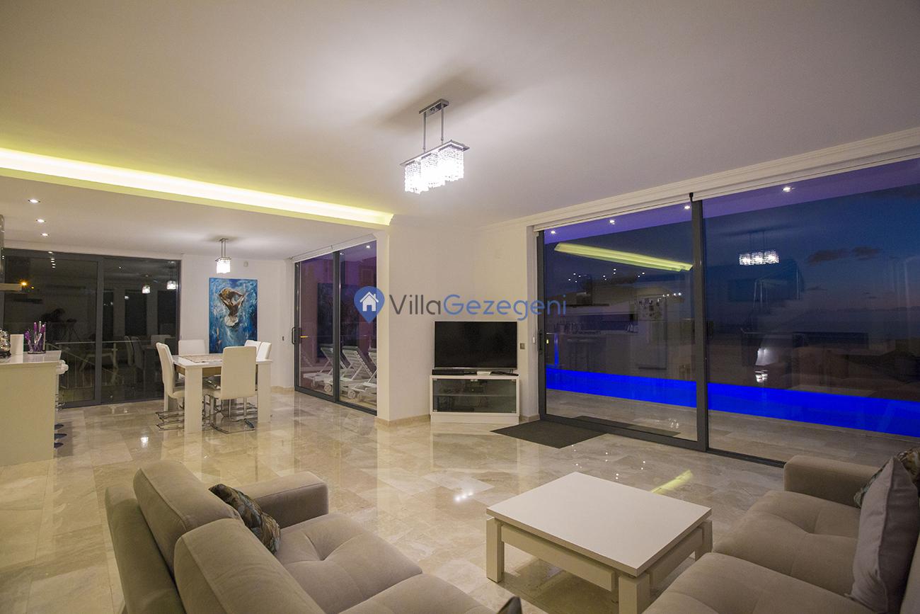 Villa Ela, Kalkan Akbel'de 12 kişilik, lüks, deniz manzaralı, jakuzili, ısıtmalı havuzlu, markete yakın, kiralık geniş aile ve arkadaş grubu villası.