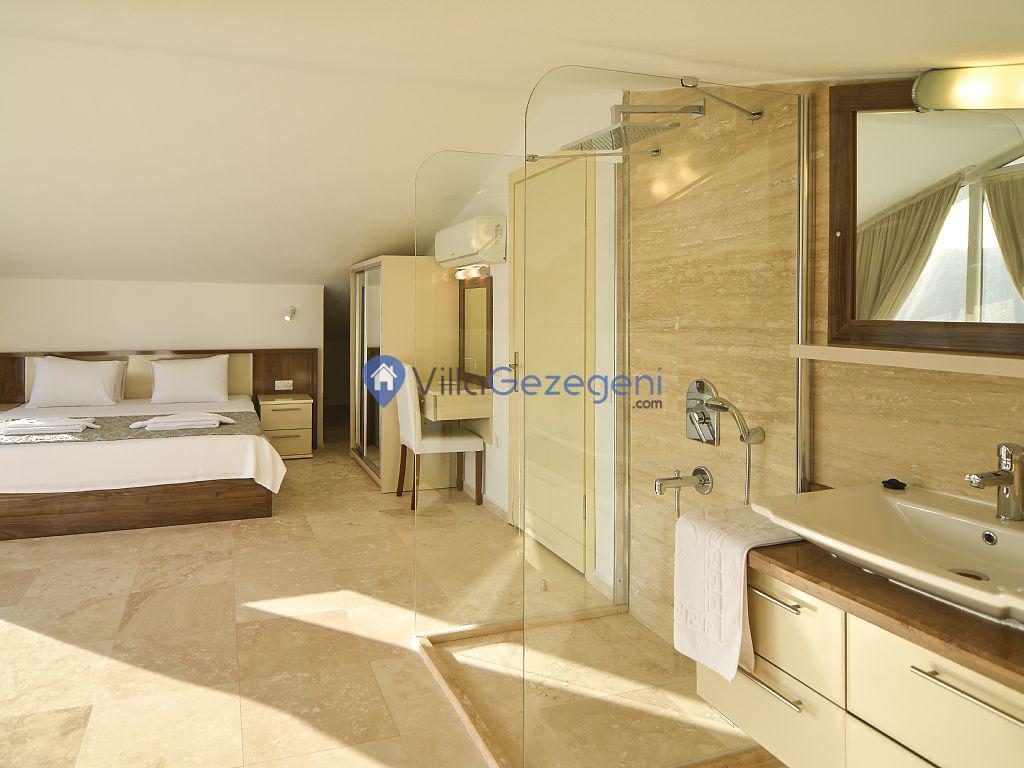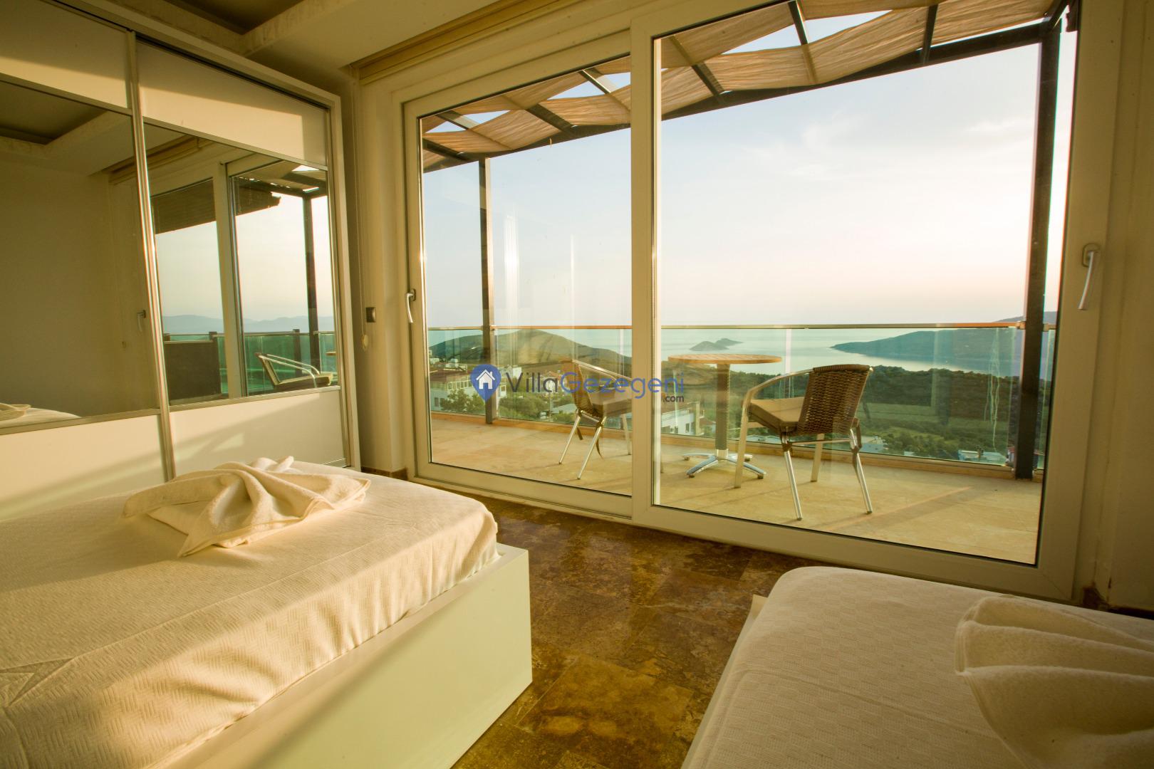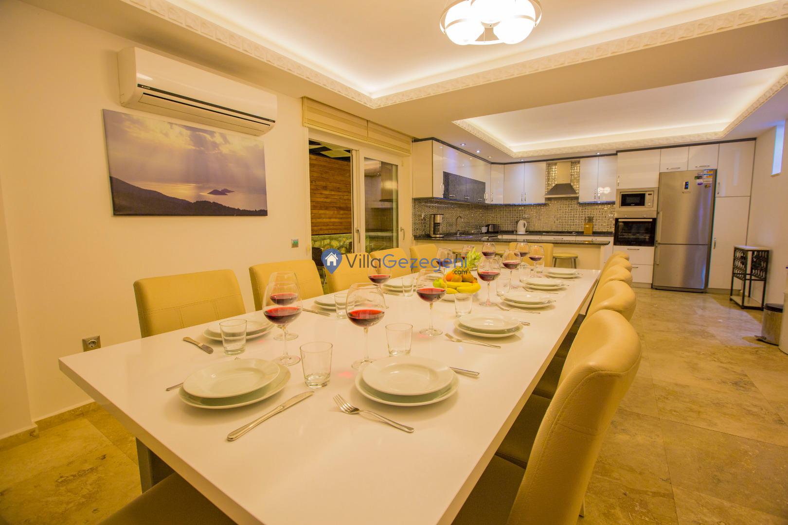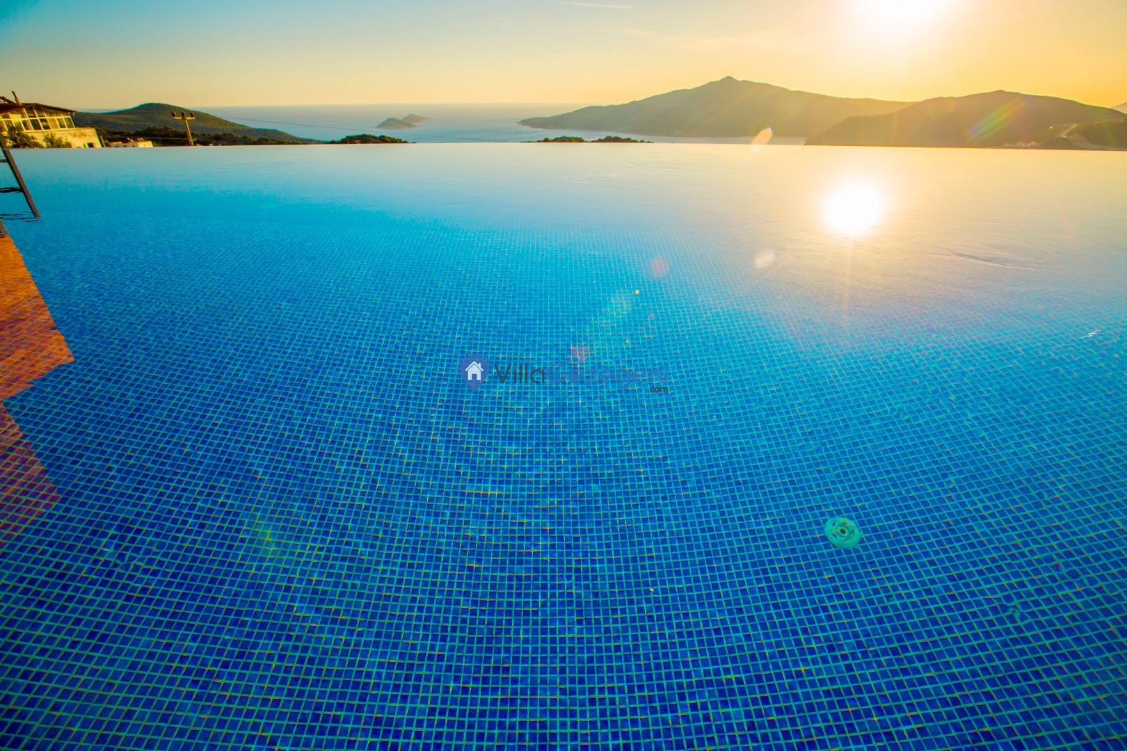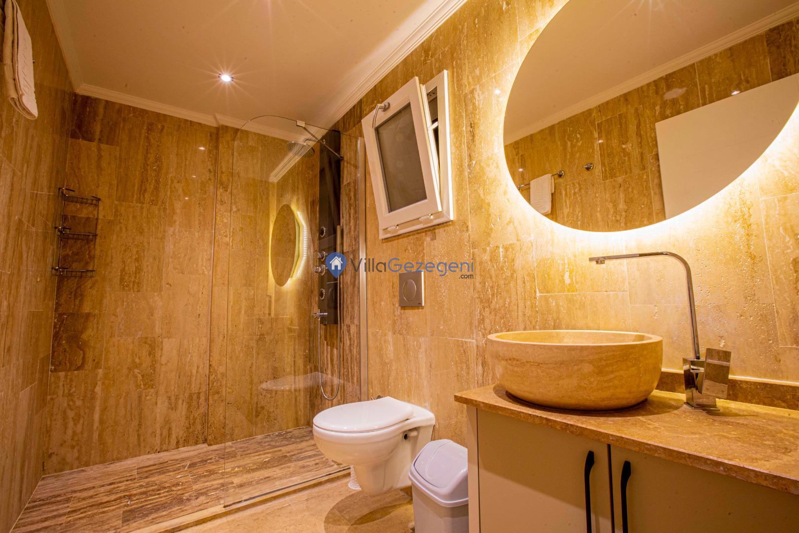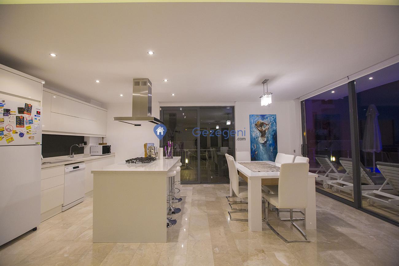 Villa Ela, Kalkan Akbel'de 12 kişilik, lüks, deniz manzaralı, jakuzili, ısıtmalı havuzlu, markete yakın, kiralık geniş aile ve arkadaş grubu villası.