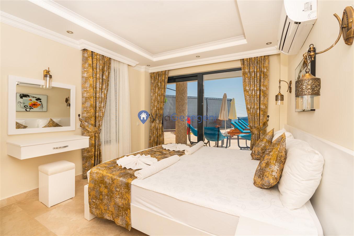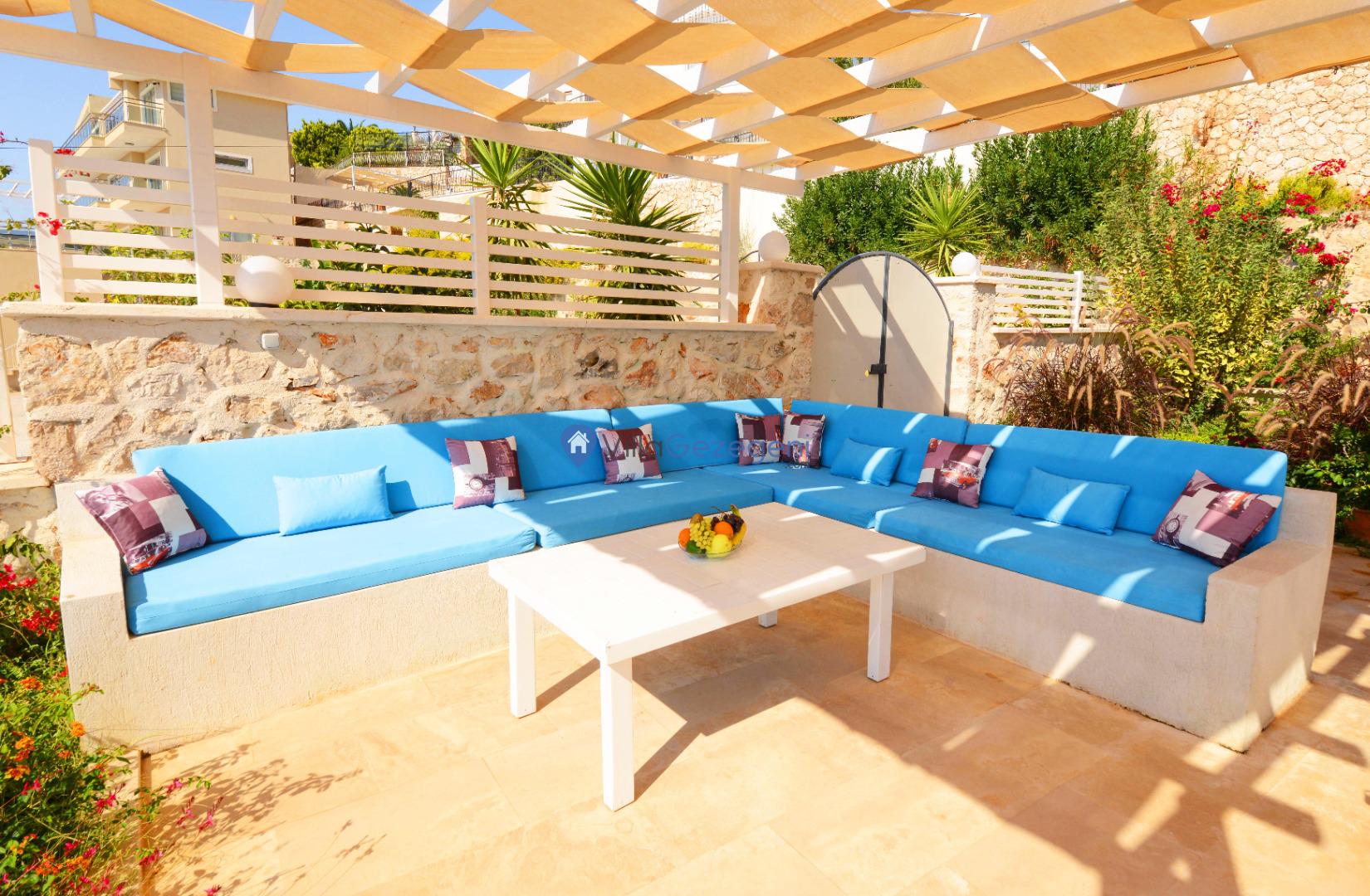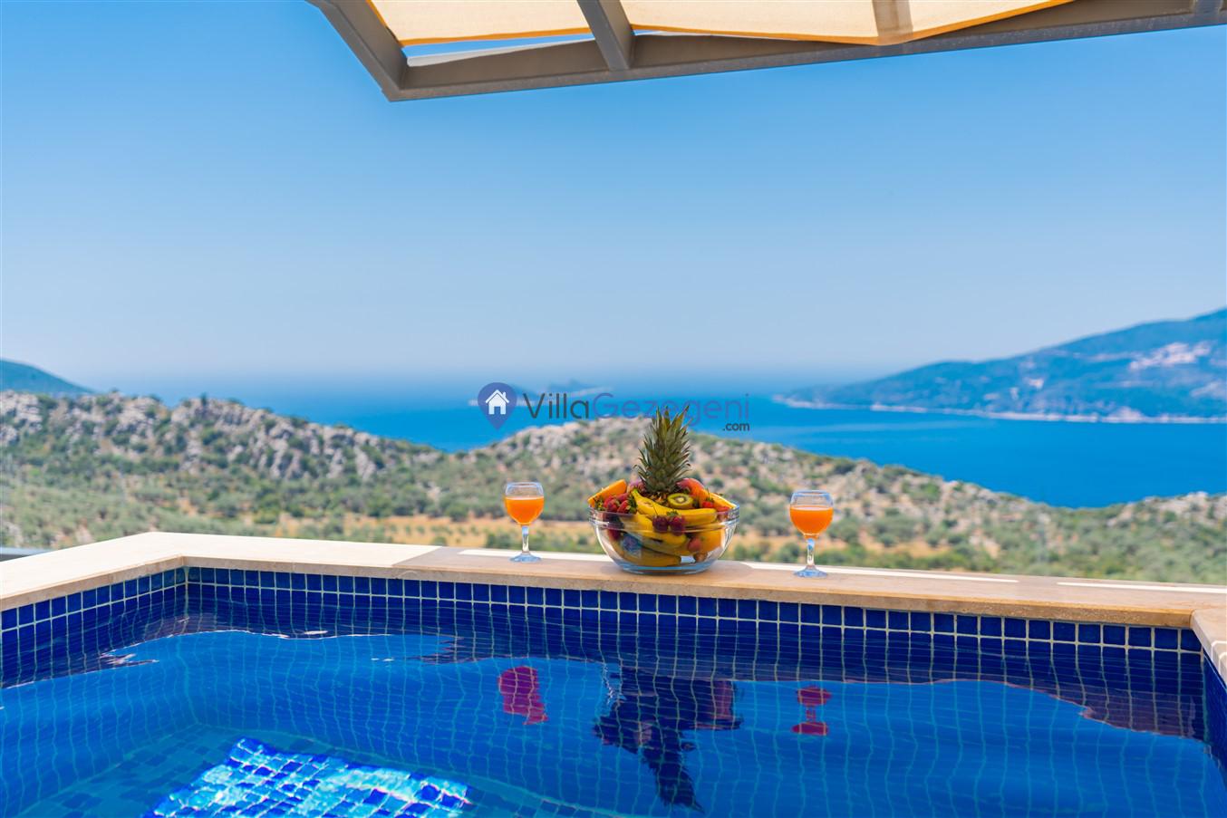 Villa Melisa, Kalkan İslamlar'da 6 kişilik, muhafazakar, doğa içerisinde, deniz manzaralı, jakuzili kiralık geniş aile ve arkadaş grubu villası.