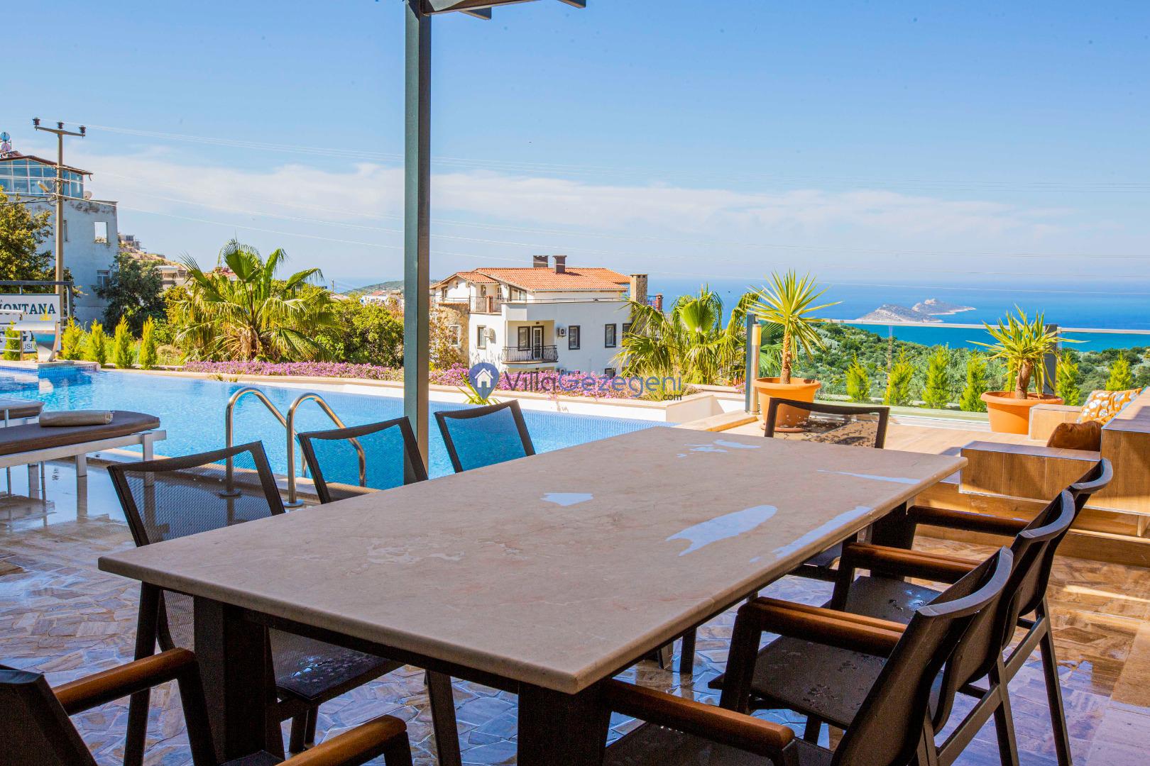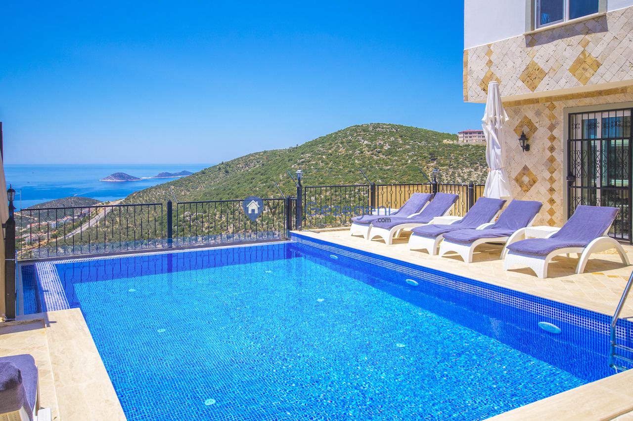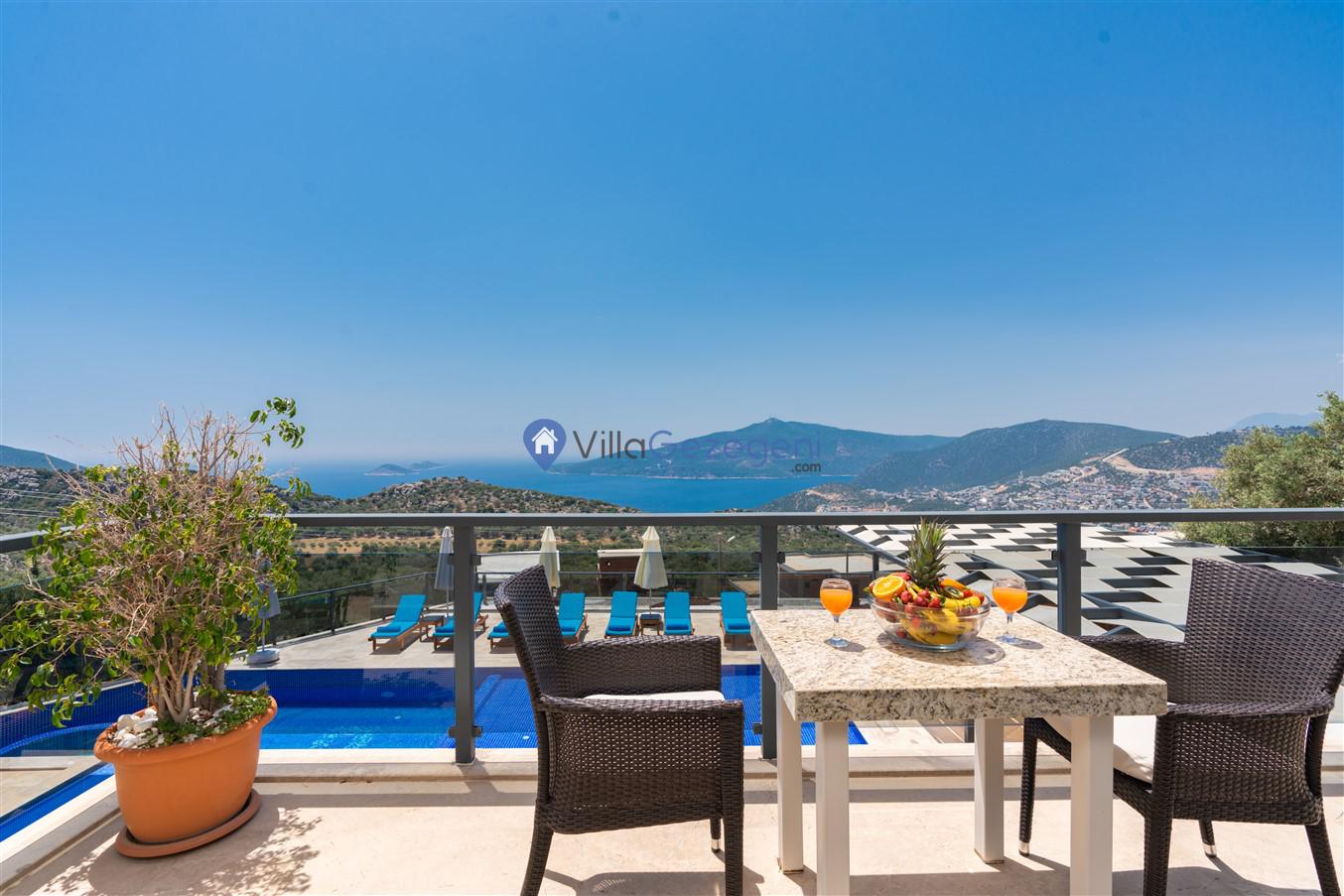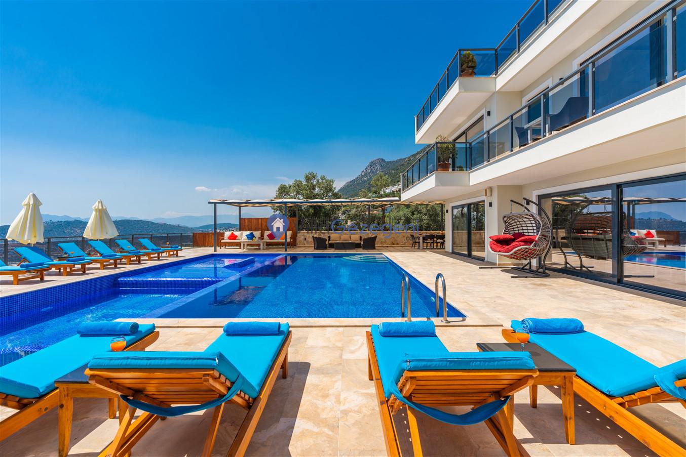 Kalkan'da Deniz Manzaralı, Jakuzili, Geniş Aile ve Arkadaş Gruplarına Uygun Kiralık Villa
