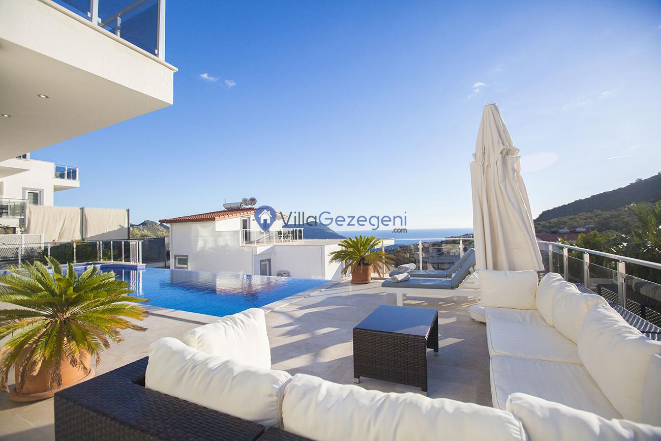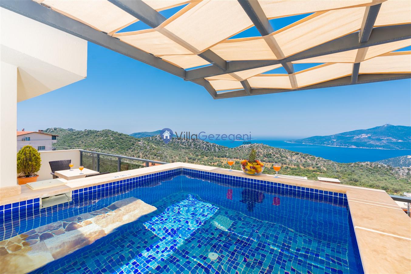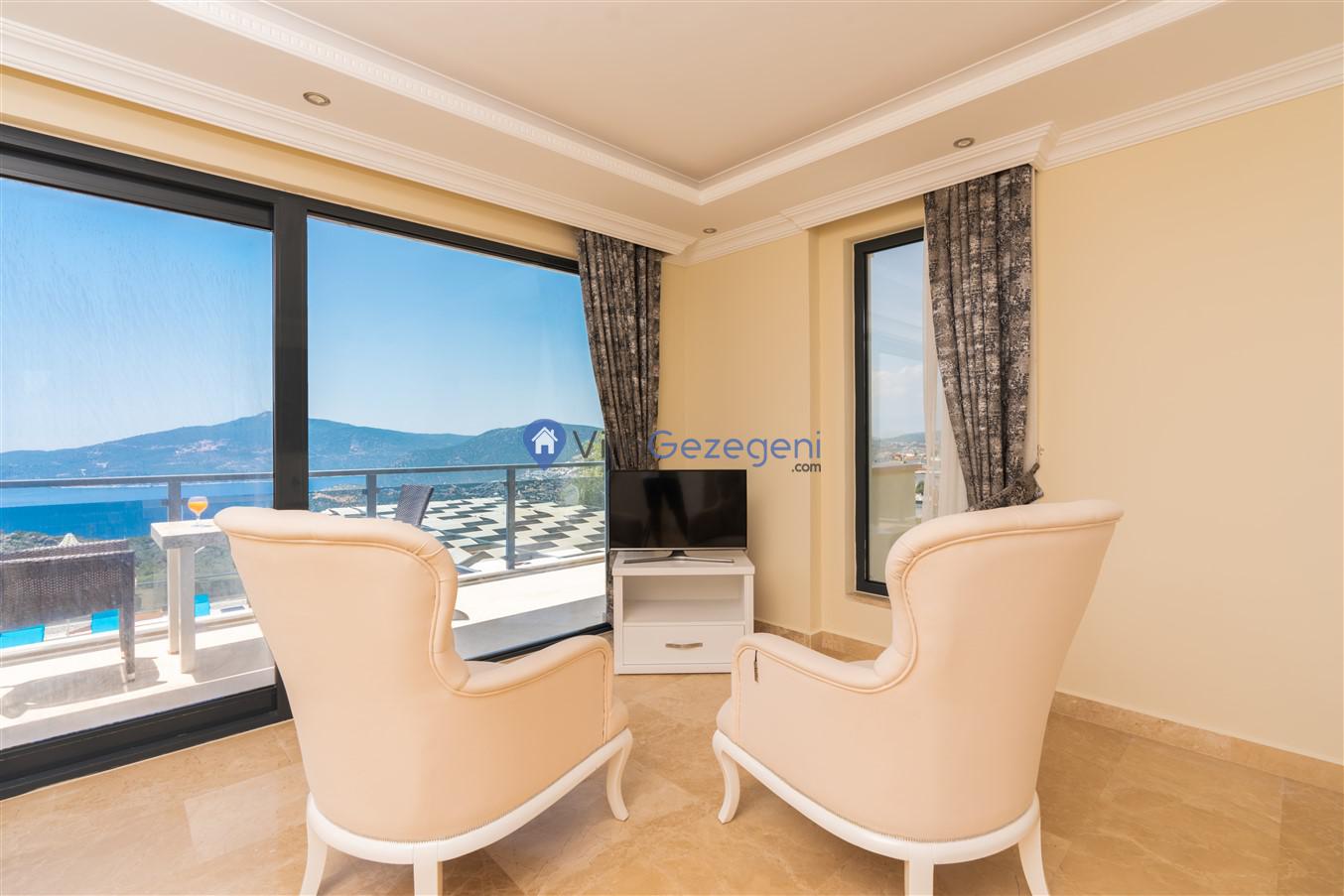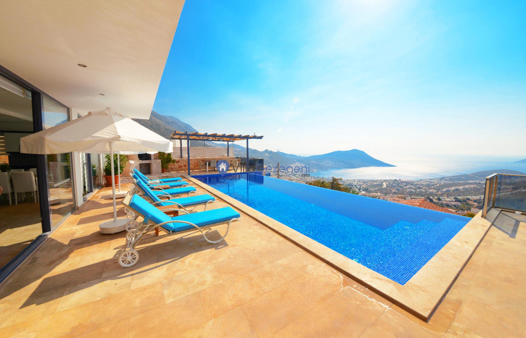 Kalkan'da Deniz Manzaralı, Jakuzili, Geniş Aile ve Arkadaş Gruplarına Uygun Kiralık Villa