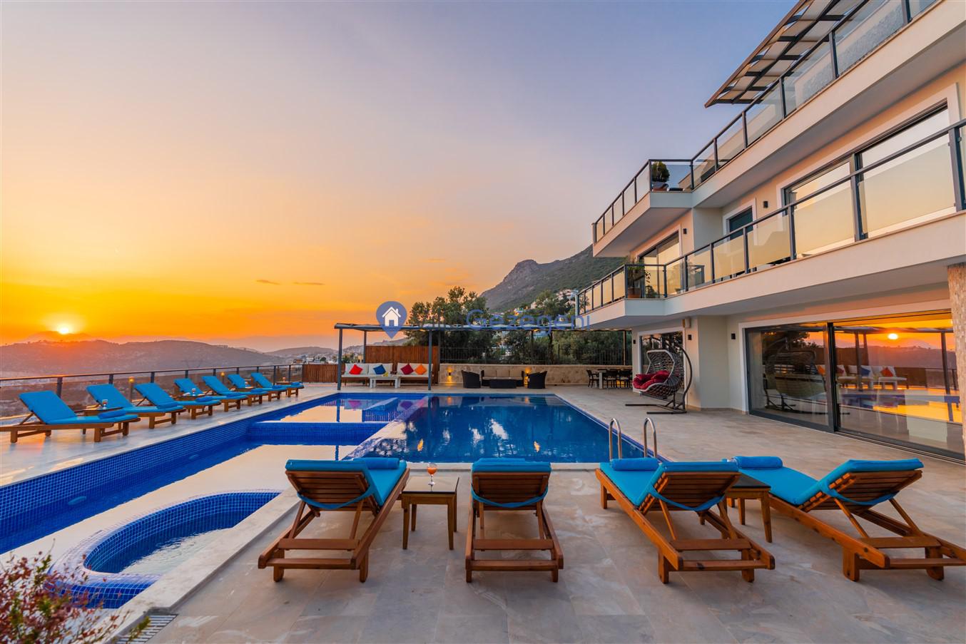 Kalkan'da Deniz Manzaralı, Jakuzili, Lüx, Geniş Aile ve Arkadaş Gruplarına Uygun Kiralık Villa