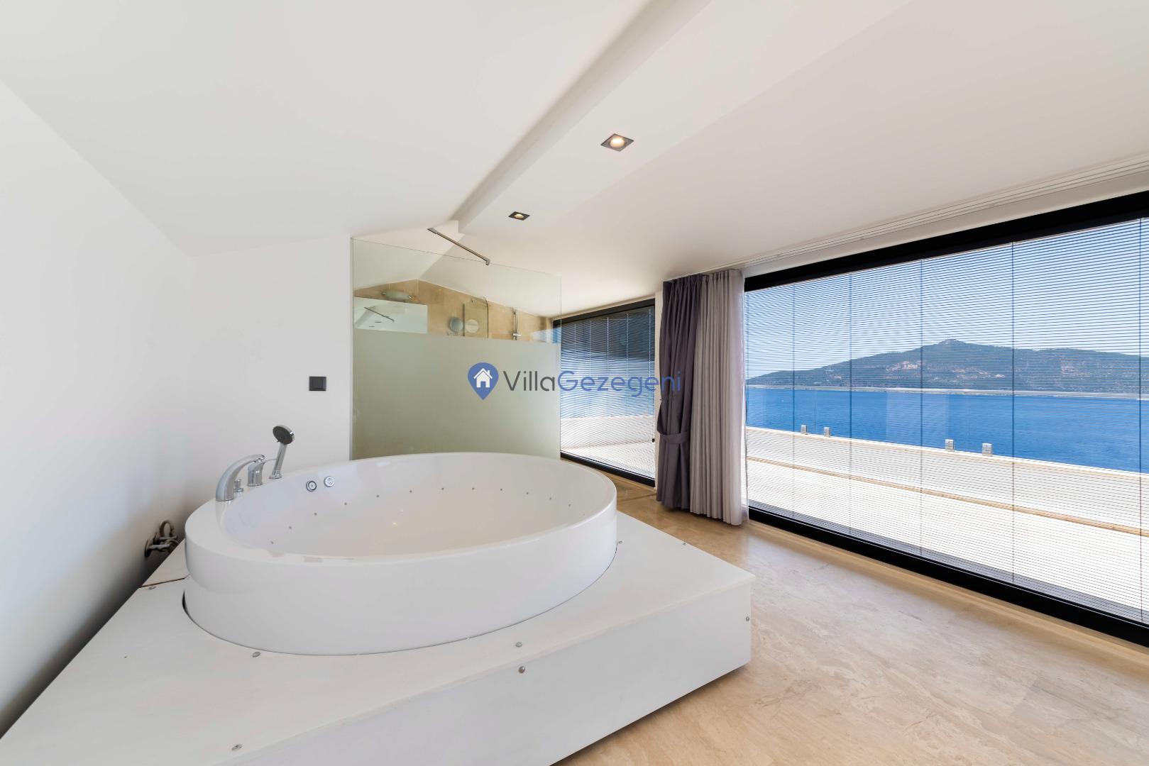 Villa Seascape, 4 yatak odalı lüks, deniz manzaralı, jakuzili, markete merkeze ve restaurantlara yakın, kiralık geniş aile villası.