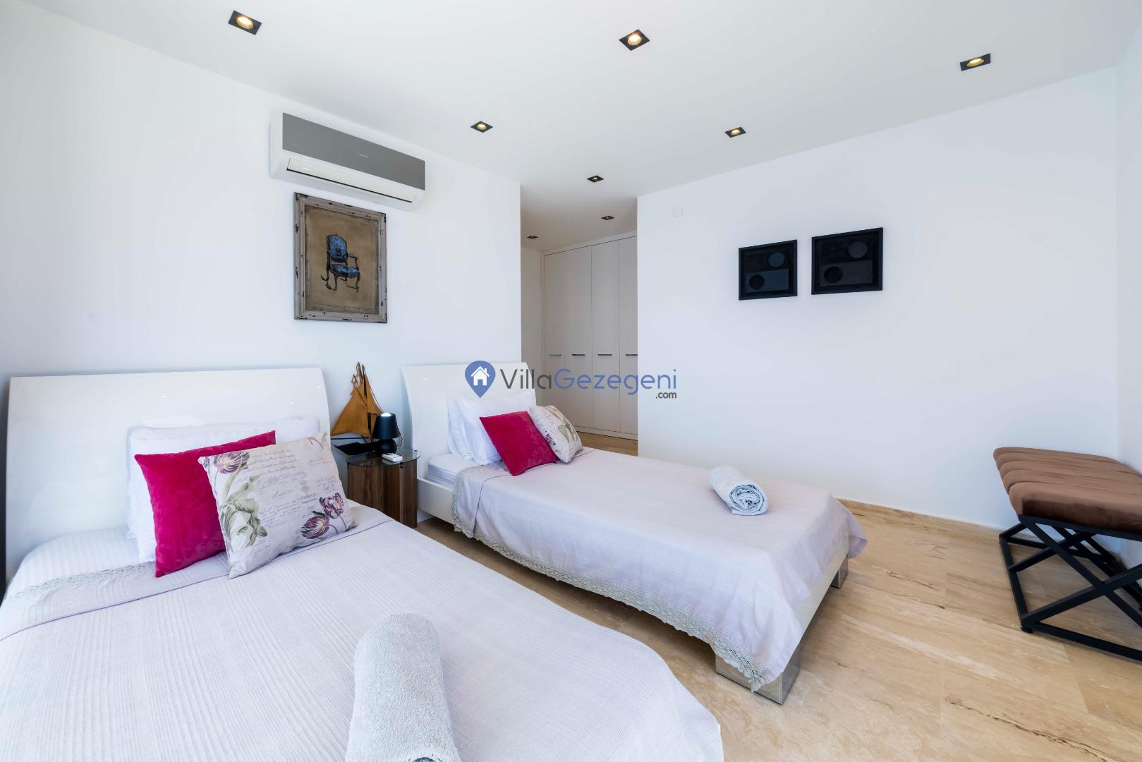Kaş/Kalkan/Kalamar Bölgesinde yer alan 3 yatak odalı 6 kişi kapasiteli; Şehir Merkezine Yakın, Deniz Manzaralı, Kiralık Geniş Aile Villası.