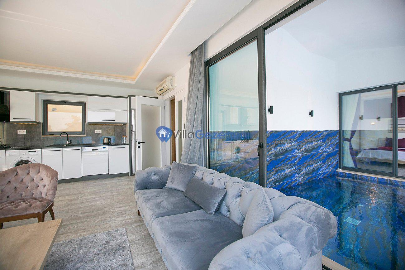 Villa Serenity, Kalkan İslamlar'da 16 kişilik, kalabalık gruplar için dizayn edilmiş, ısıtmalı, kapalı havuzlu kiralık muhafazakar özellikli villa.