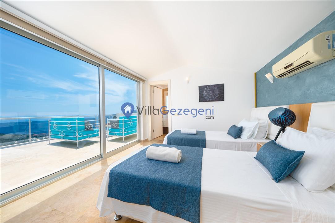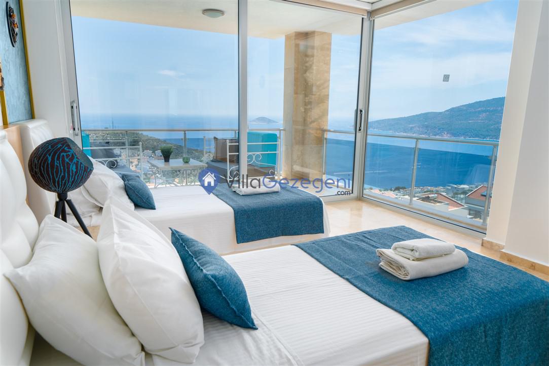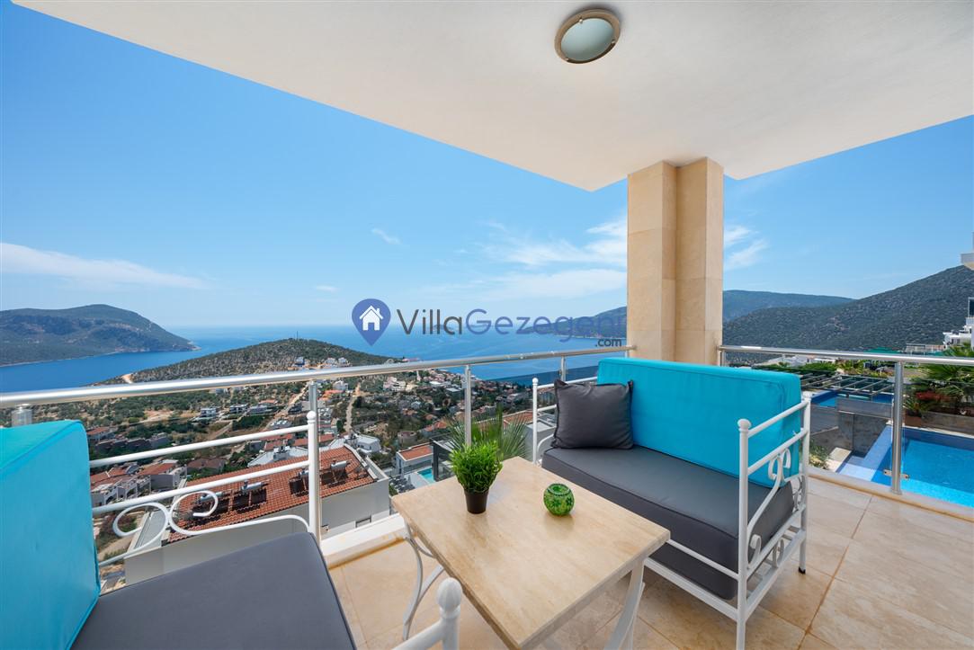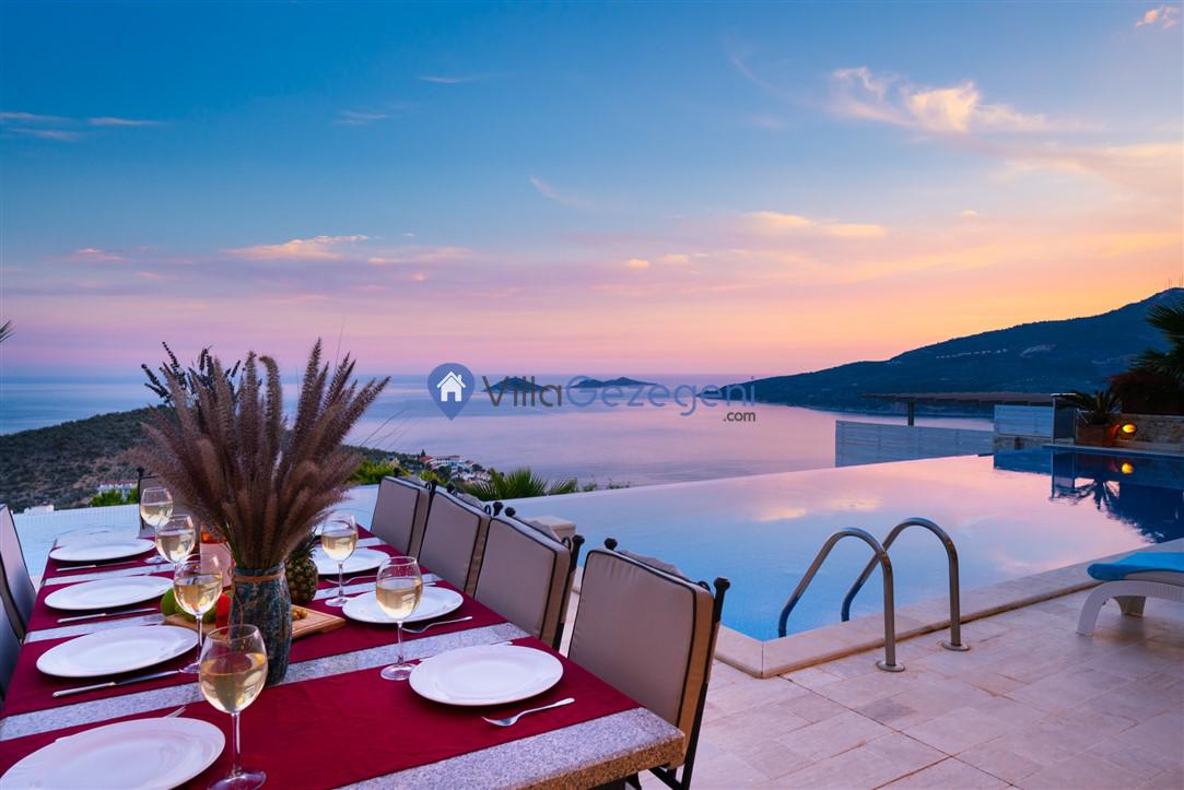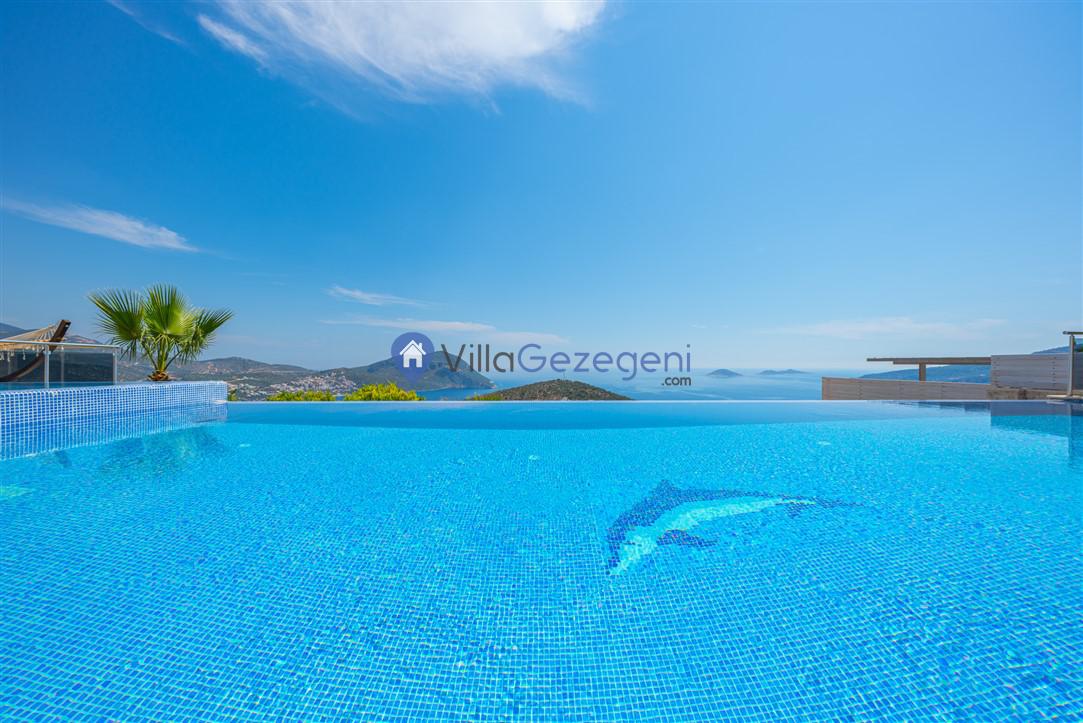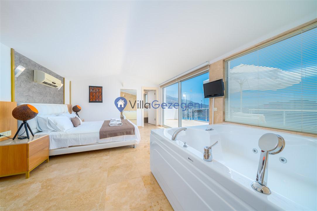 Villa Ela, Kalkan Akbel'de 12 kişilik, lüks, deniz manzaralı, jakuzili, ısıtmalı havuzlu, markete yakın, kiralık geniş aile ve arkadaş grubu villası.