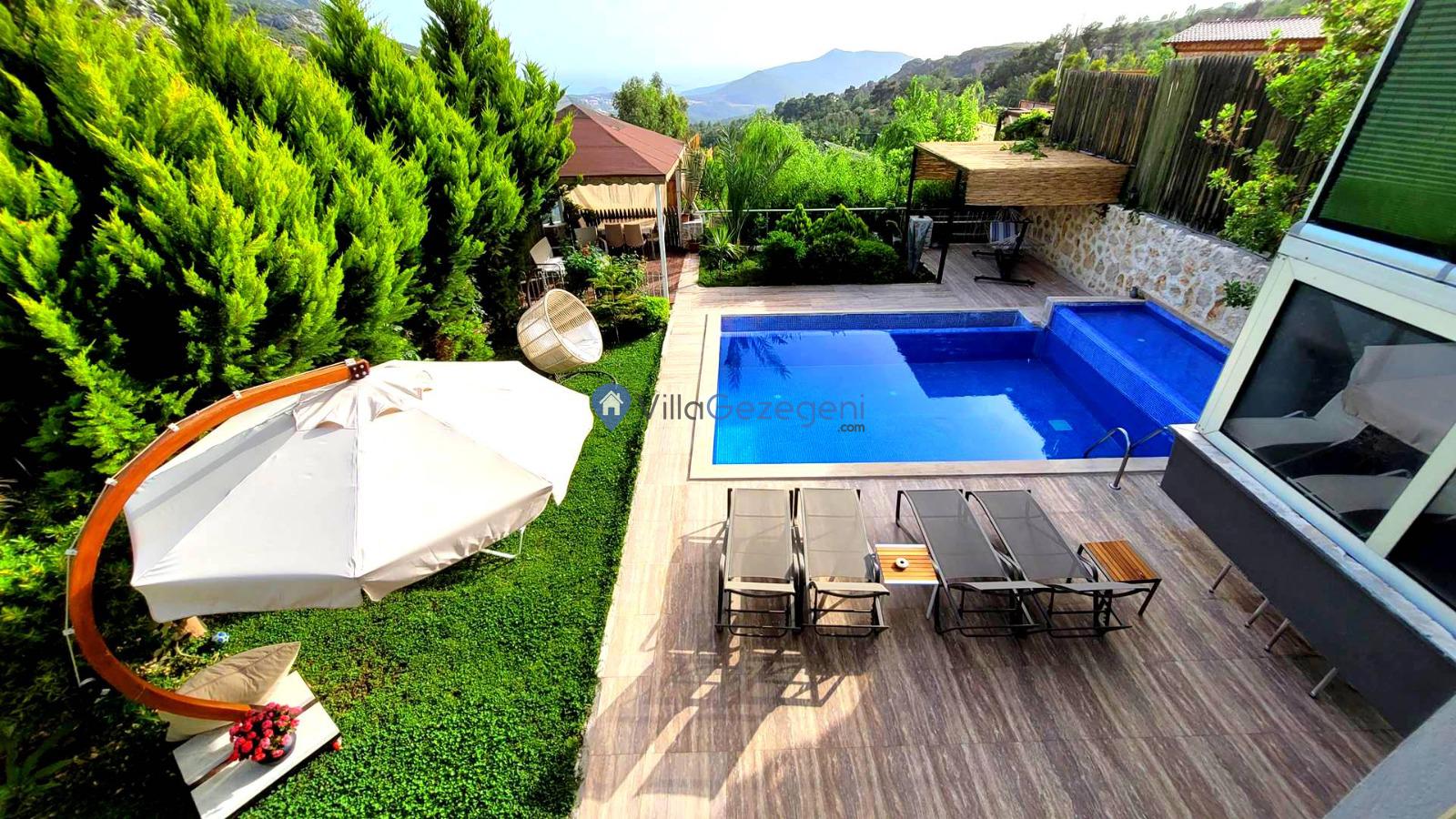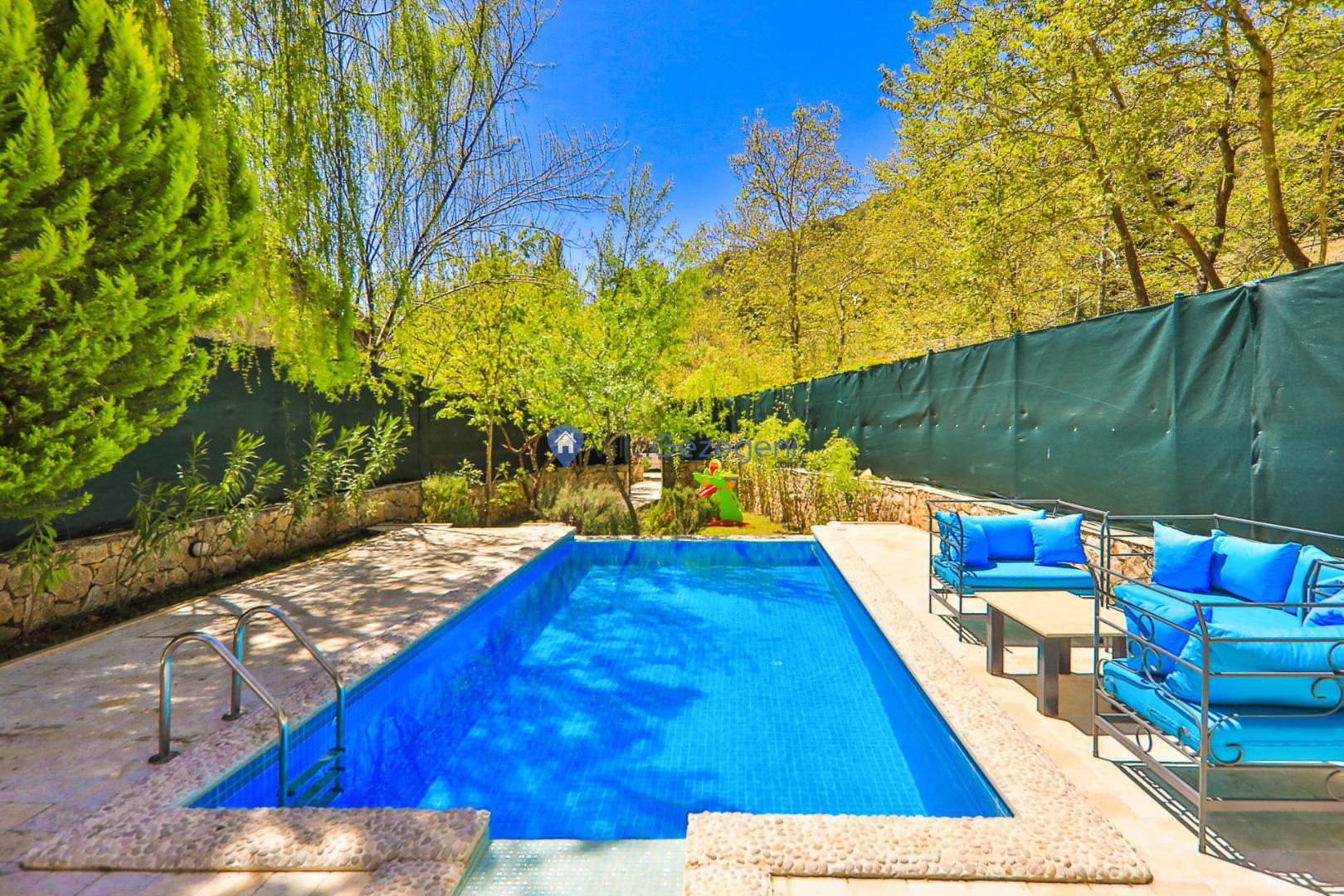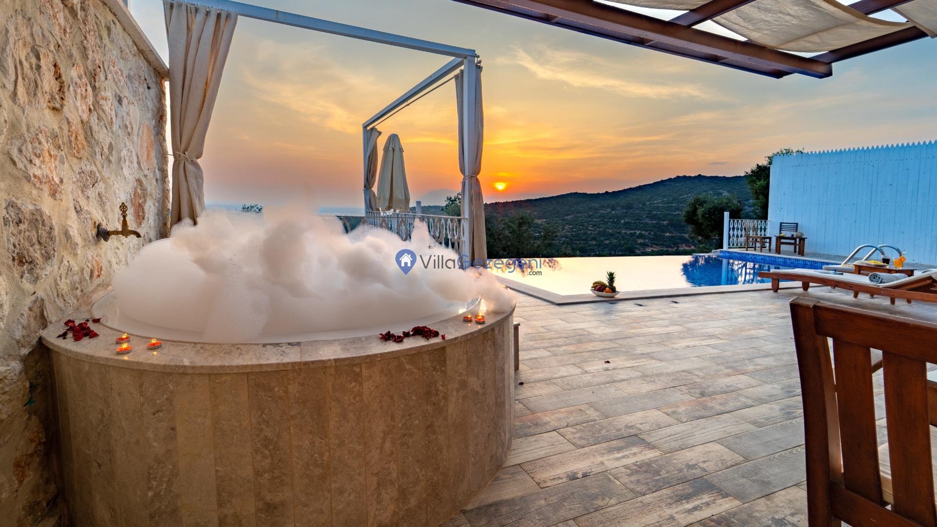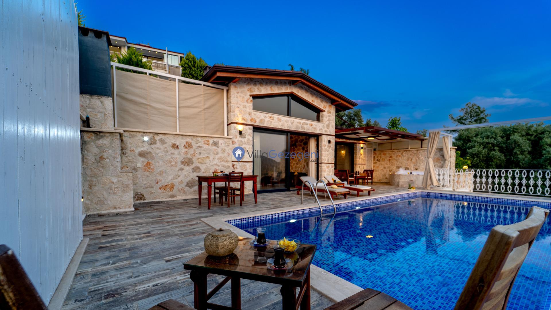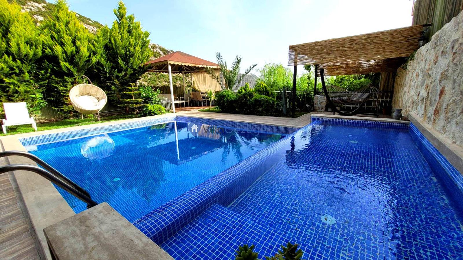Villa Asaf, Kalkan Üzümlü'de 4 kişilik, markete merkeze ve restaurantlara yakın, jakuzili, doğa içerisinde bulunan kiralık muhafazakar balayı villası.