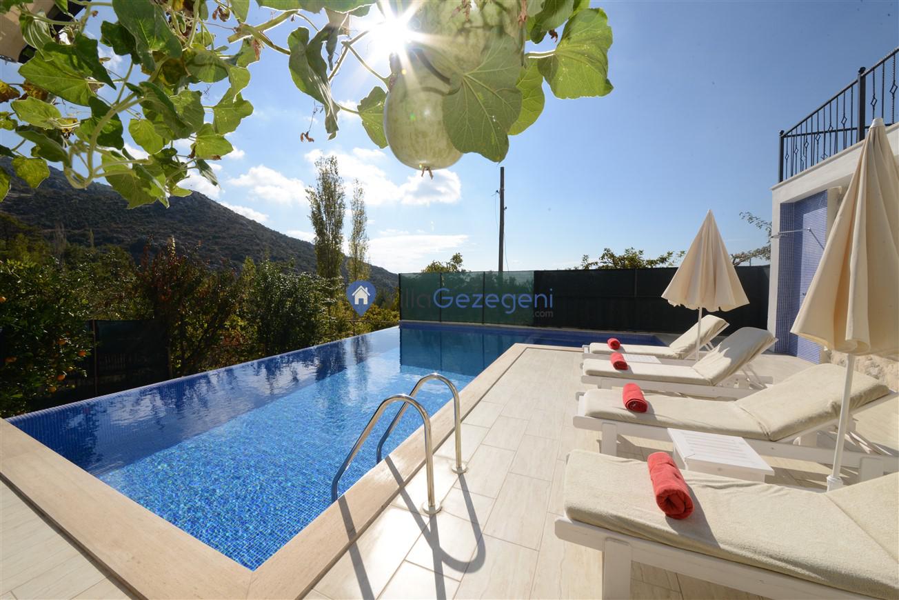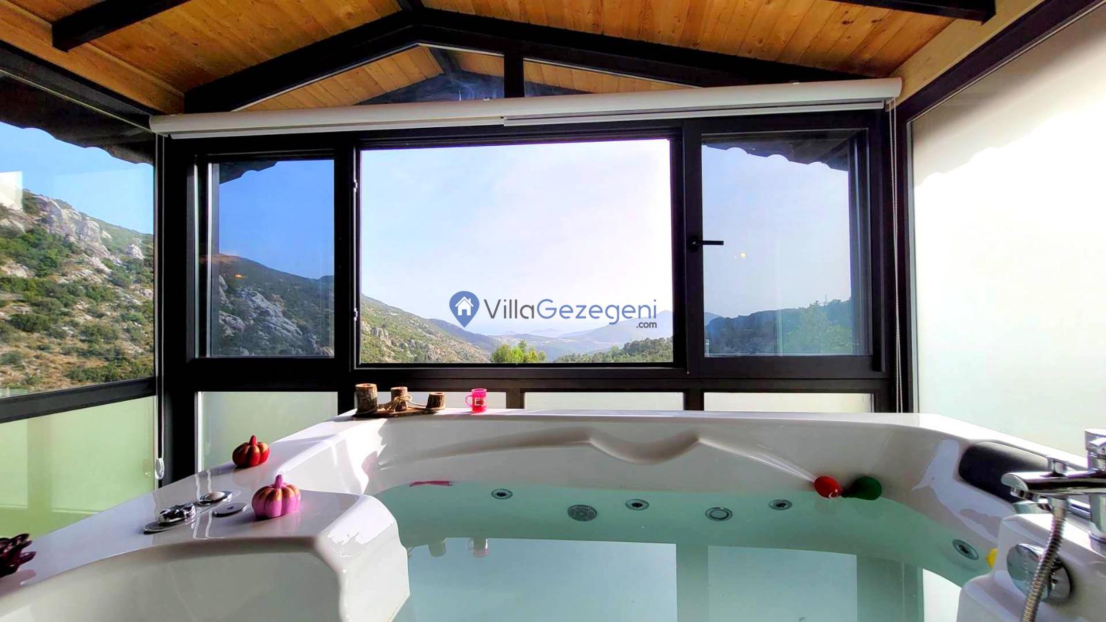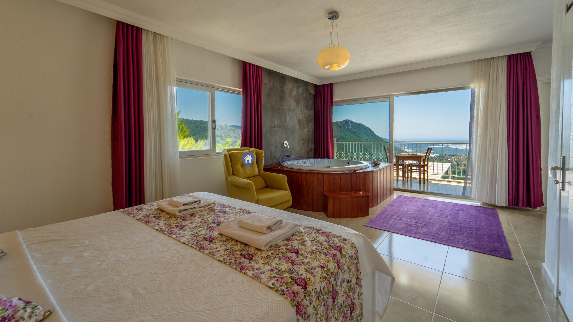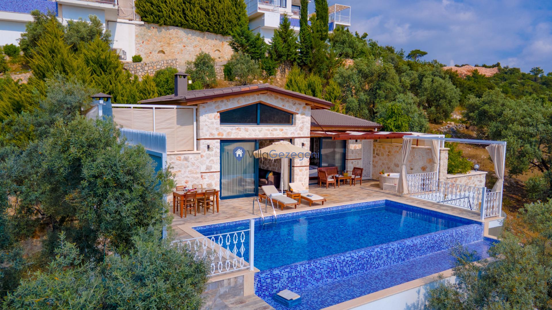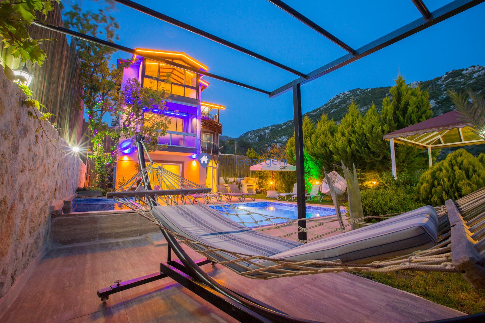 Villa Asaf, Kalkan Üzümlü'de 4 kişilik, markete merkeze ve restaurantlara yakın, jakuzili, doğa içerisinde bulunan kiralık muhafazakar balayı villası.