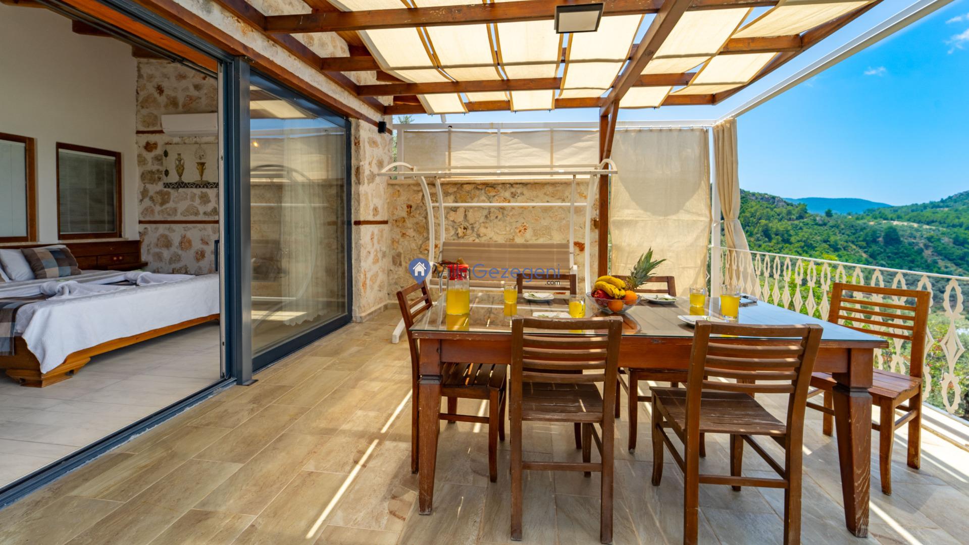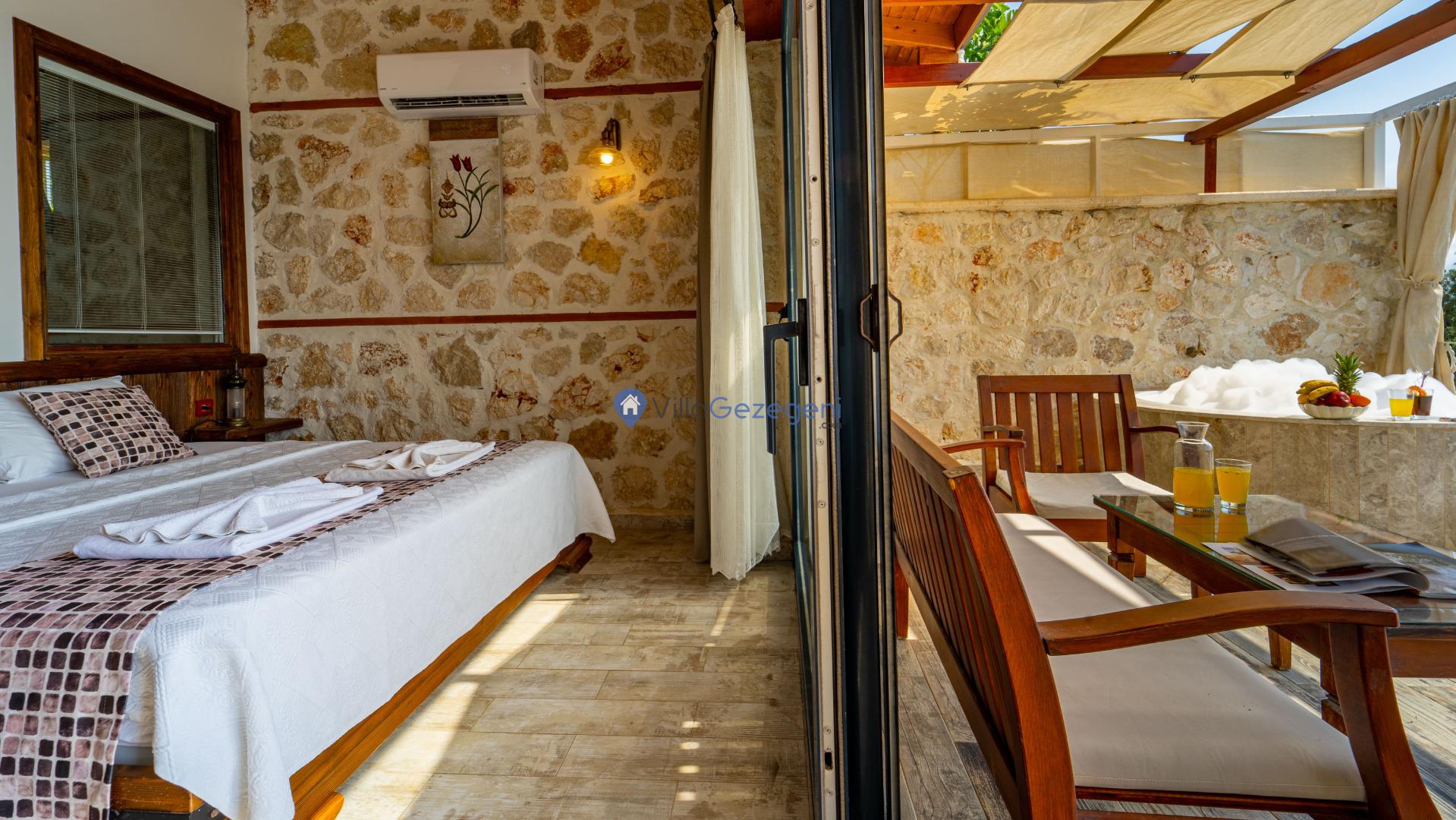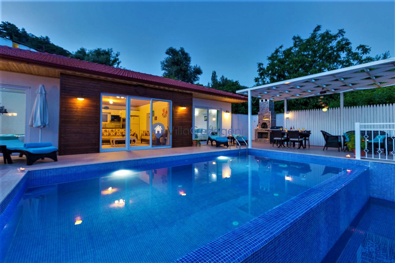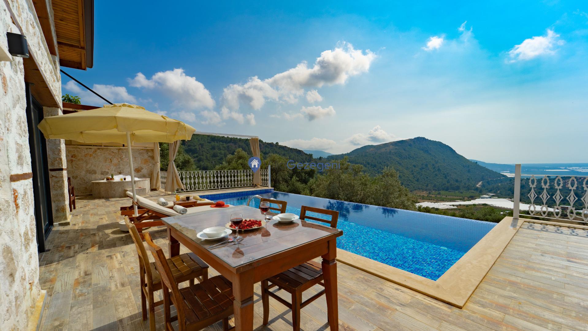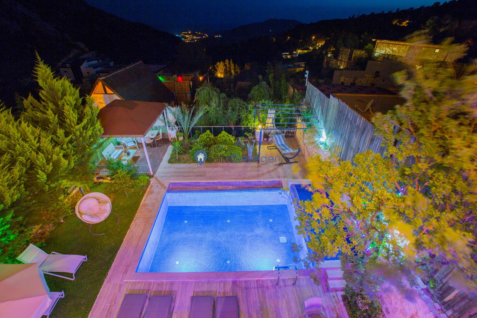 Villa Asaf, Kalkan Üzümlü'de 4 kişilik, markete merkeze ve restaurantlara yakın, jakuzili, doğa içerisinde bulunan kiralık muhafazakar balayı villası.
