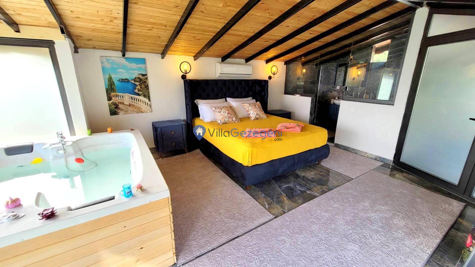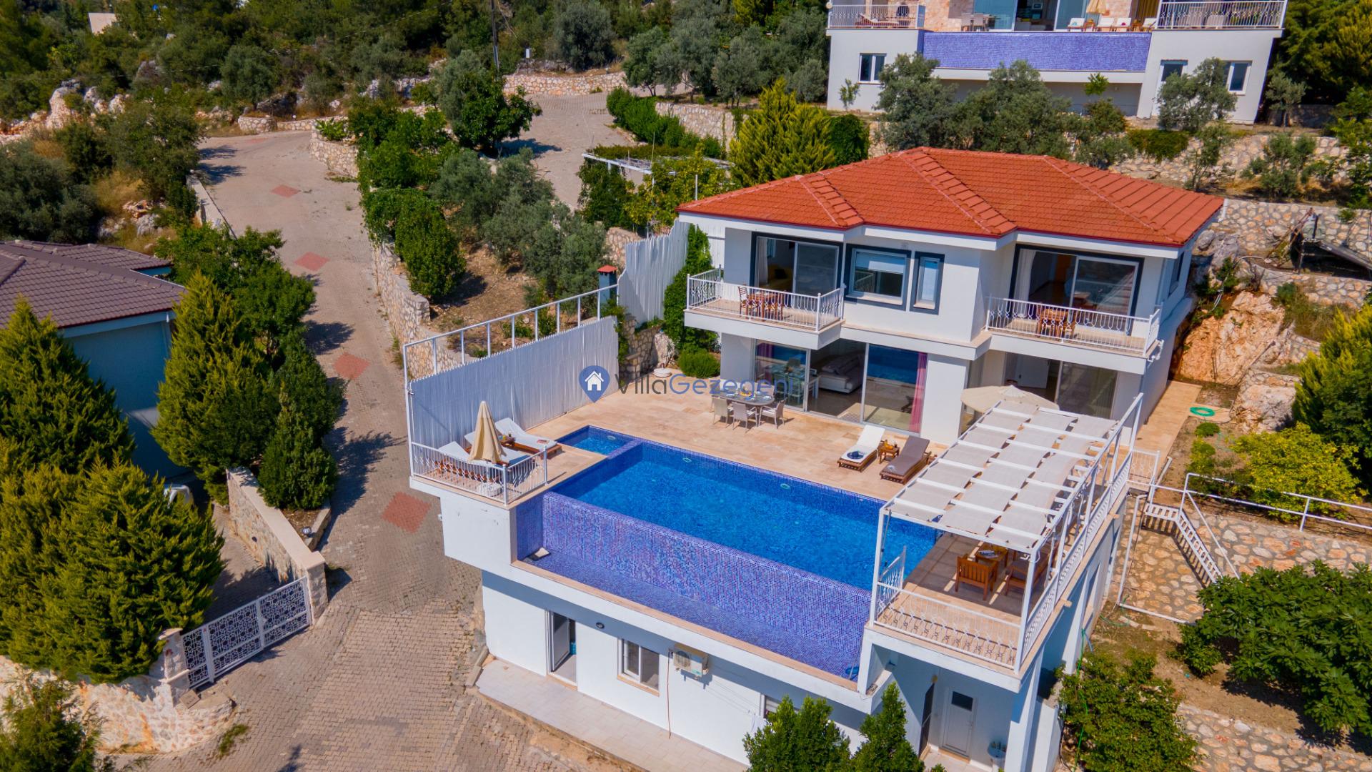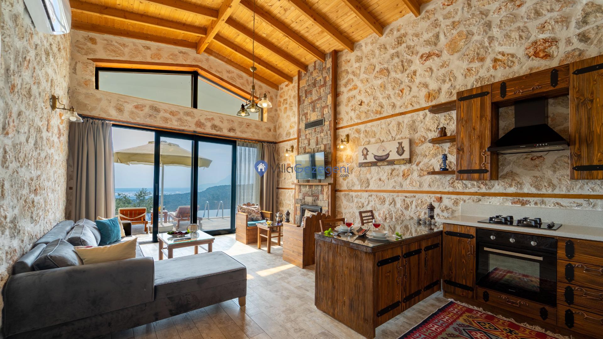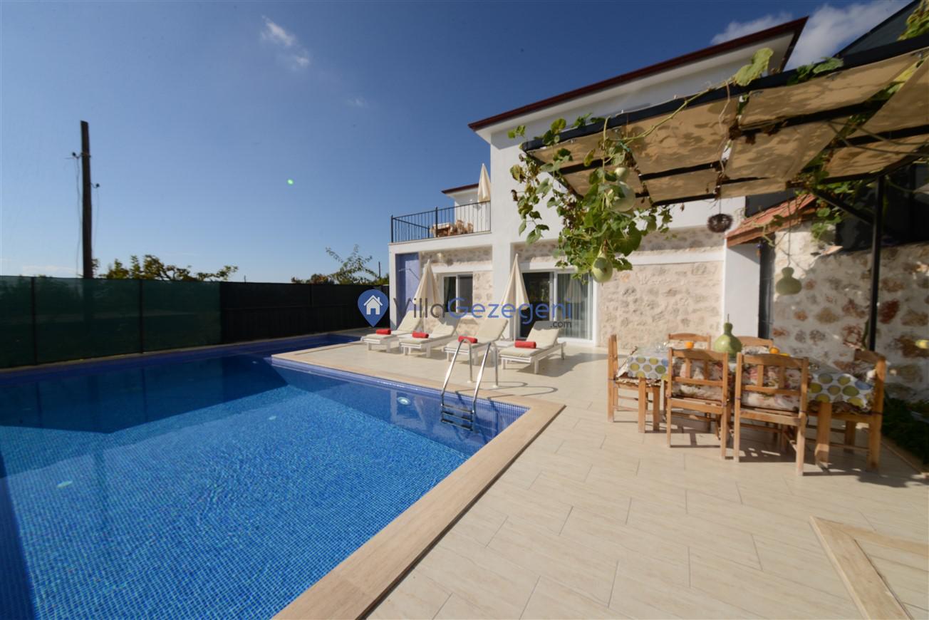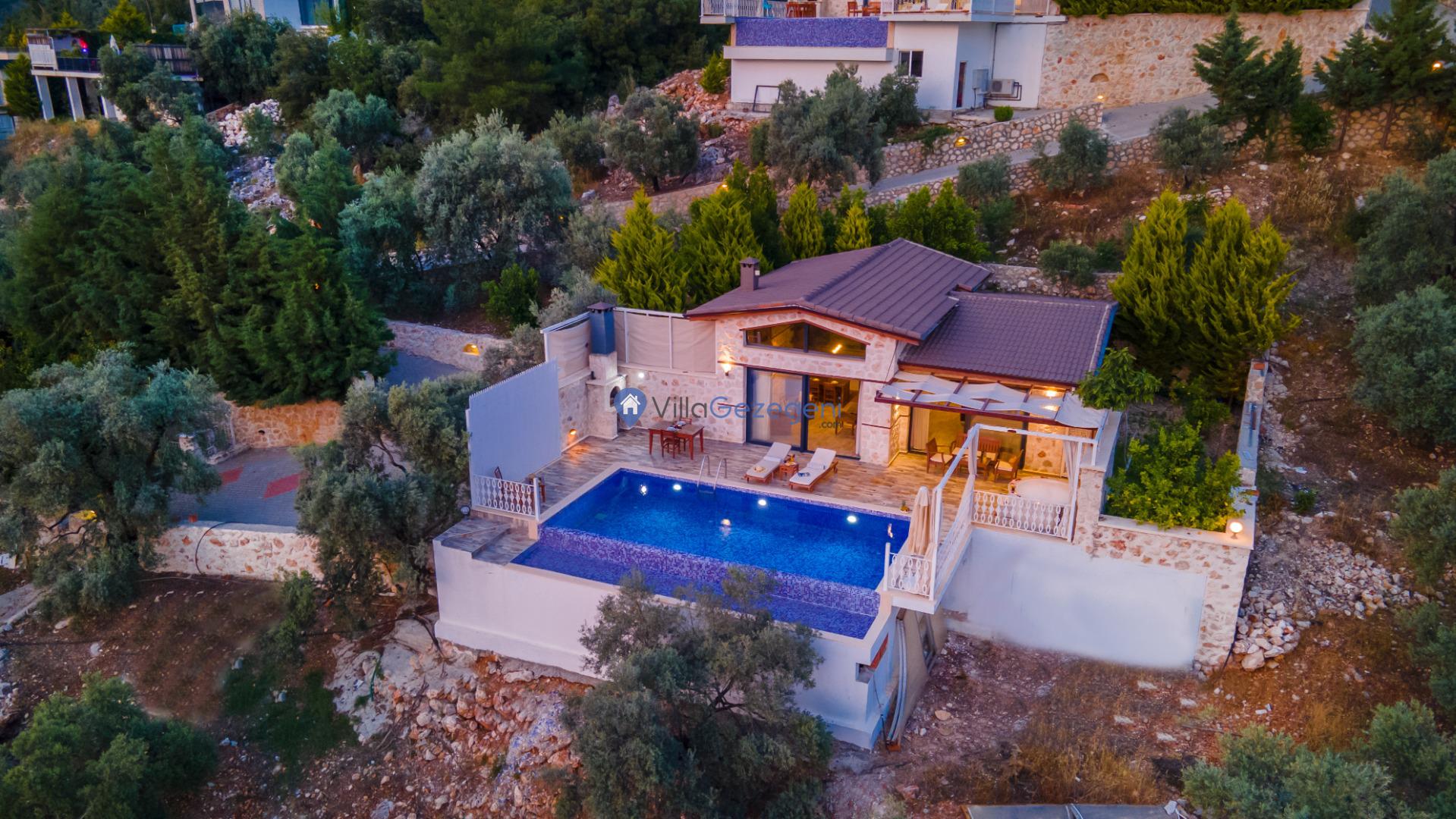 Villa Asaf, Kalkan Üzümlü'de 4 kişilik, markete merkeze ve restaurantlara yakın, jakuzili, doğa içerisinde bulunan kiralık muhafazakar balayı villası.