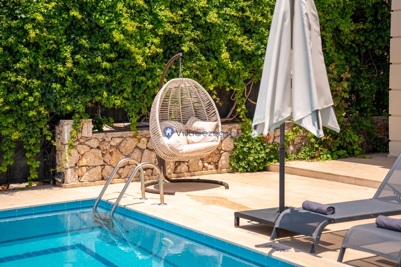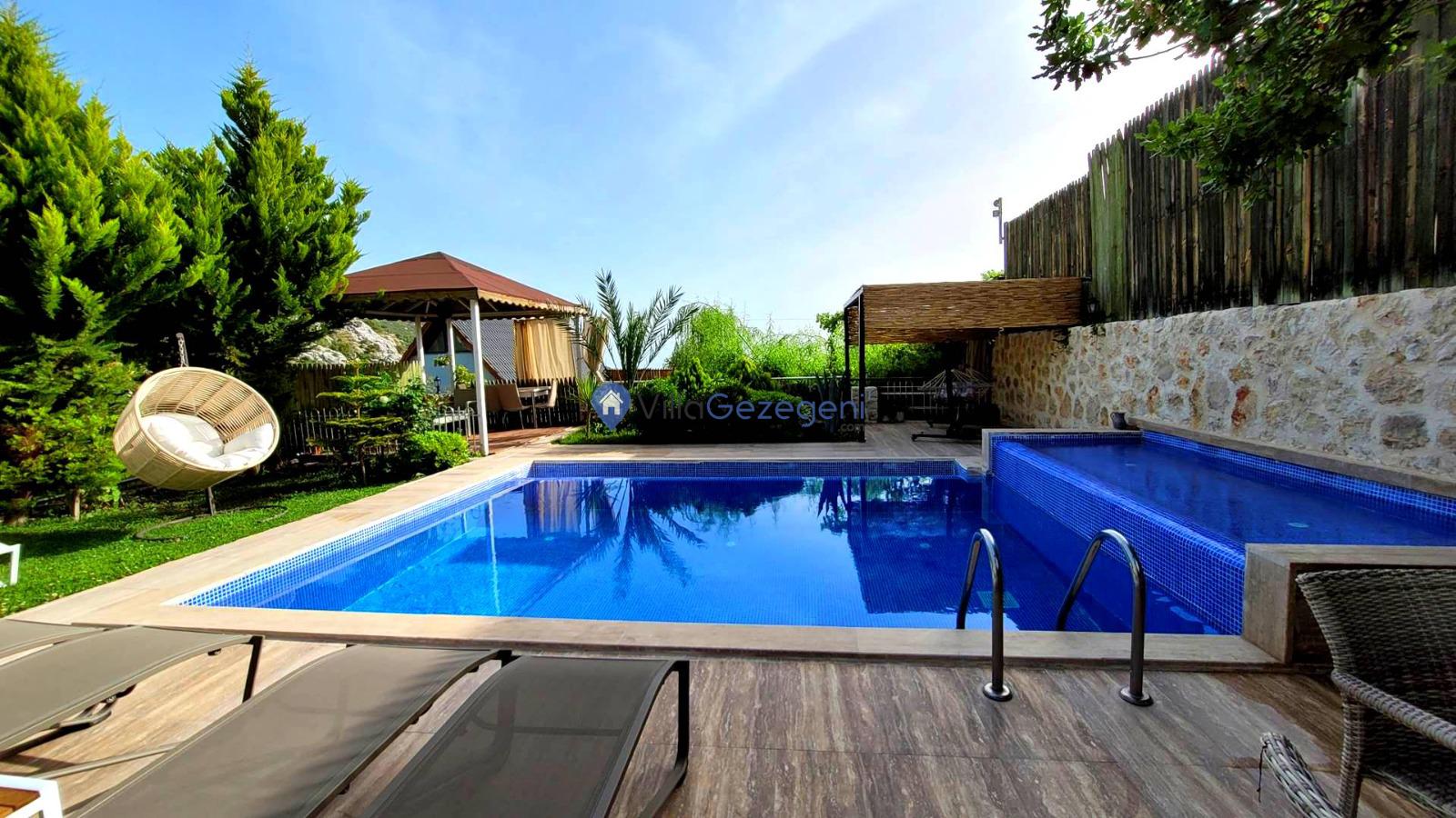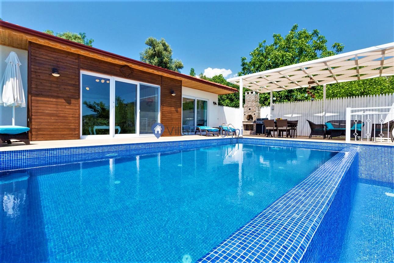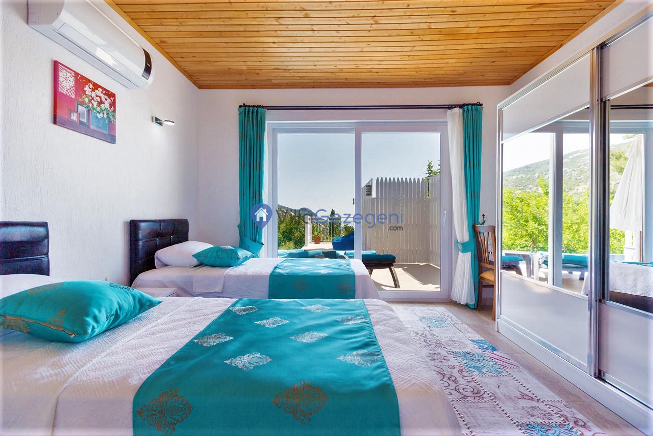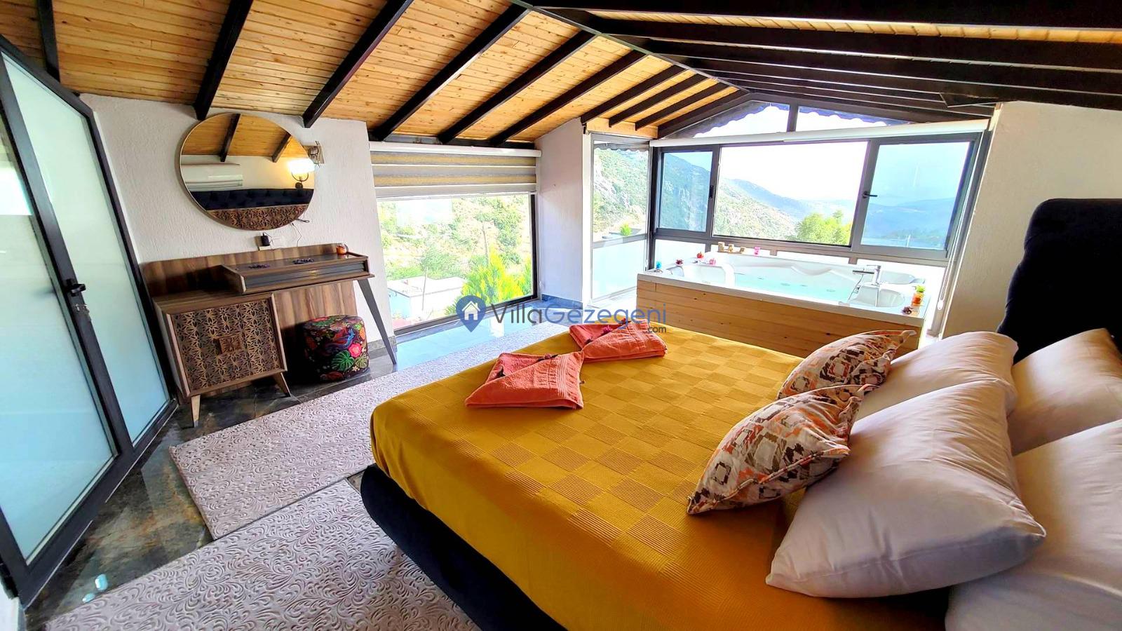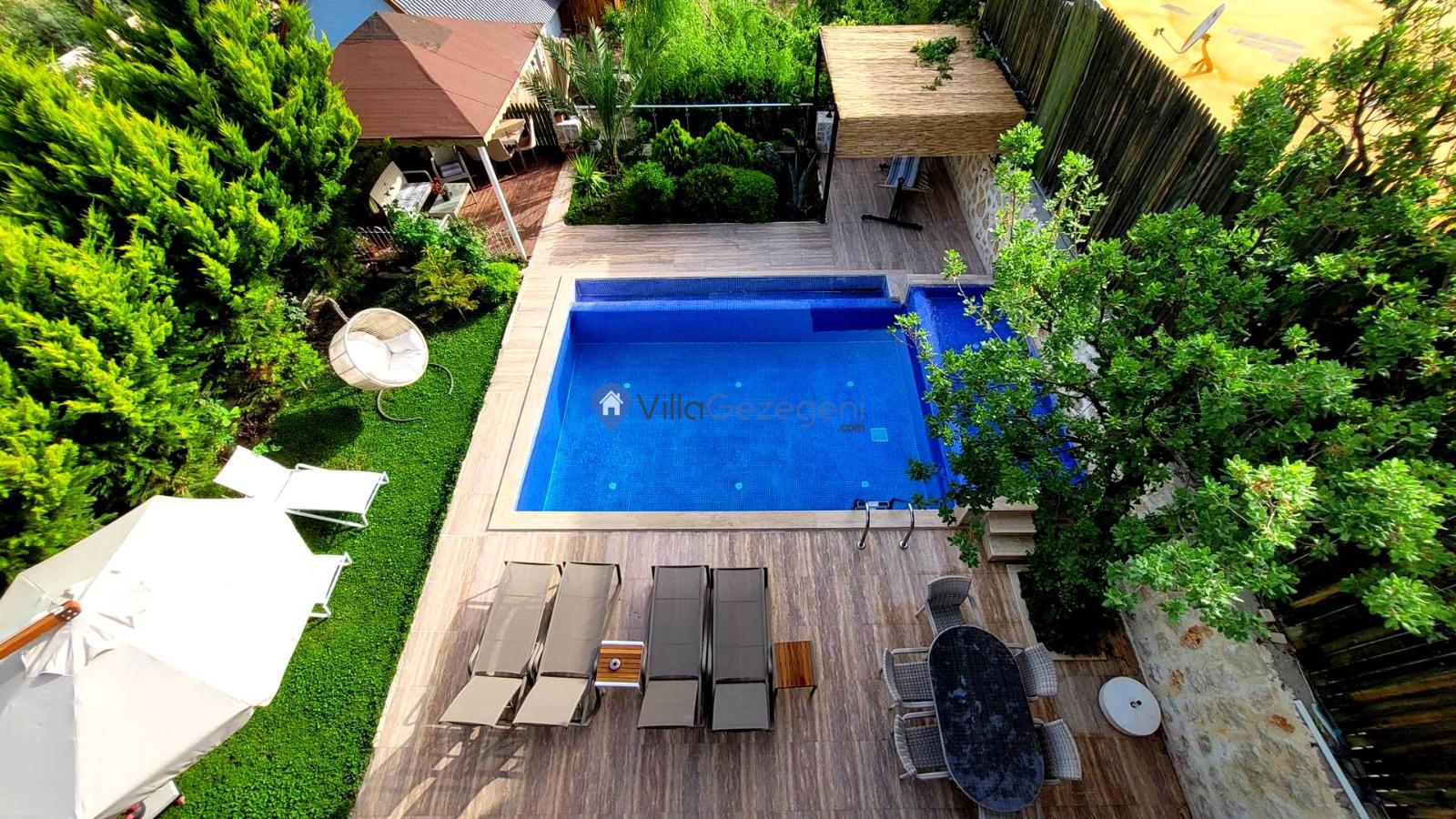 Villa Asaf, Kalkan Üzümlü'de 4 kişilik, markete merkeze ve restaurantlara yakın, jakuzili, doğa içerisinde bulunan kiralık muhafazakar balayı villası.