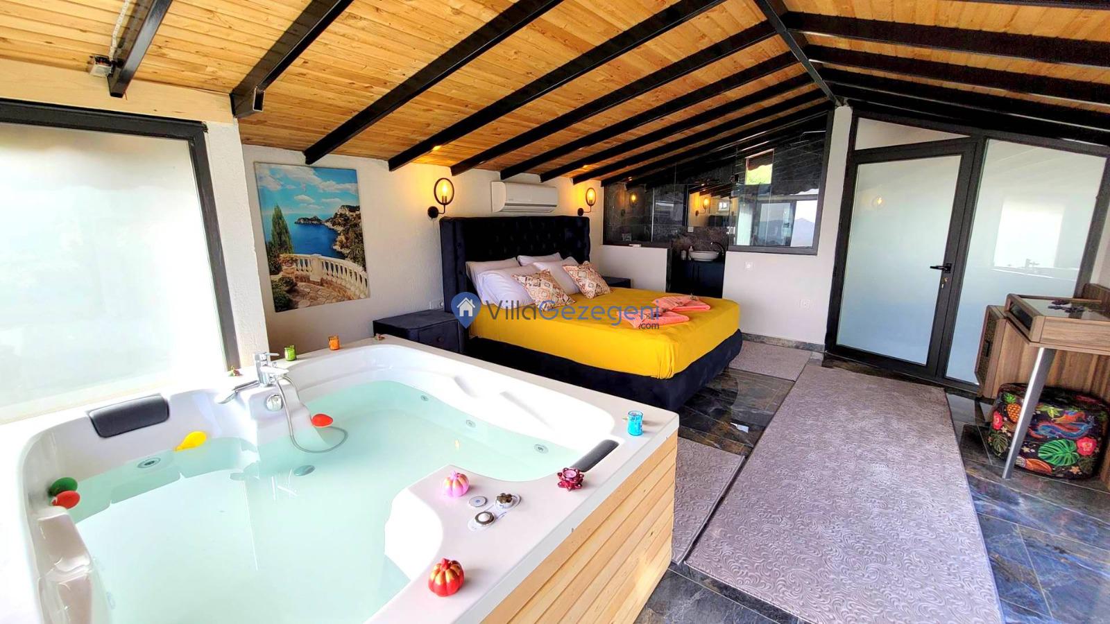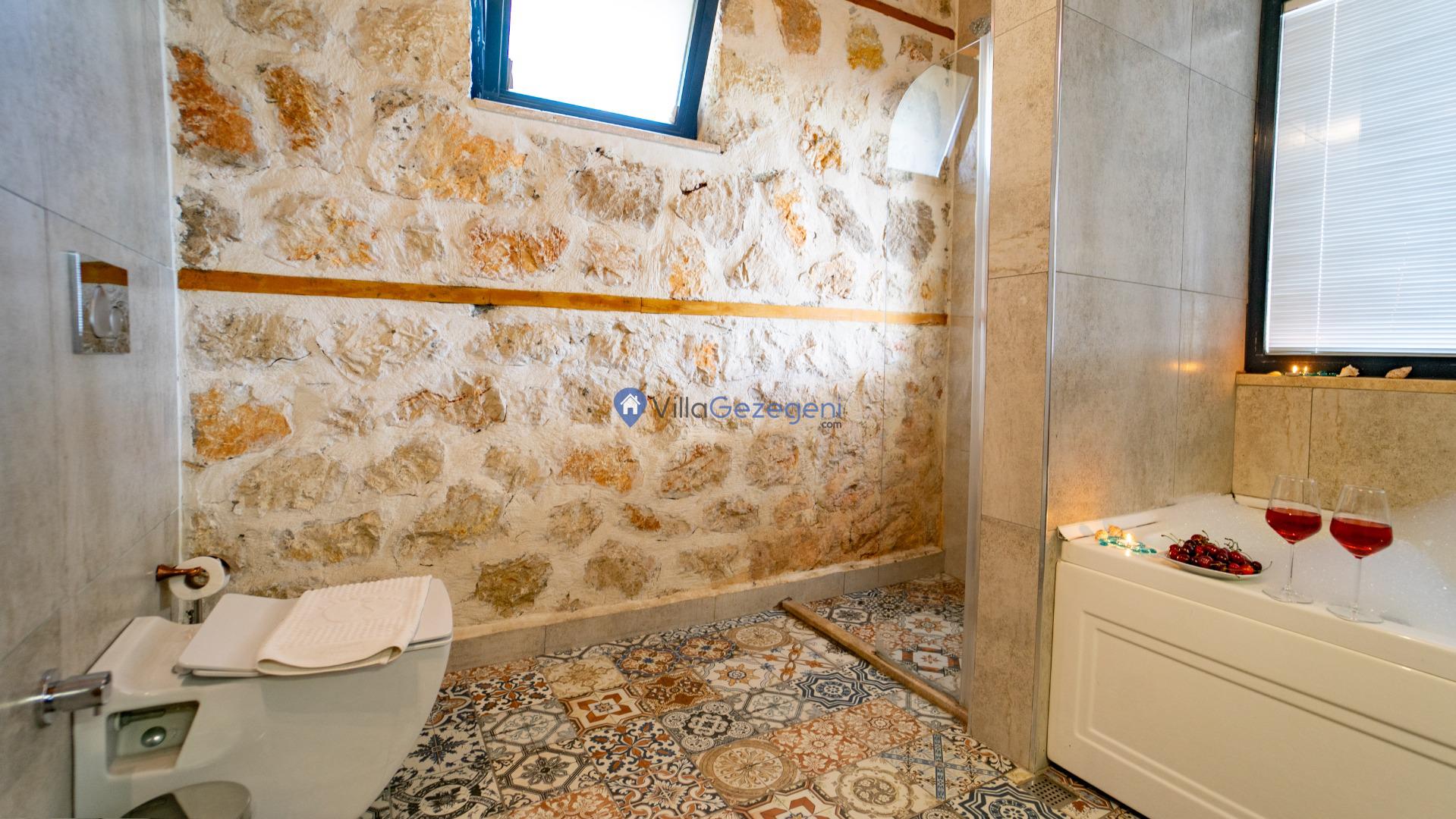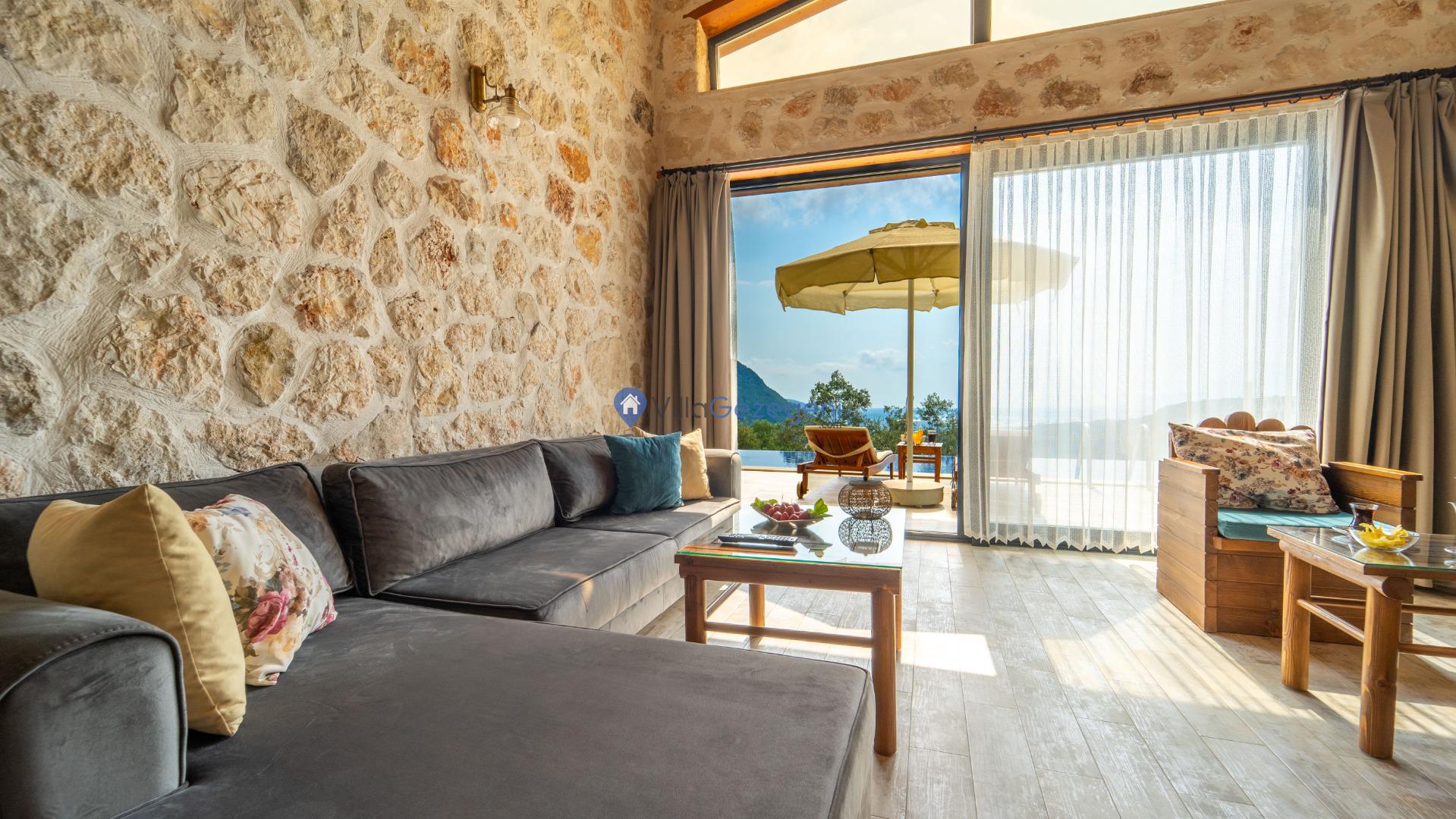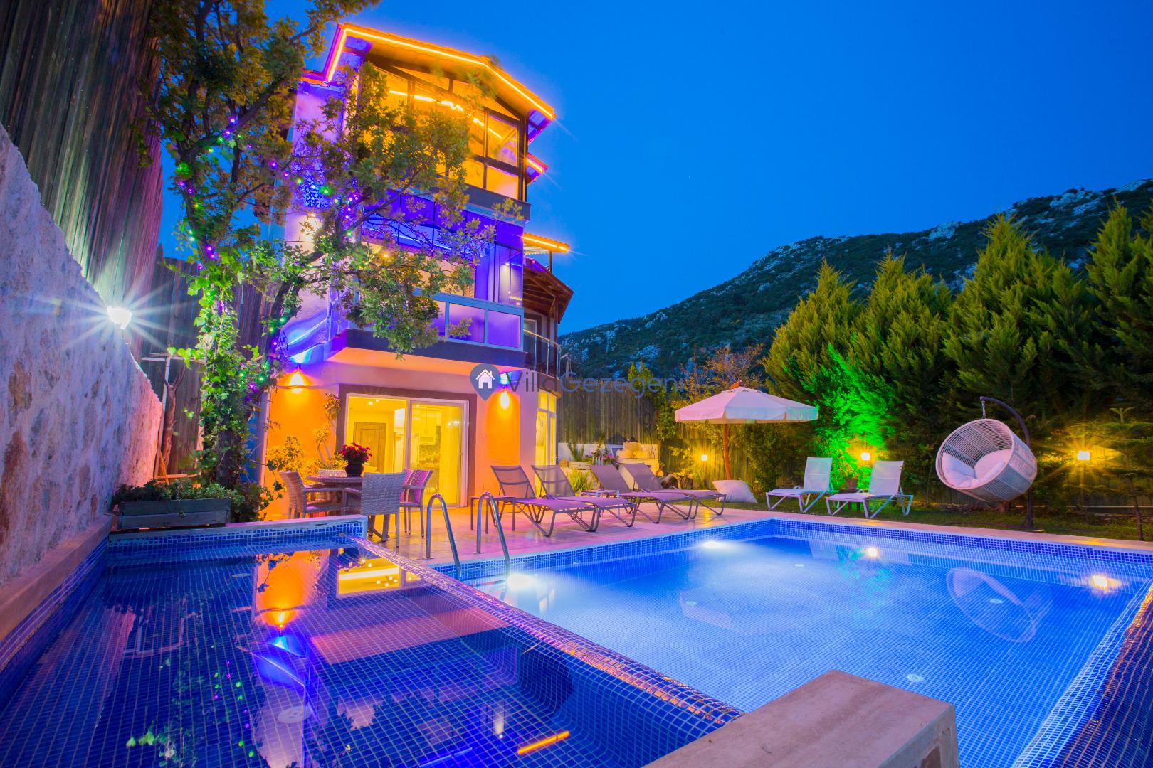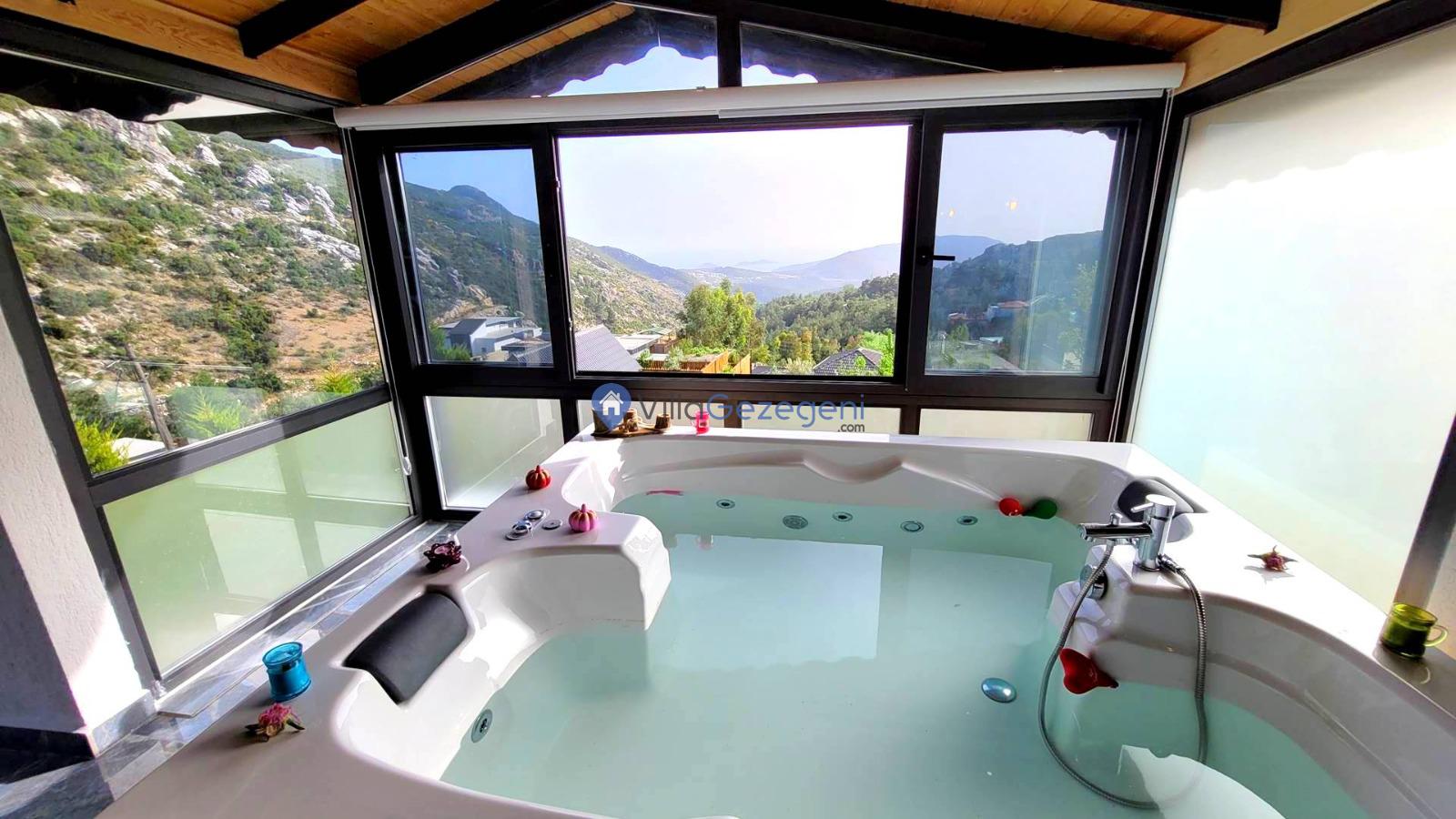 Villa Asaf, Kalkan Üzümlü'de 4 kişilik, markete merkeze ve restaurantlara yakın, jakuzili, doğa içerisinde bulunan kiralık muhafazakar balayı villası.
