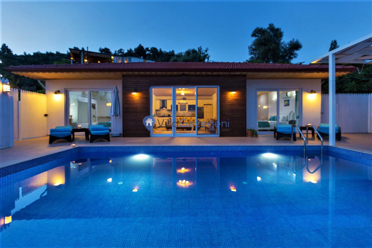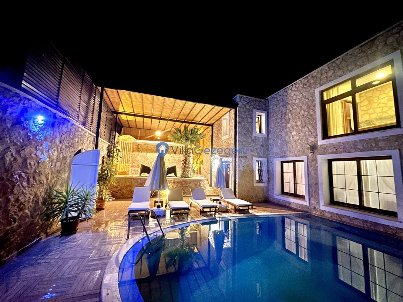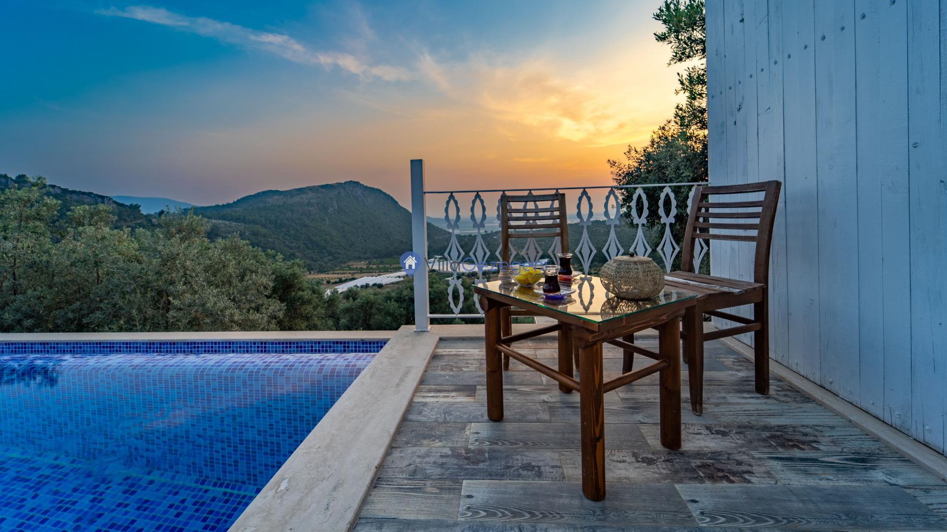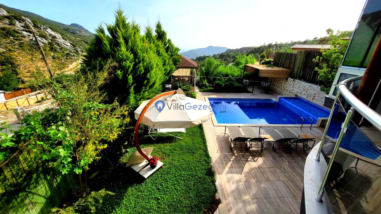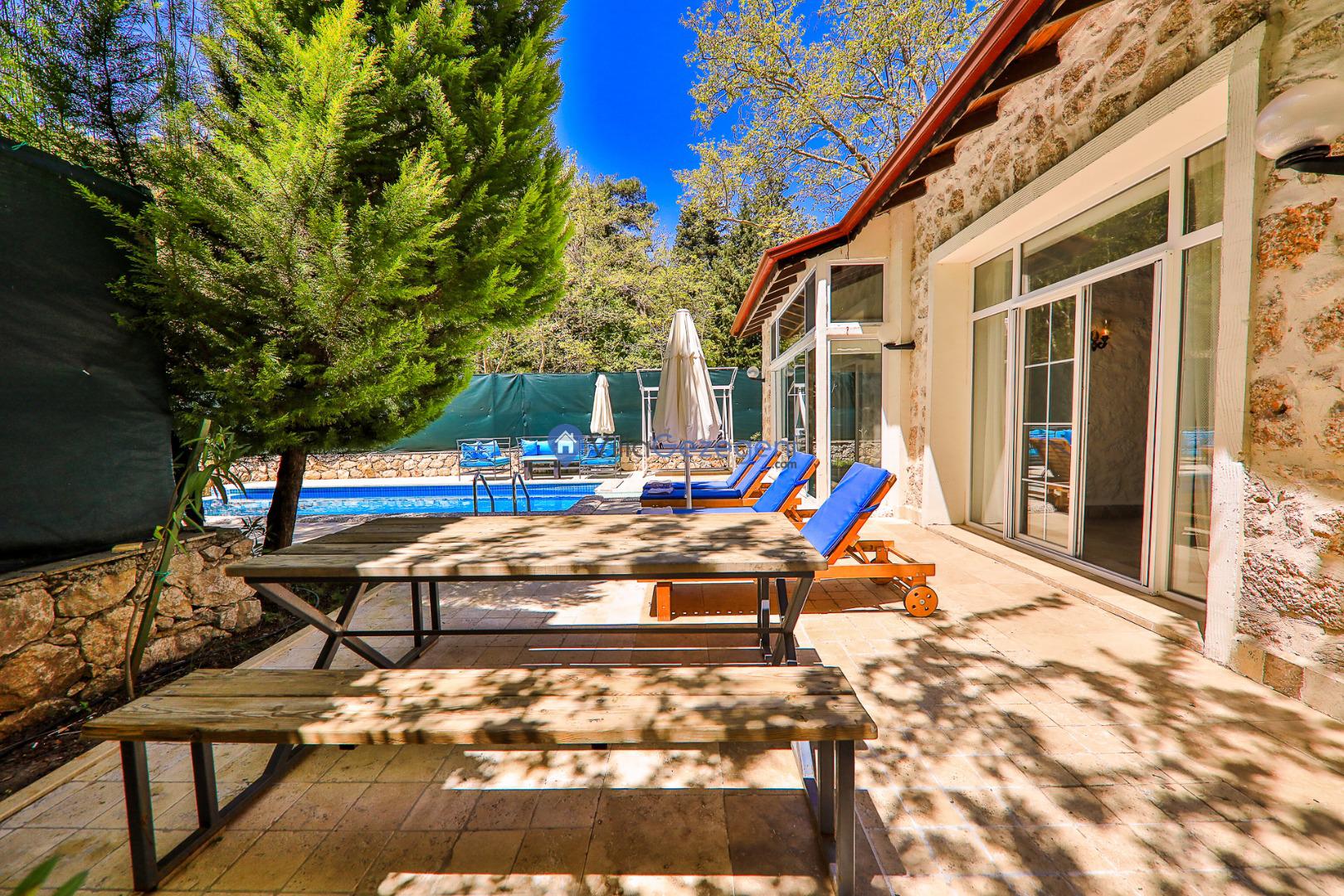 Villa Asaf, Kalkan Üzümlü'de 4 kişilik, markete merkeze ve restaurantlara yakın, jakuzili, doğa içerisinde bulunan kiralık muhafazakar balayı villası.
