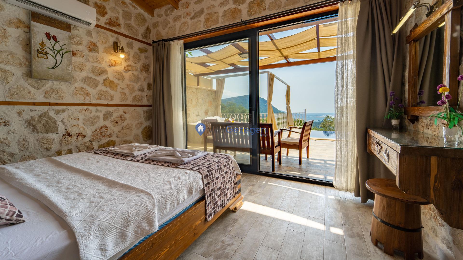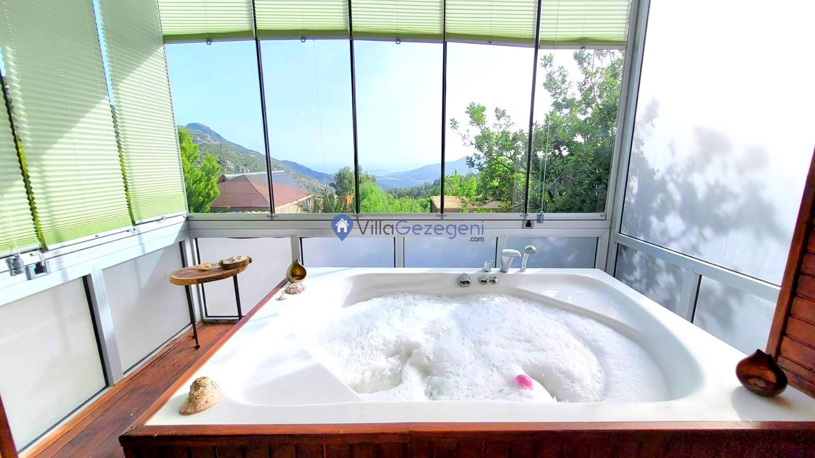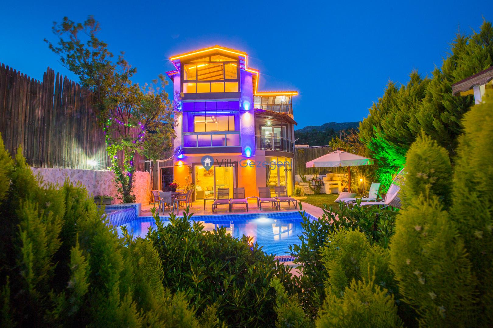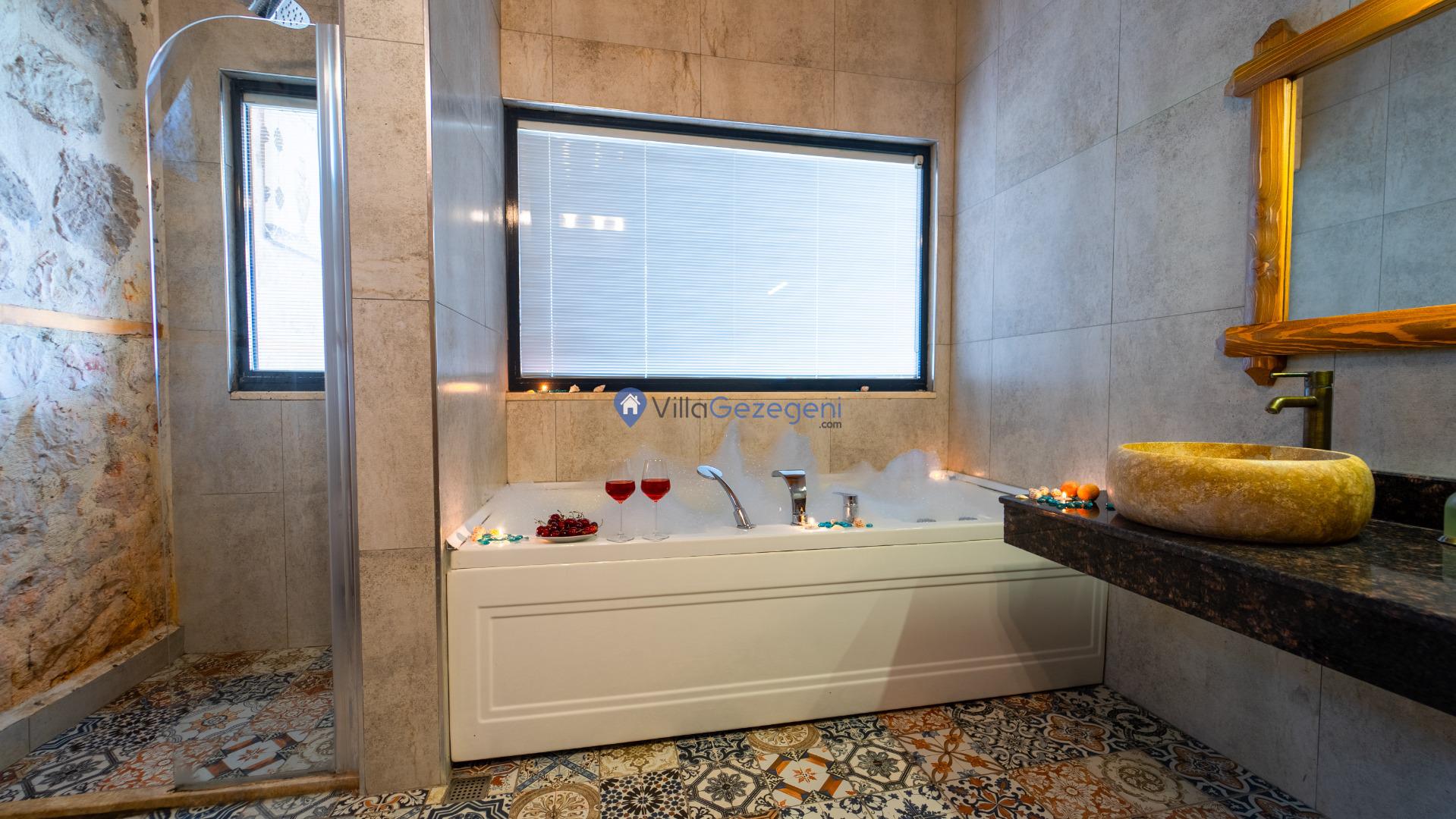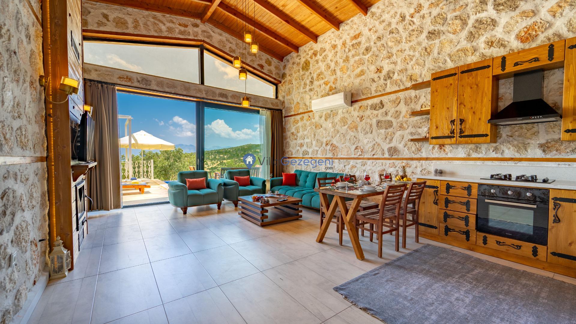 Villa Asaf, Kalkan Üzümlü'de 4 kişilik, markete merkeze ve restaurantlara yakın, jakuzili, doğa içerisinde bulunan kiralık muhafazakar balayı villası.