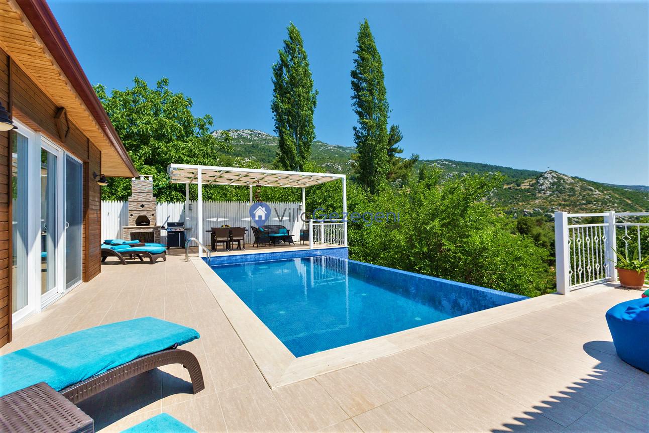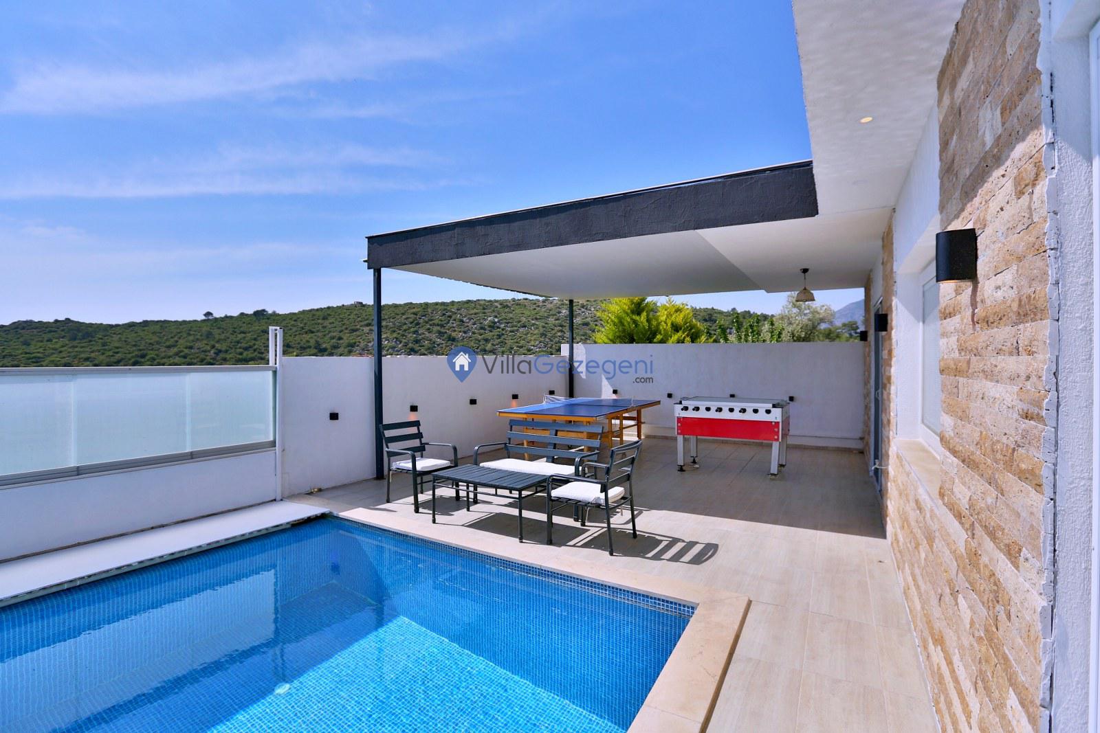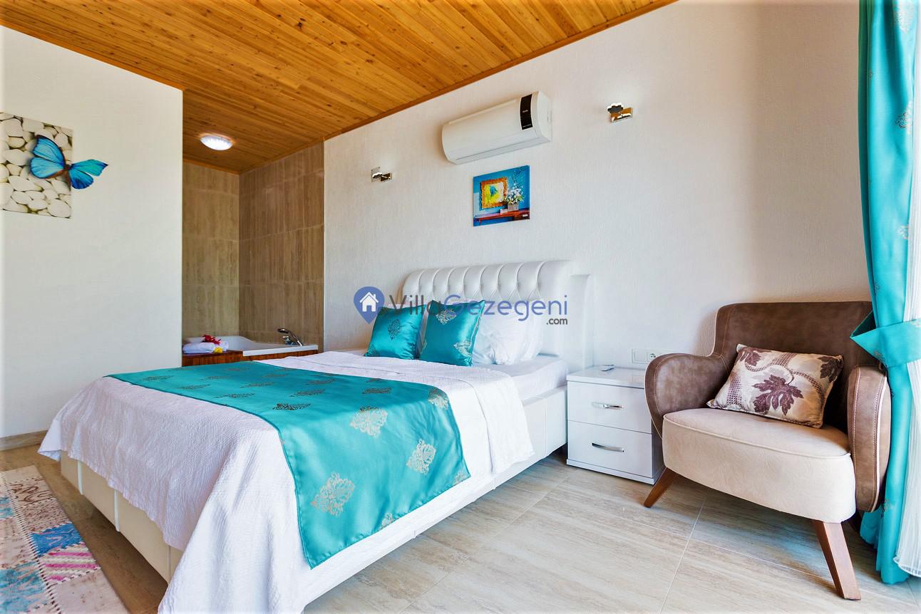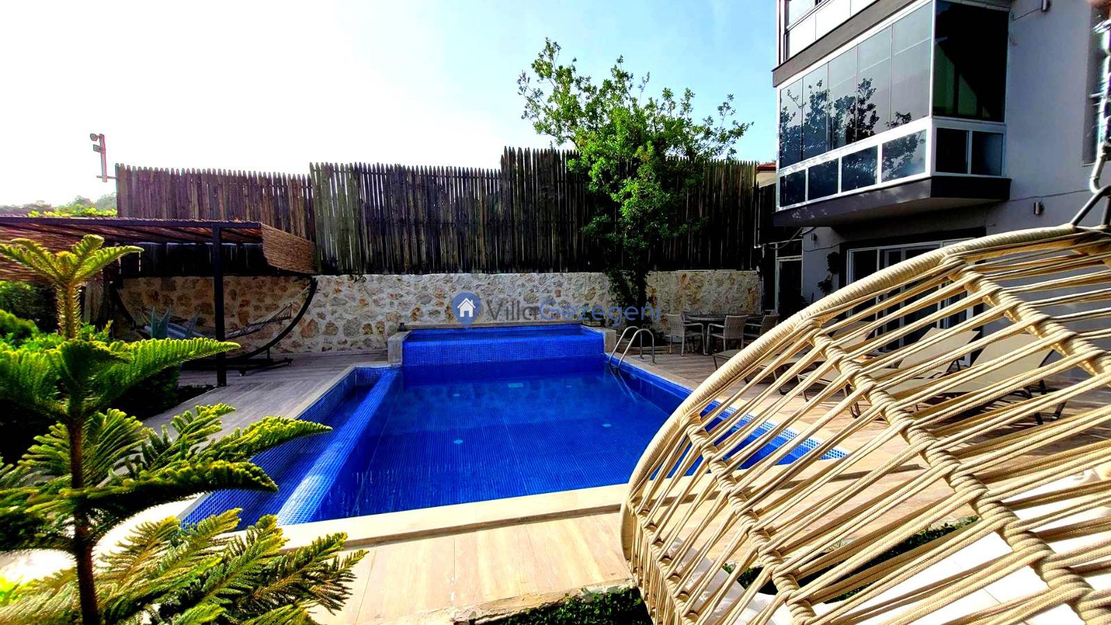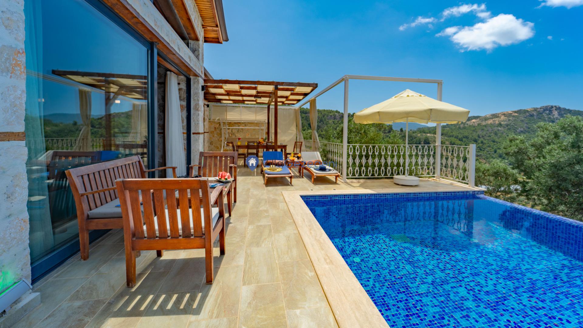 Villa Asaf, Kalkan Üzümlü'de 4 kişilik, markete merkeze ve restaurantlara yakın, jakuzili, doğa içerisinde bulunan kiralık muhafazakar balayı villası.