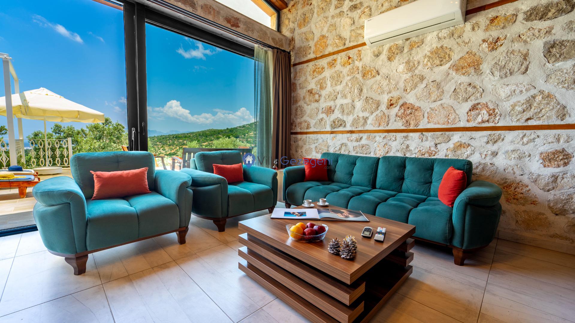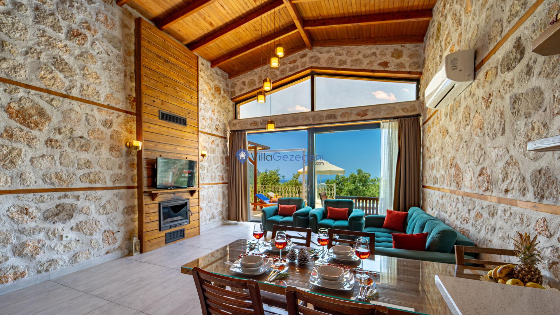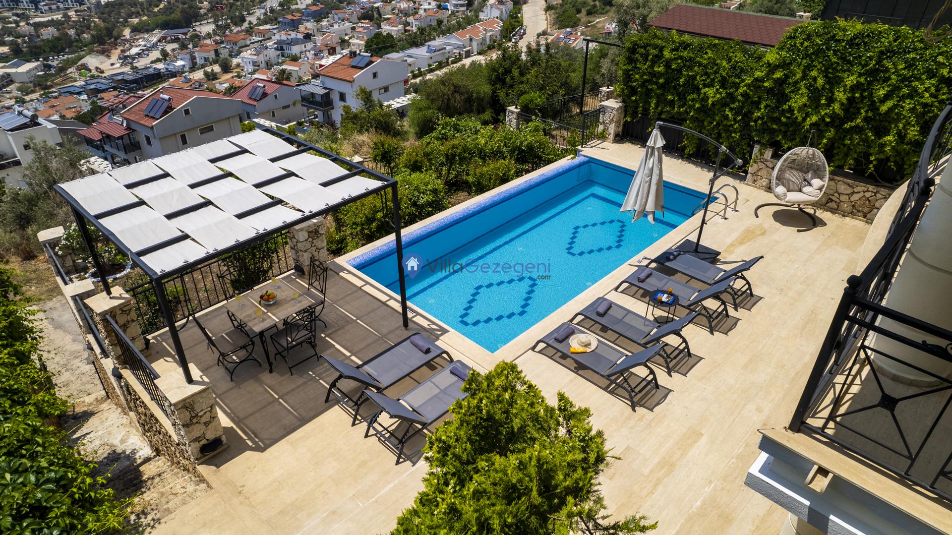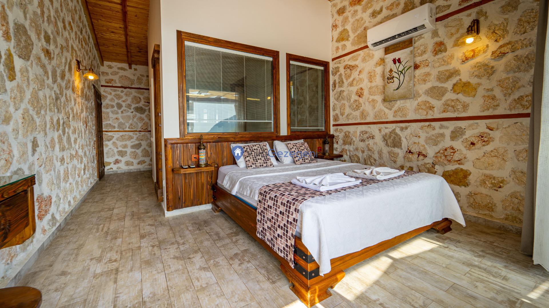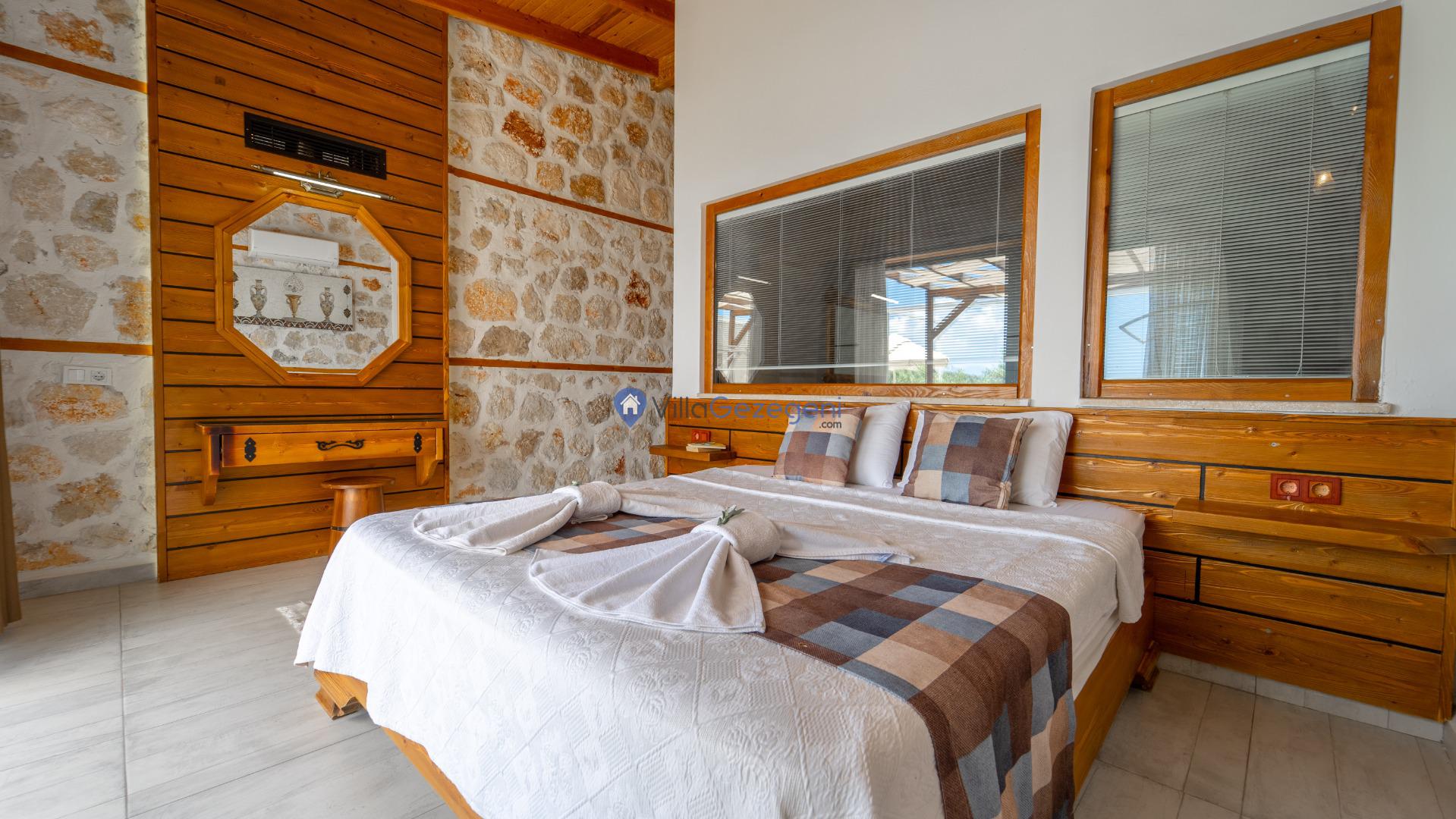 Villa Asaf, Kalkan Üzümlü'de 4 kişilik, markete merkeze ve restaurantlara yakın, jakuzili, doğa içerisinde bulunan kiralık muhafazakar balayı villası.