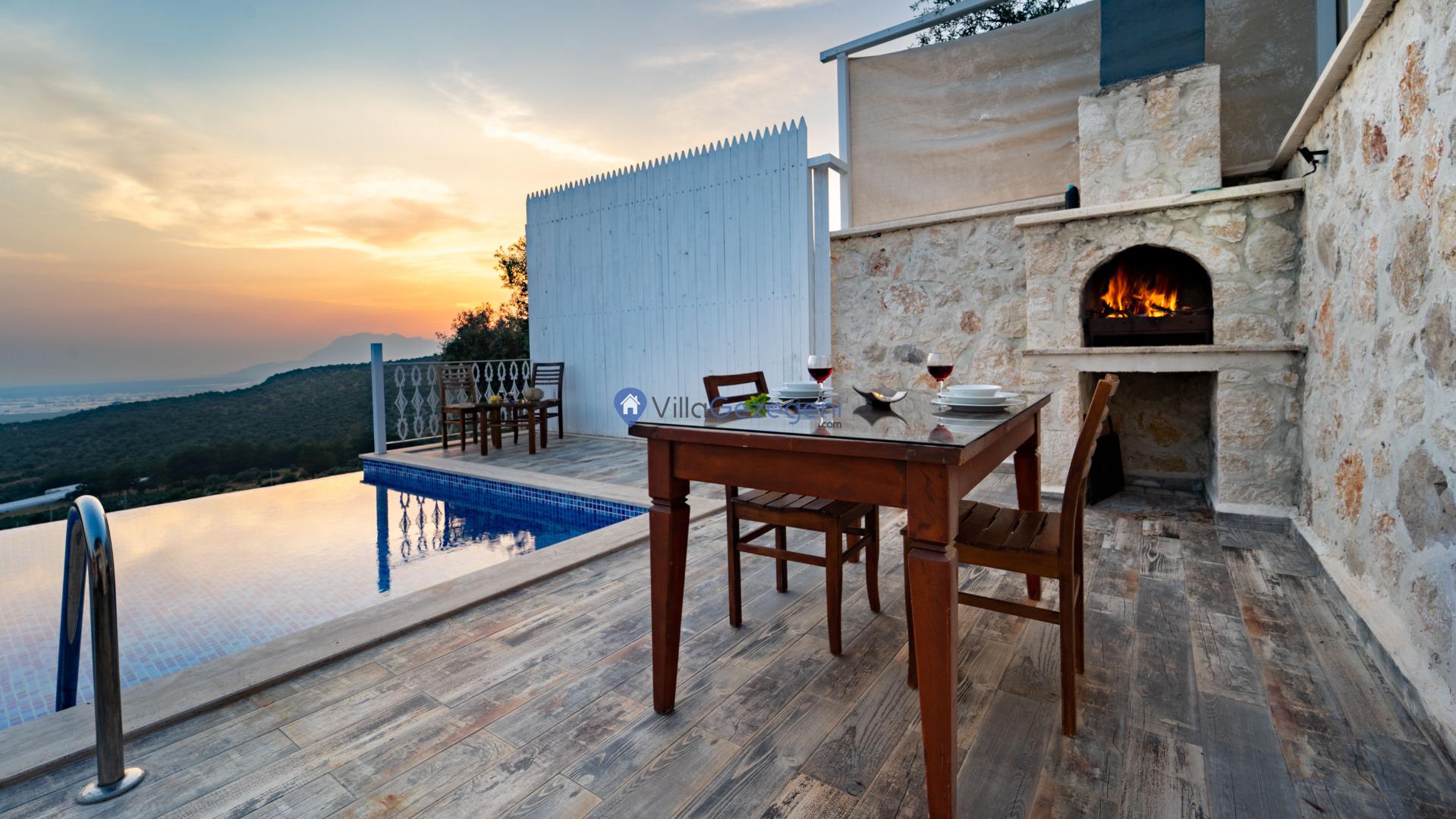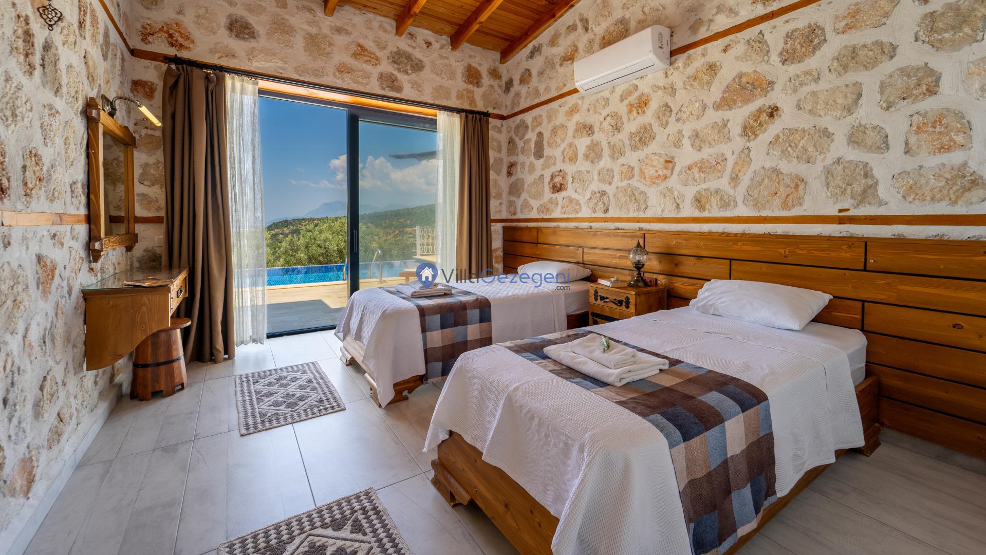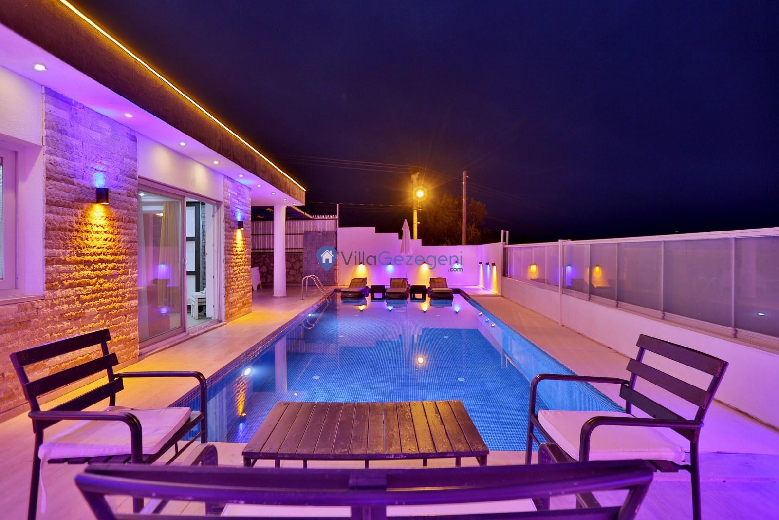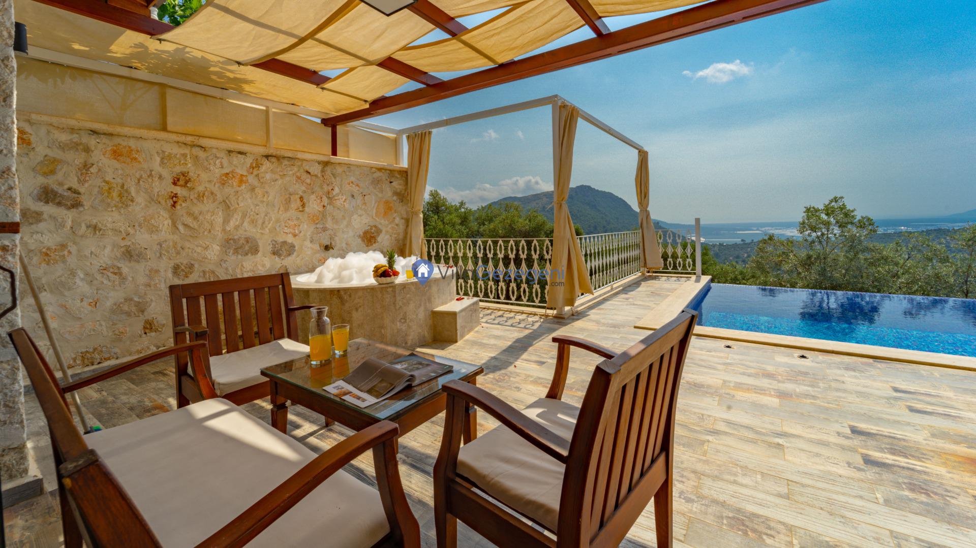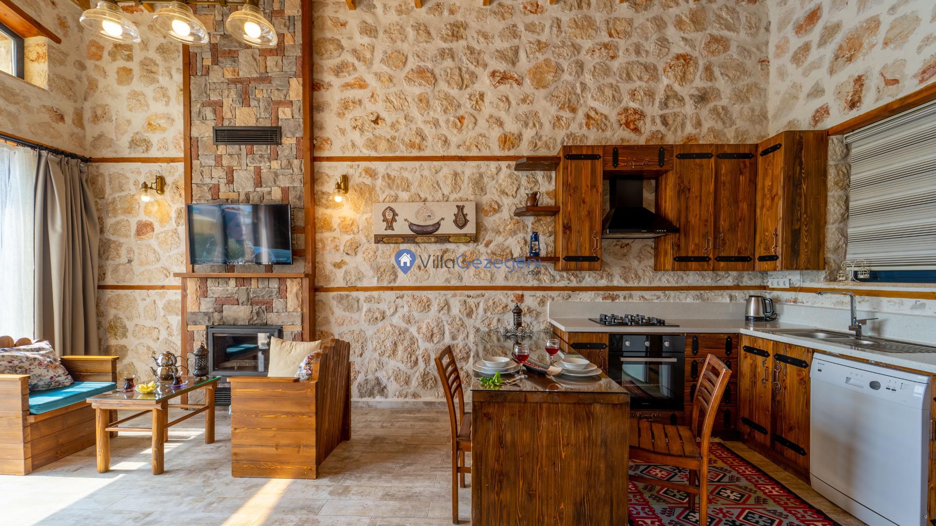 Villa Asaf, Kalkan Üzümlü'de 4 kişilik, markete merkeze ve restaurantlara yakın, jakuzili, doğa içerisinde bulunan kiralık muhafazakar balayı villası.