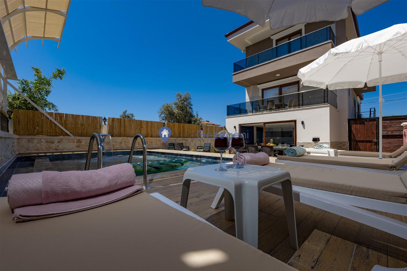 Demre Kumdağı Mevkiinde yer alan 3 yatak odalı 6 kişi kapasiteli geniş aile ve arkadaş grupları için uygun Kiralık Tatil Villası.