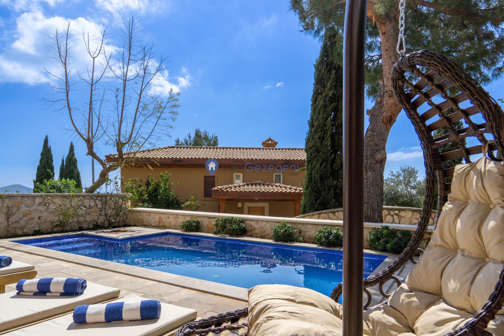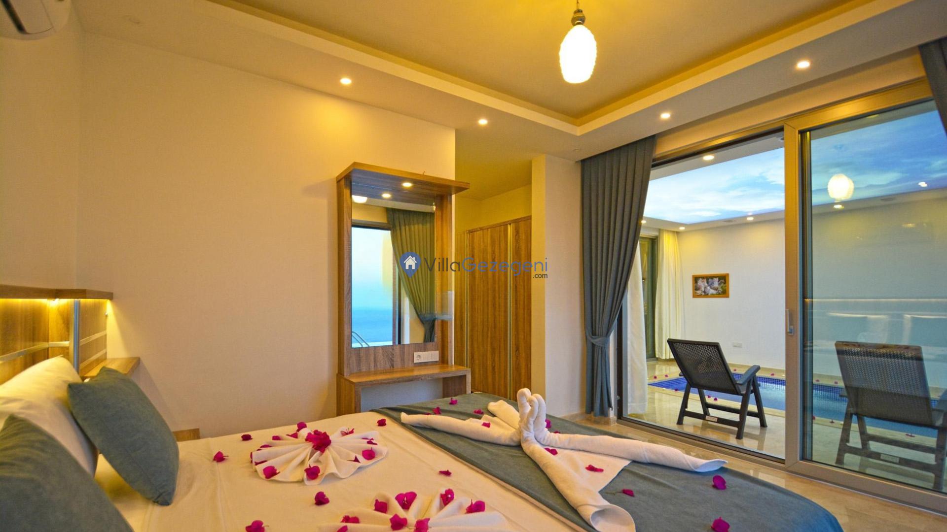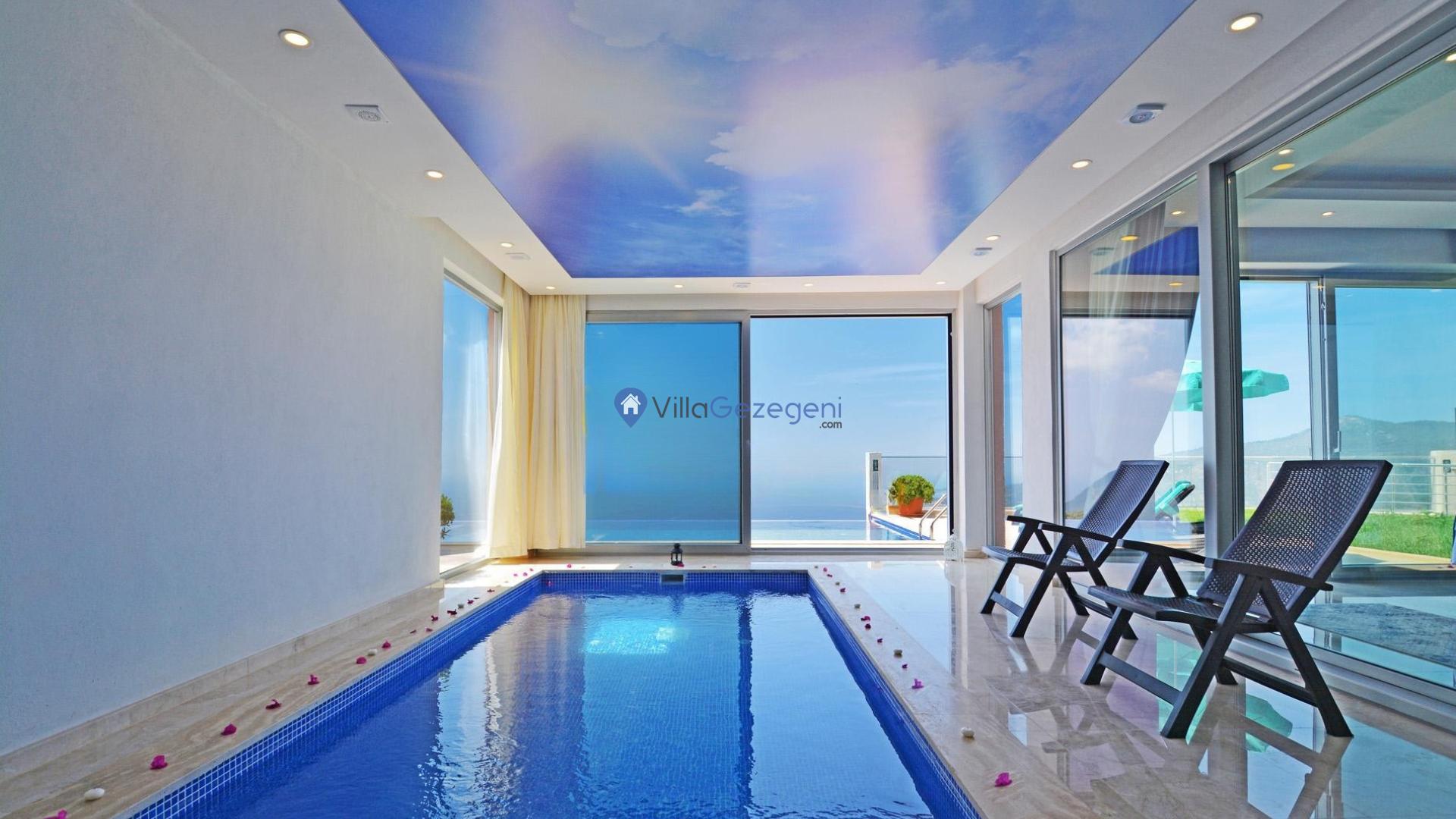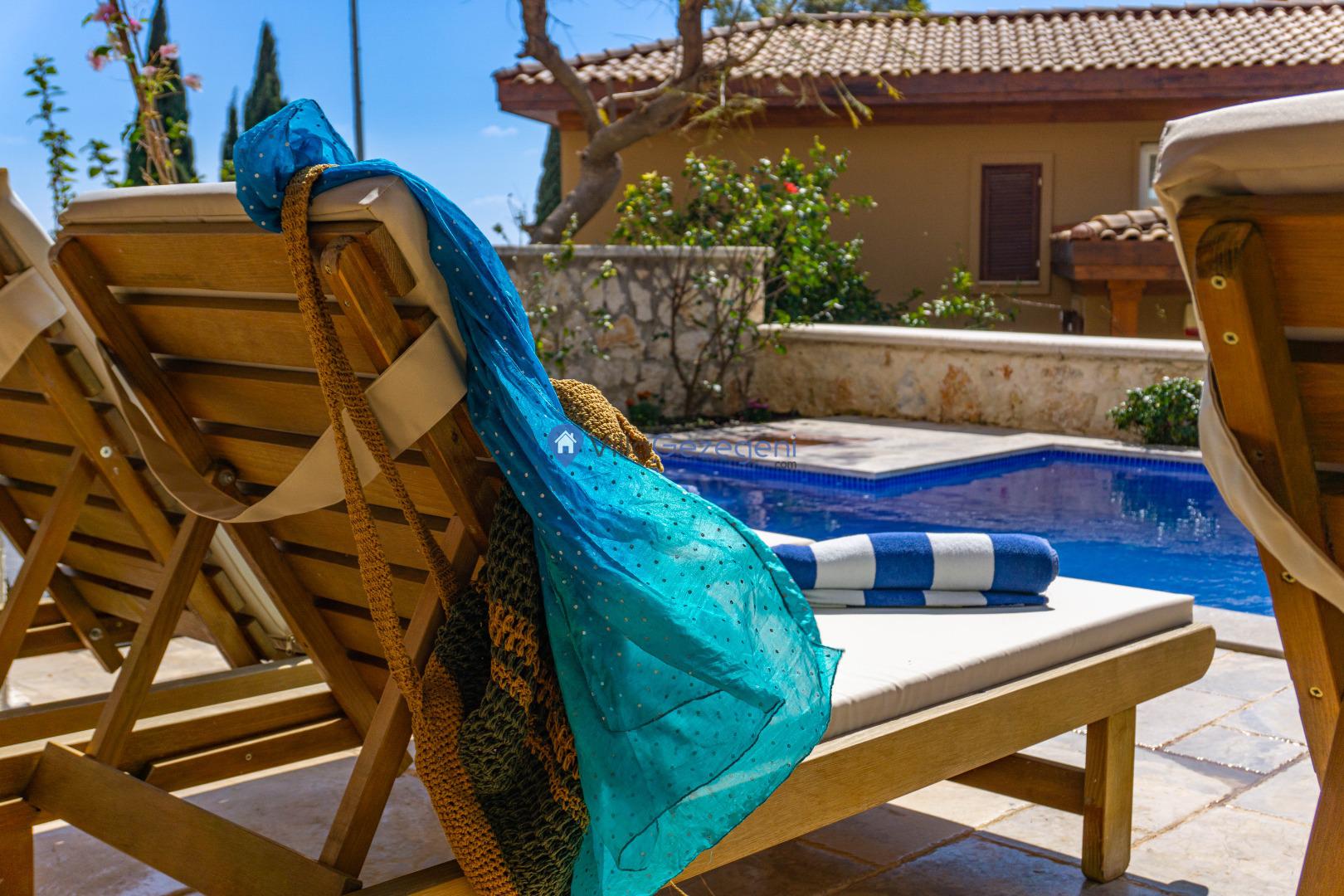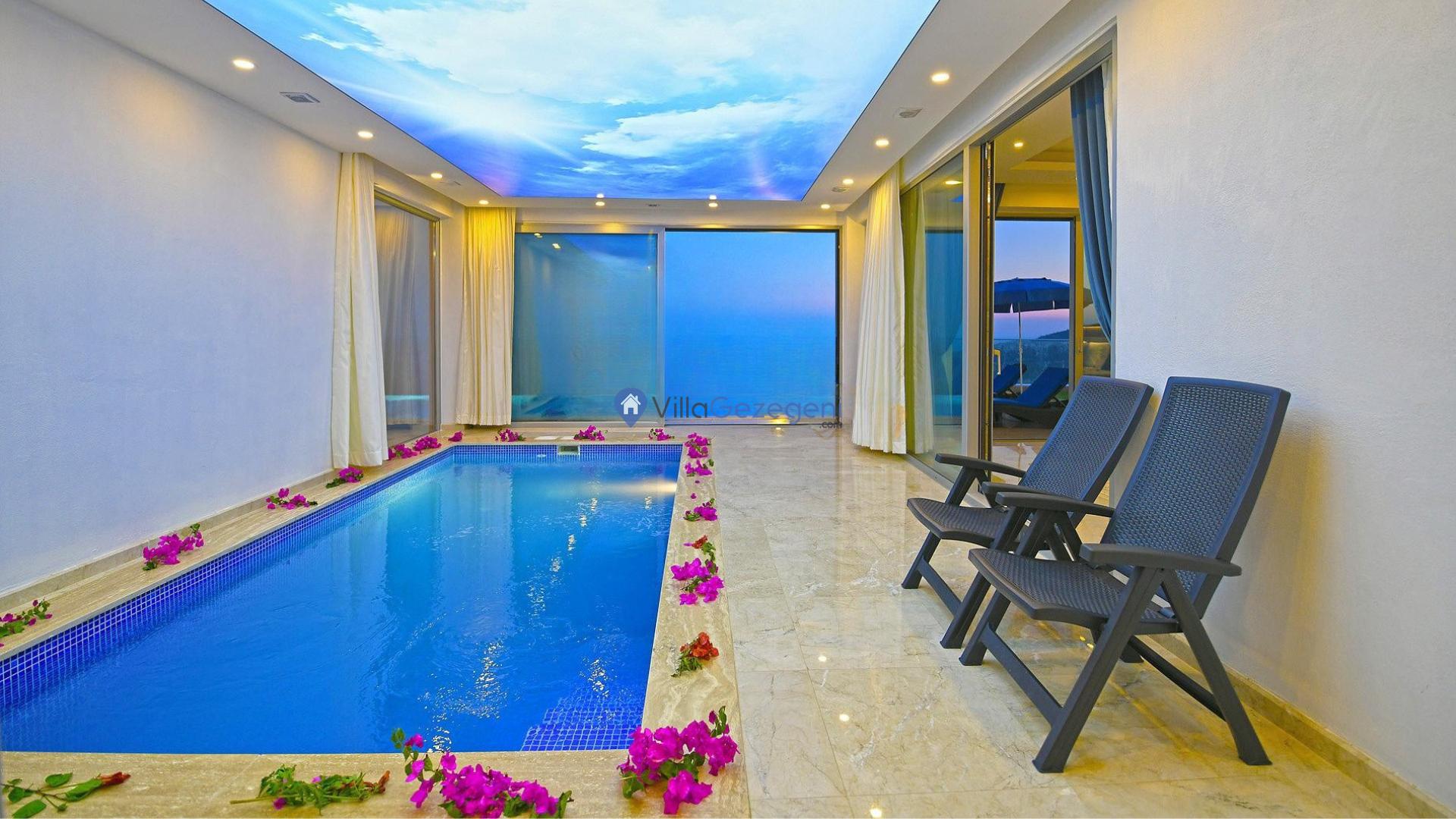 Kaş/Kalkan Lavanta bölgesinde 4 kişilik, şehir merkezine yakın, Kapalı Isıtmalı Havuzlu, doğa içerisinde, deniz manzaralı, kiralık aile ve balayı villası.