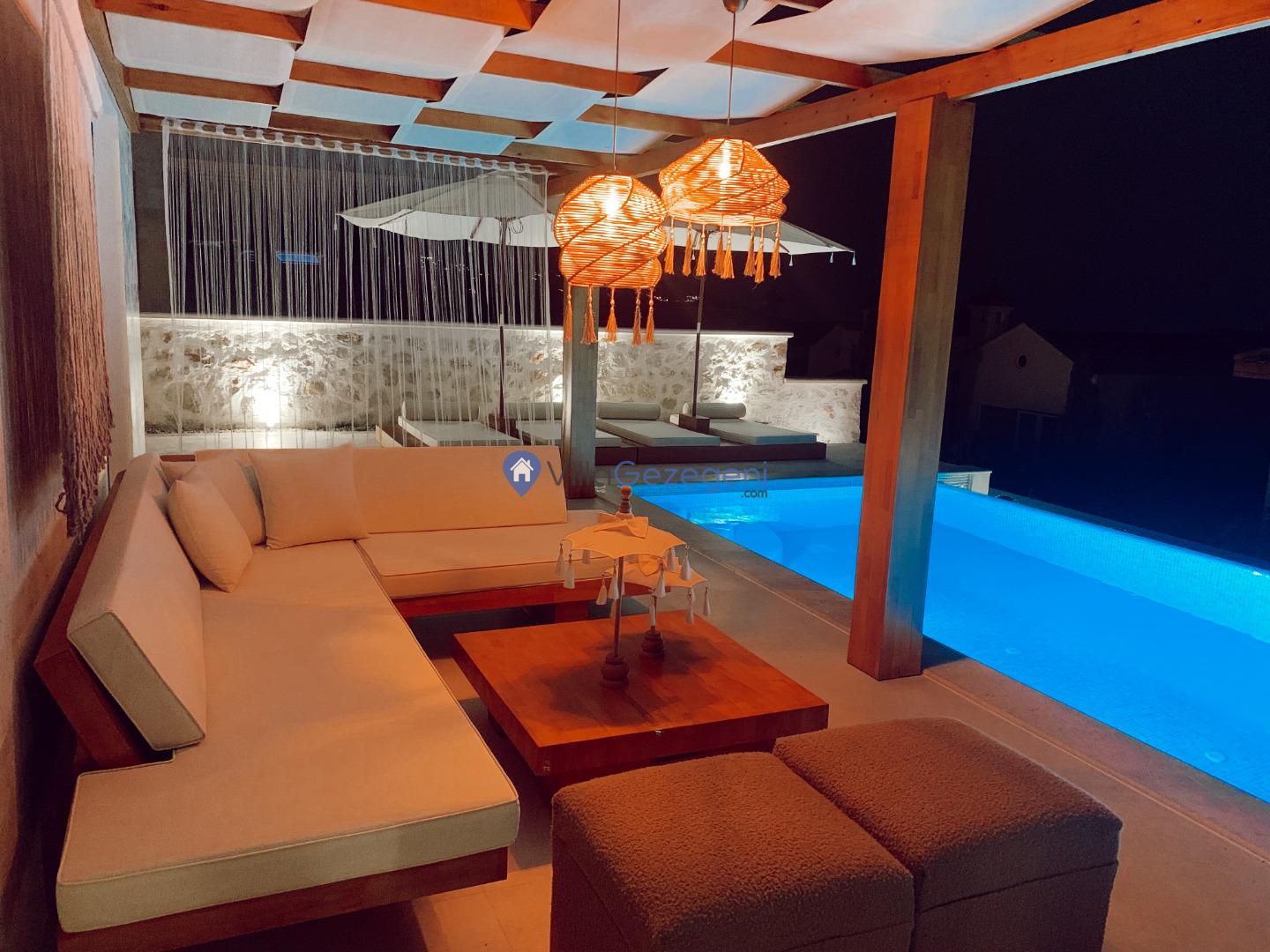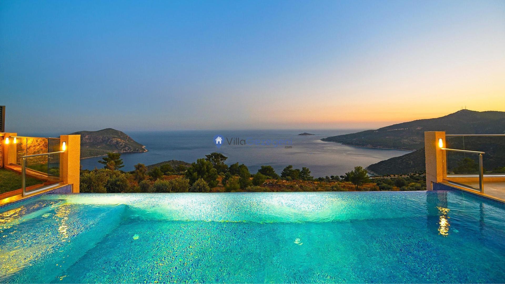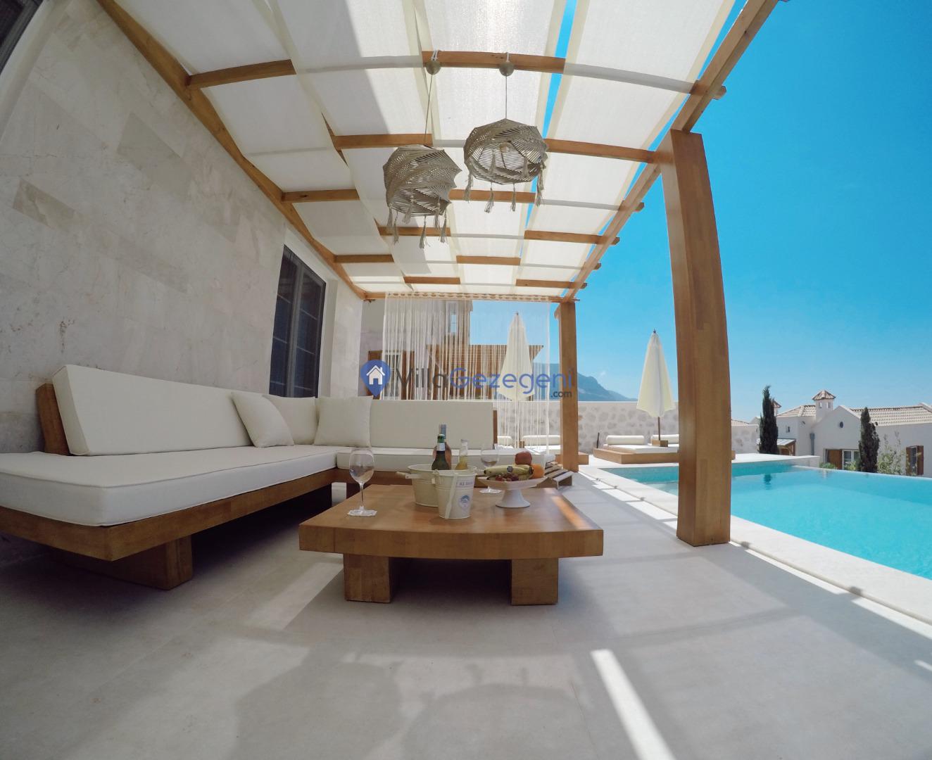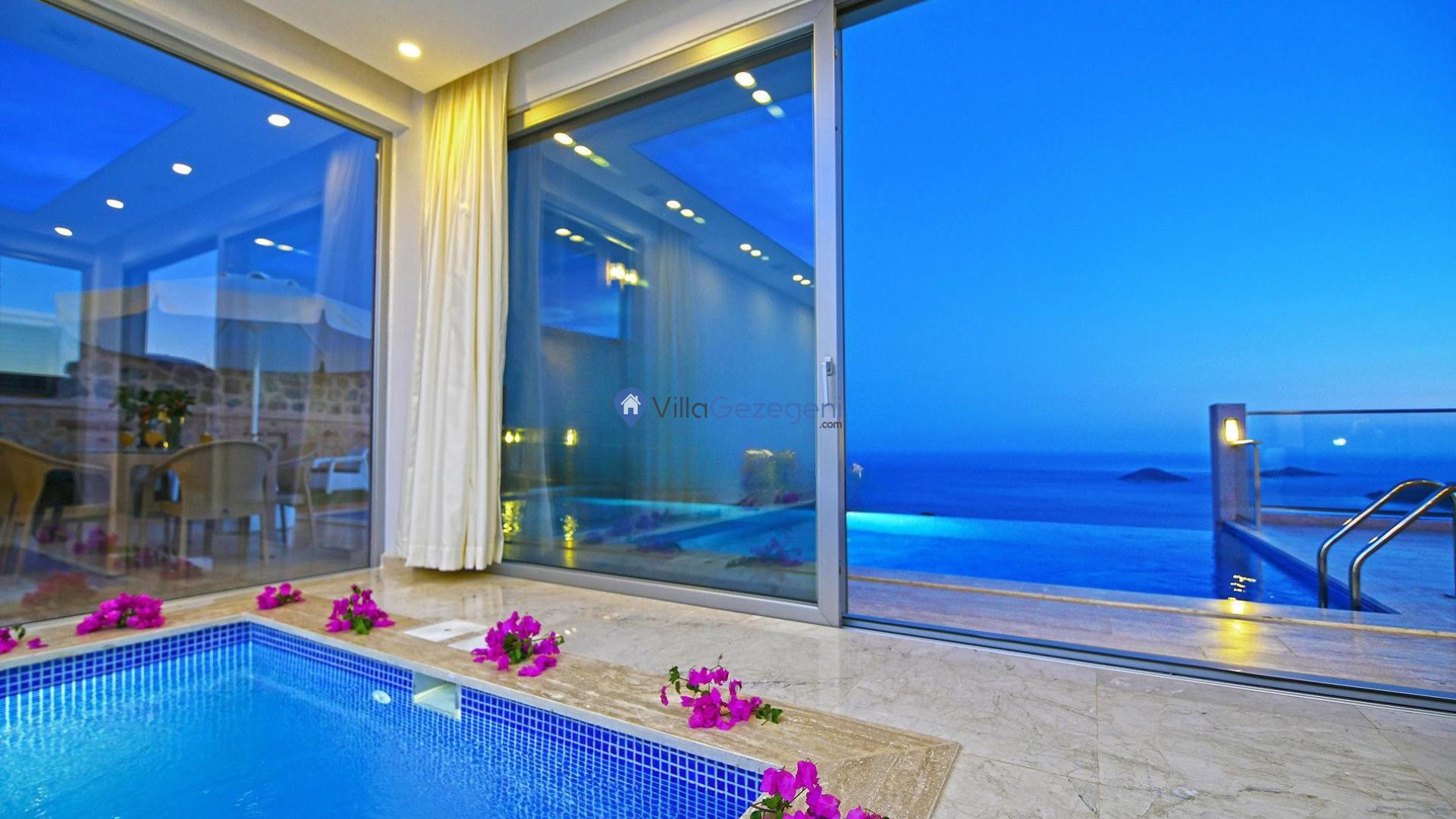 Villa İnfinity, Kalkan Lavanta Area'da 8 kişilik, deniz manzaralı, jakuzili, lüks tasarımlı, muhafazakar özellikli kalabalık gruplara uygun kiralık villa.