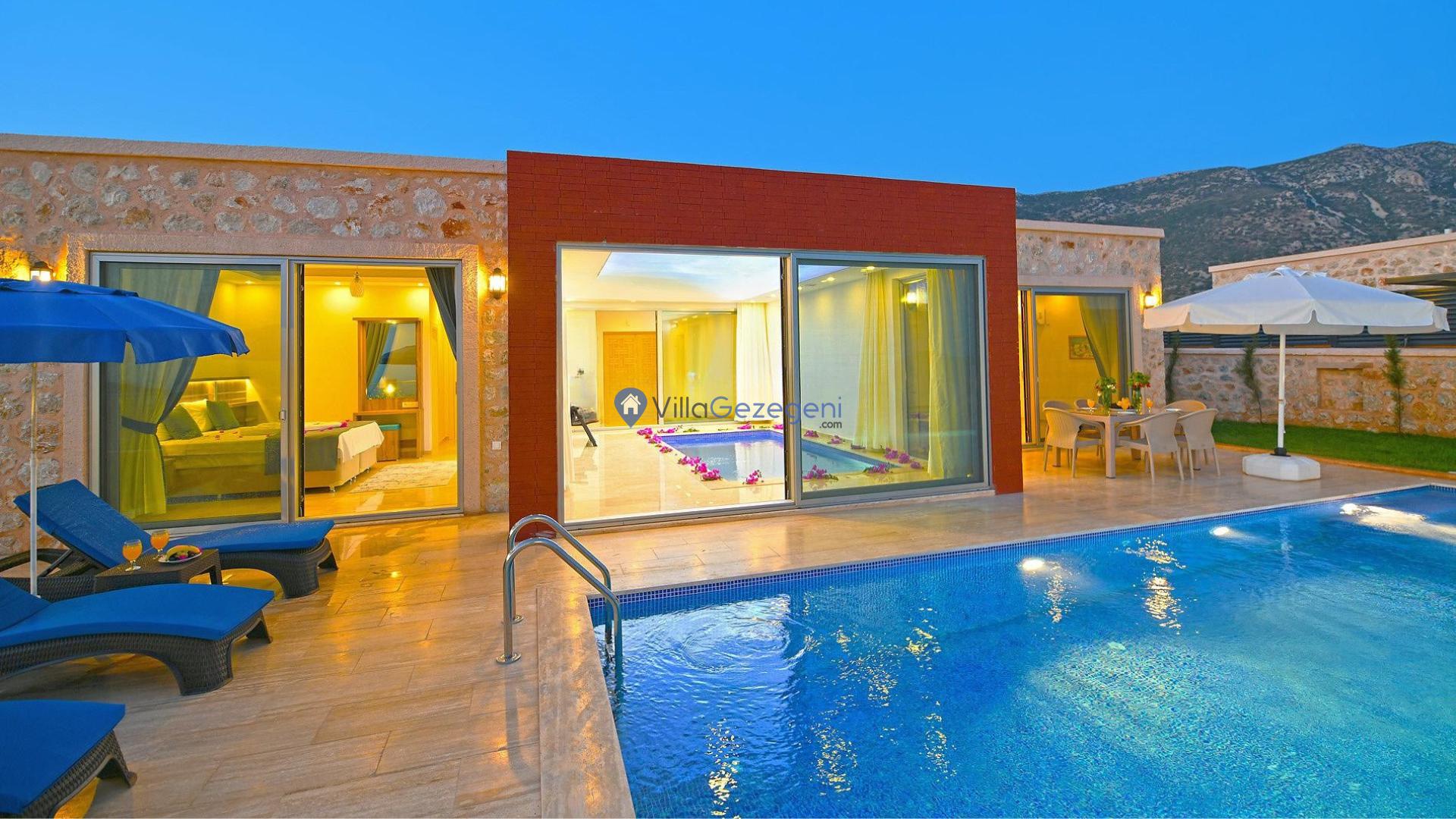Kalkan/Lavanta/Area Bölgesinde Yer Alan 3 Yatak Odalı 6 Kişi Kapasiteli Tatil Villasıdır.