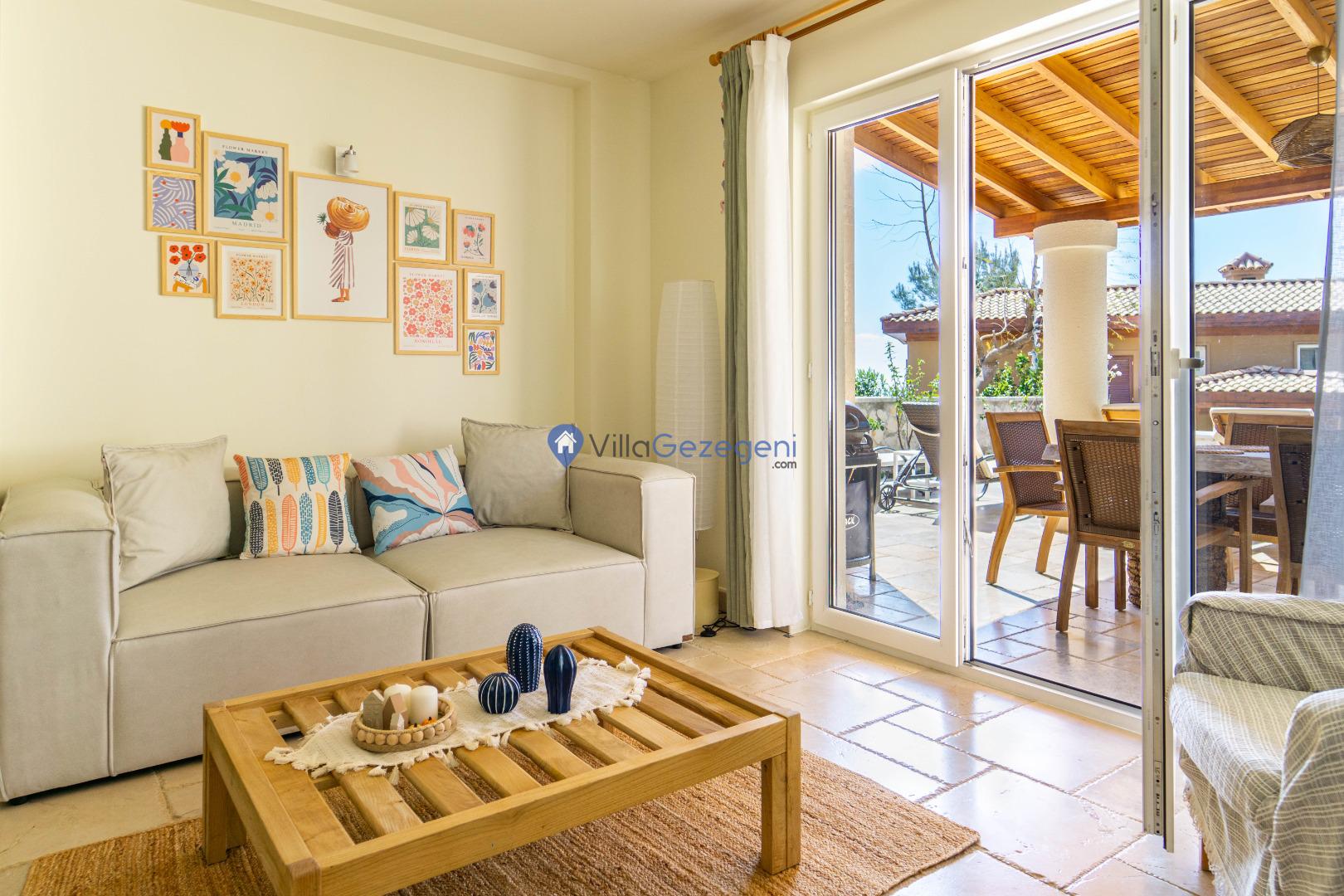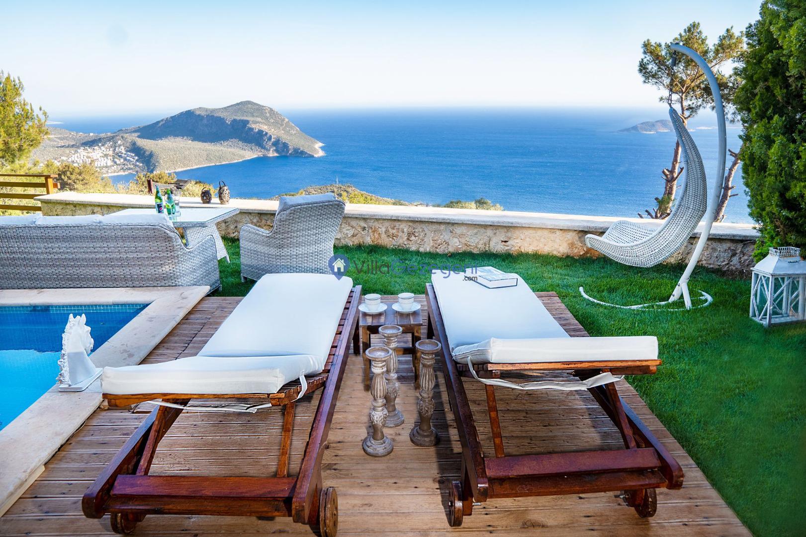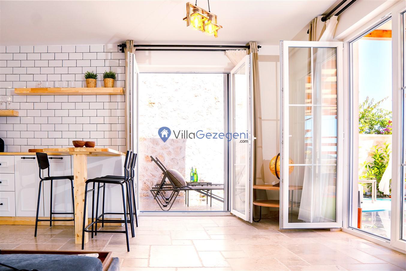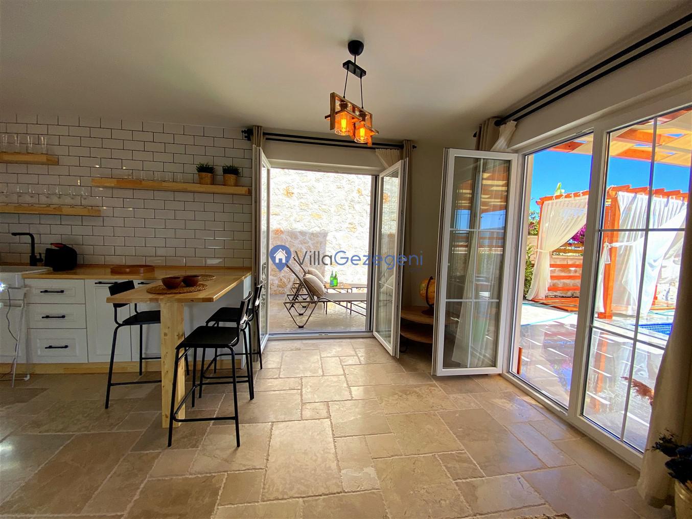 Villa Kite, Kalkan Lavant Area bölgesinde 5 kişilik, şehir merkezine yakın, jakuzili, doğa içerisinde, deniz manzaralı, kiralık aile ve balayı villası.