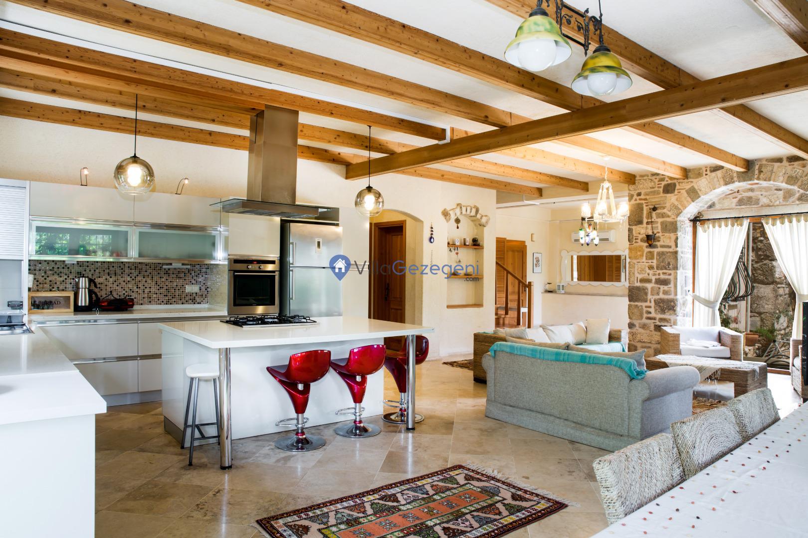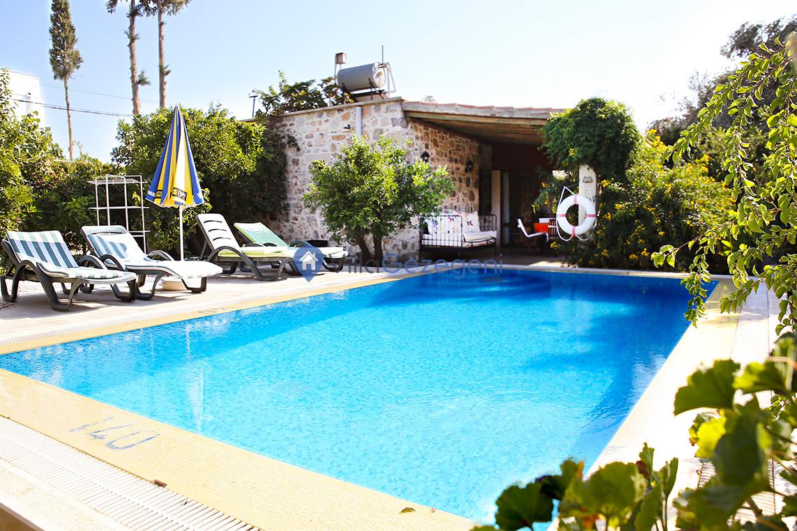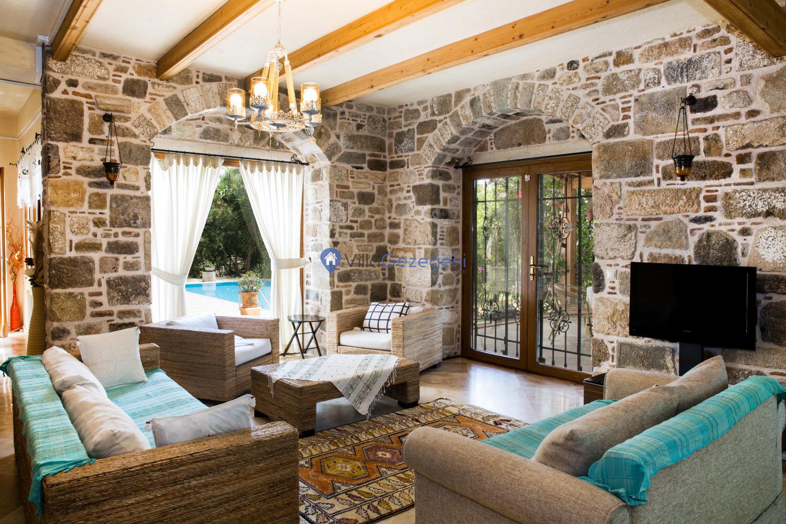 Villa Veyron 493, Bodrum Turgutreis'de 16 kişilik, markete ve restauranta yakın, doğa içerisinde, deniz manzaralı, kiralık geniş aile ve arkadaş villası.