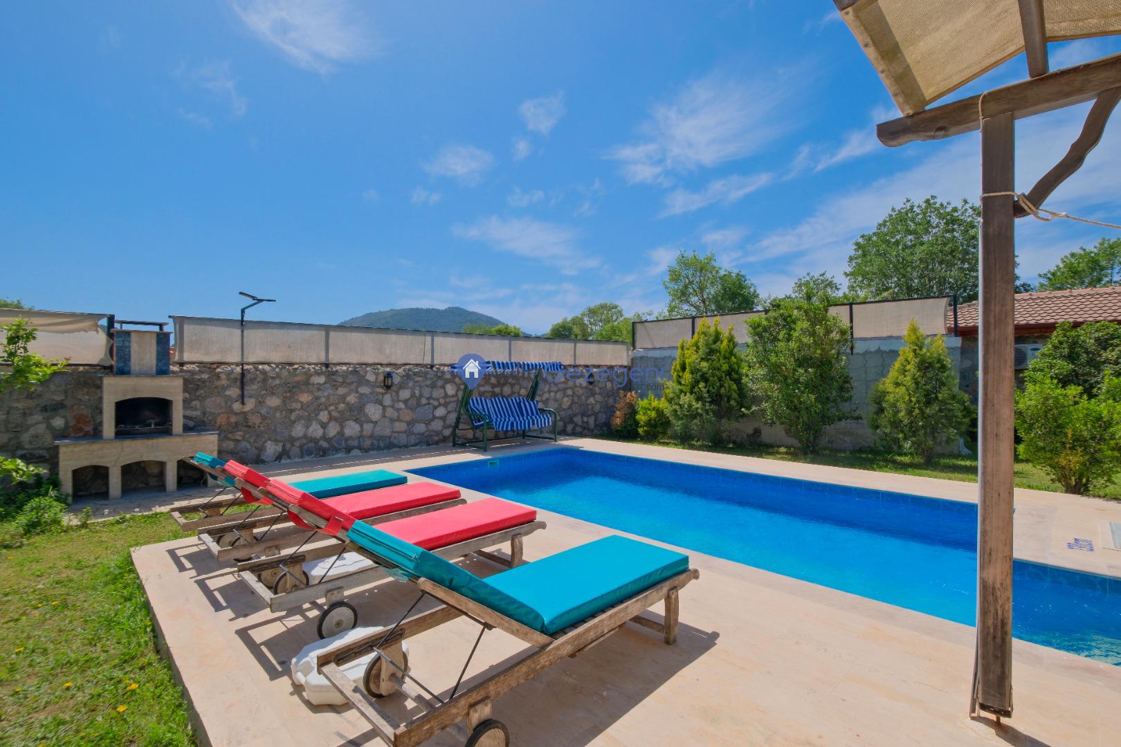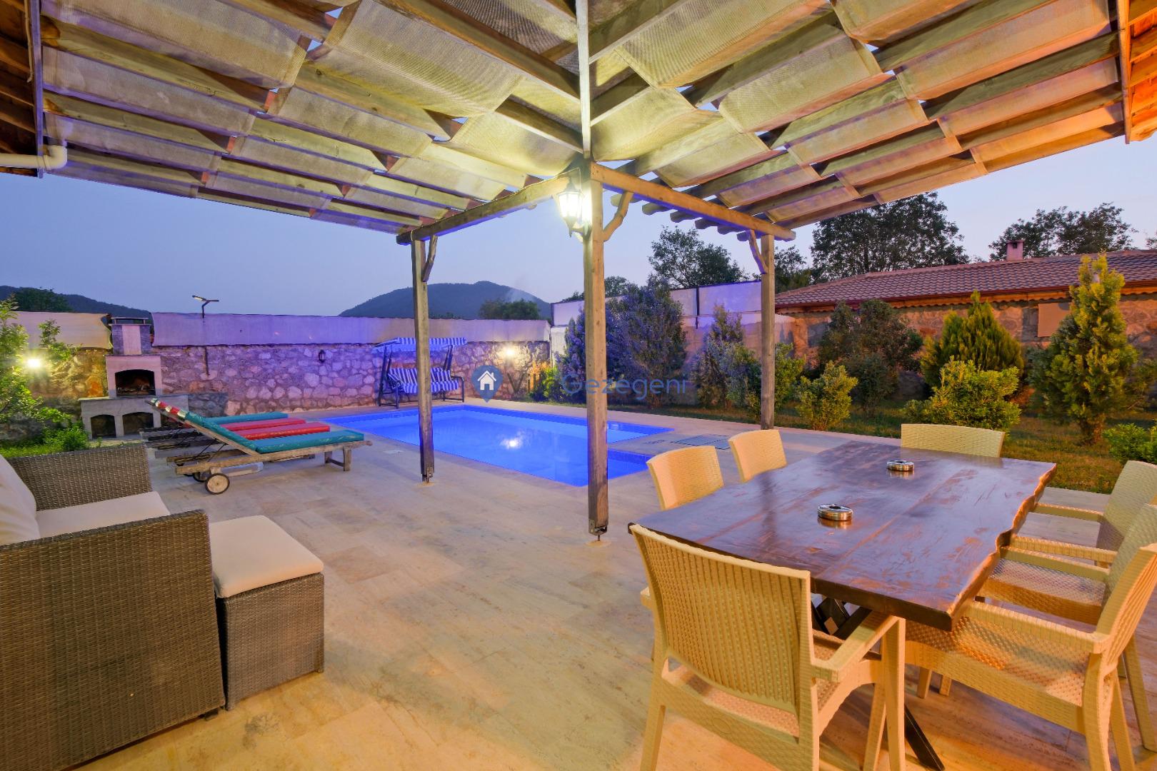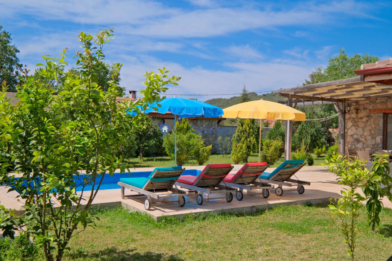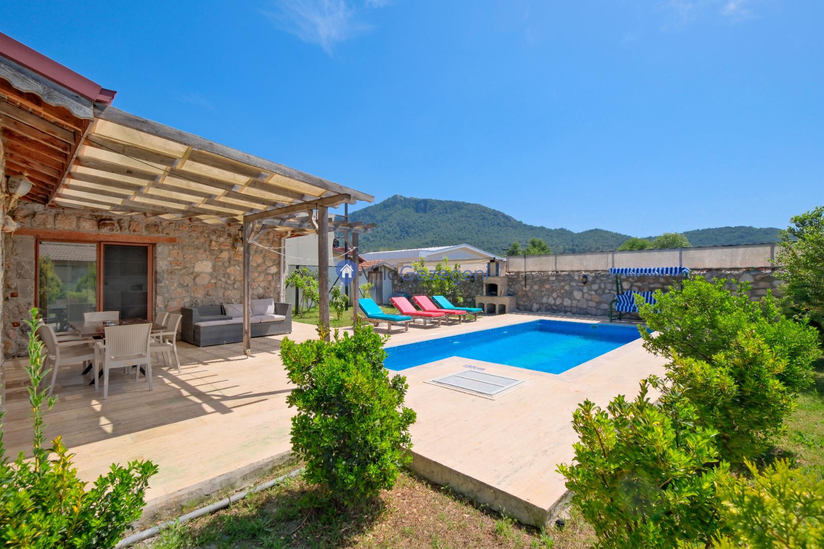 Villa Polo One, Fethiye Çalış bölgesinde 7 kişilik, doğa içinde, yeşil bahçe alanlı, plaja yakın konumda, kalabalık gruplar için uygun kiralık villa.