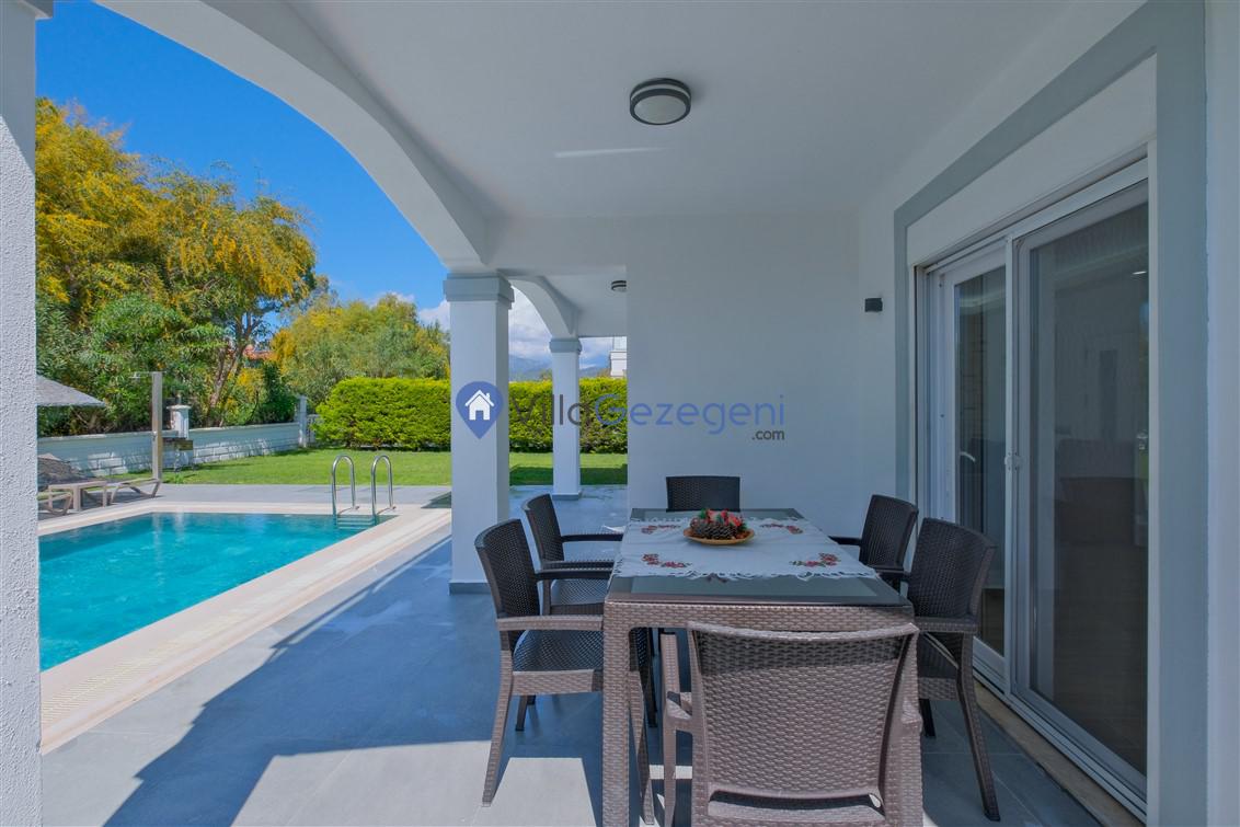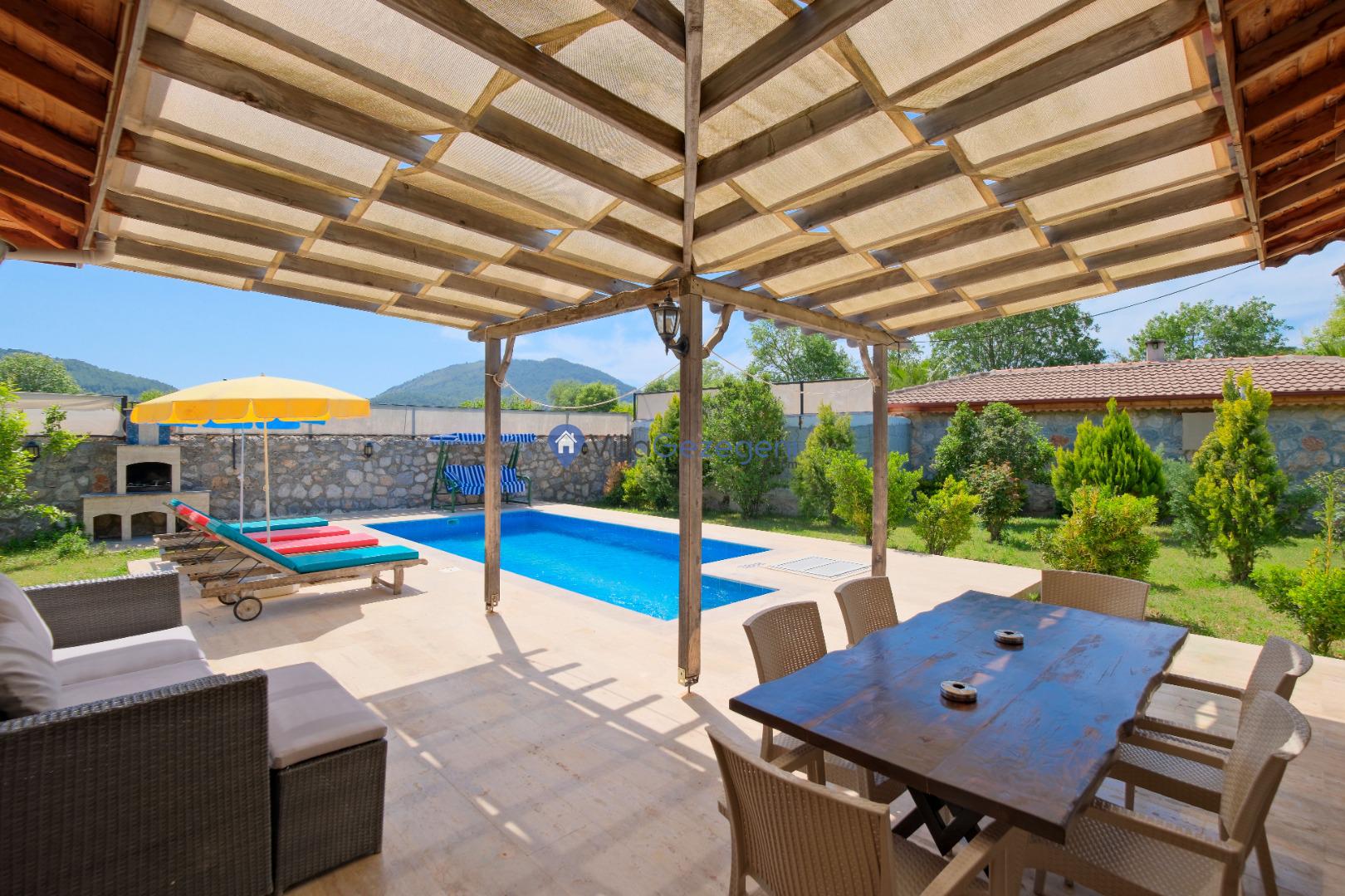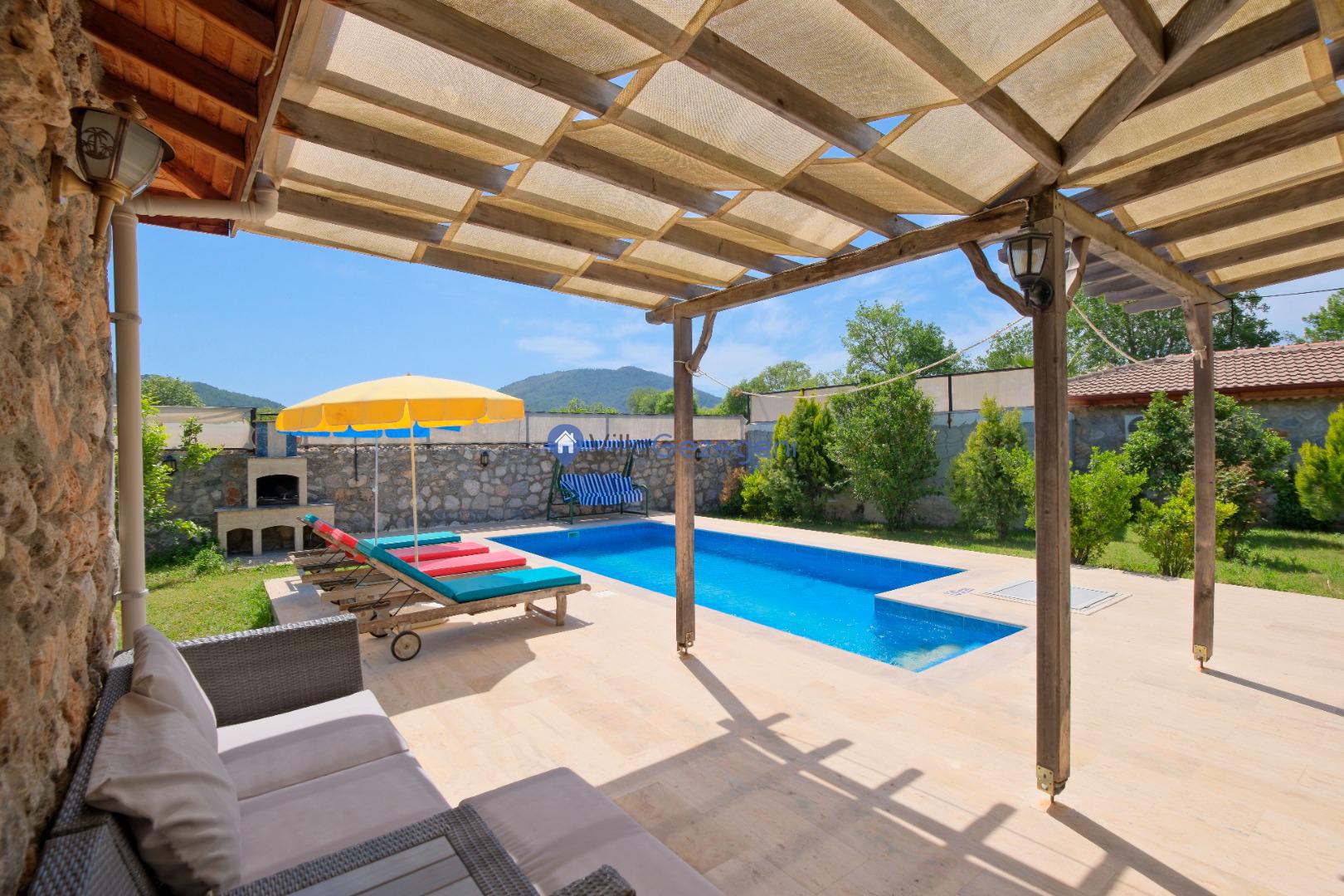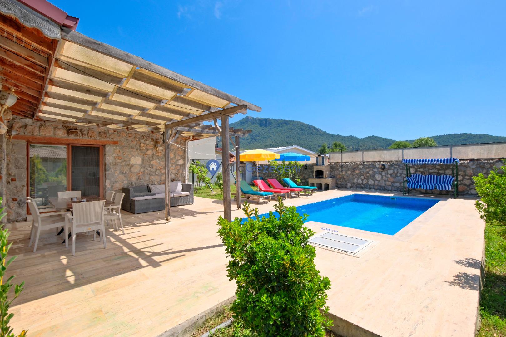 Villa Polo One, Fethiye Çalış bölgesinde 7 kişilik, doğa içinde, yeşil bahçe alanlı, plaja yakın konumda, kalabalık gruplar için uygun kiralık villa.