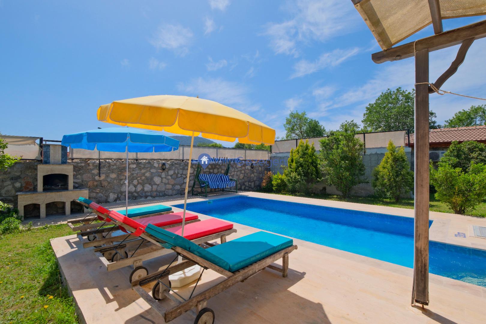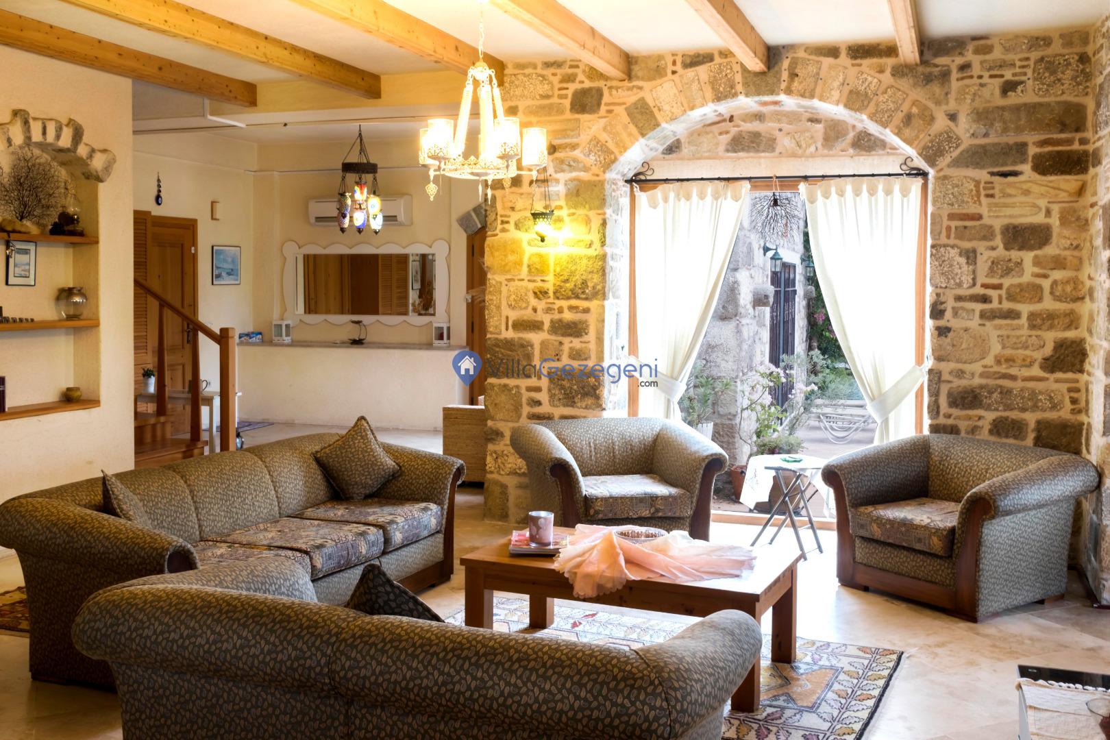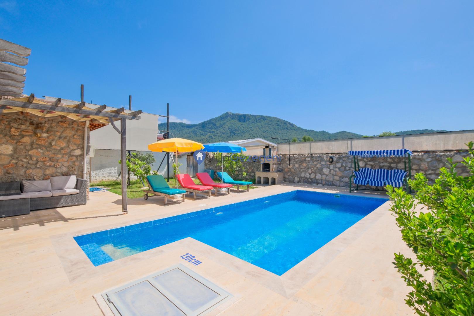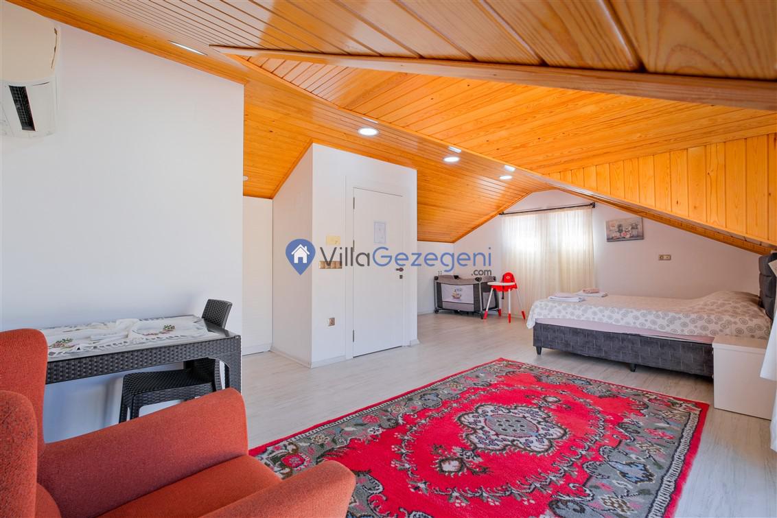 Villa Polo One, Fethiye Çalış bölgesinde 7 kişilik, doğa içinde, yeşil bahçe alanlı, plaja yakın konumda, kalabalık gruplar için uygun kiralık villa.