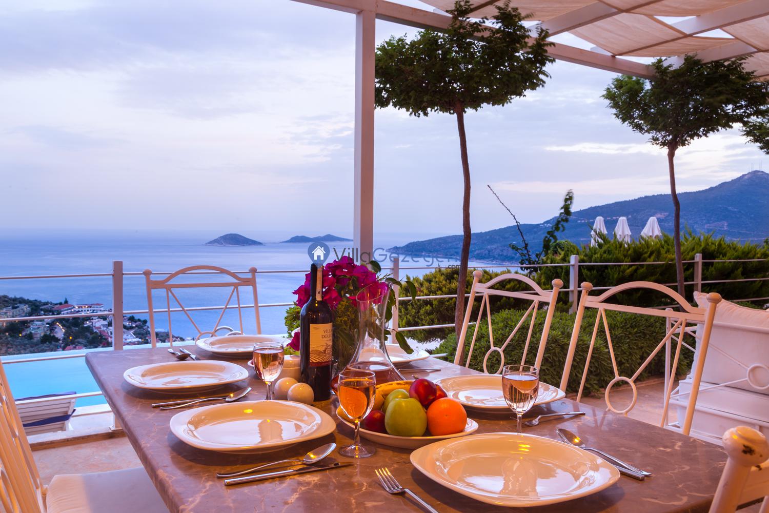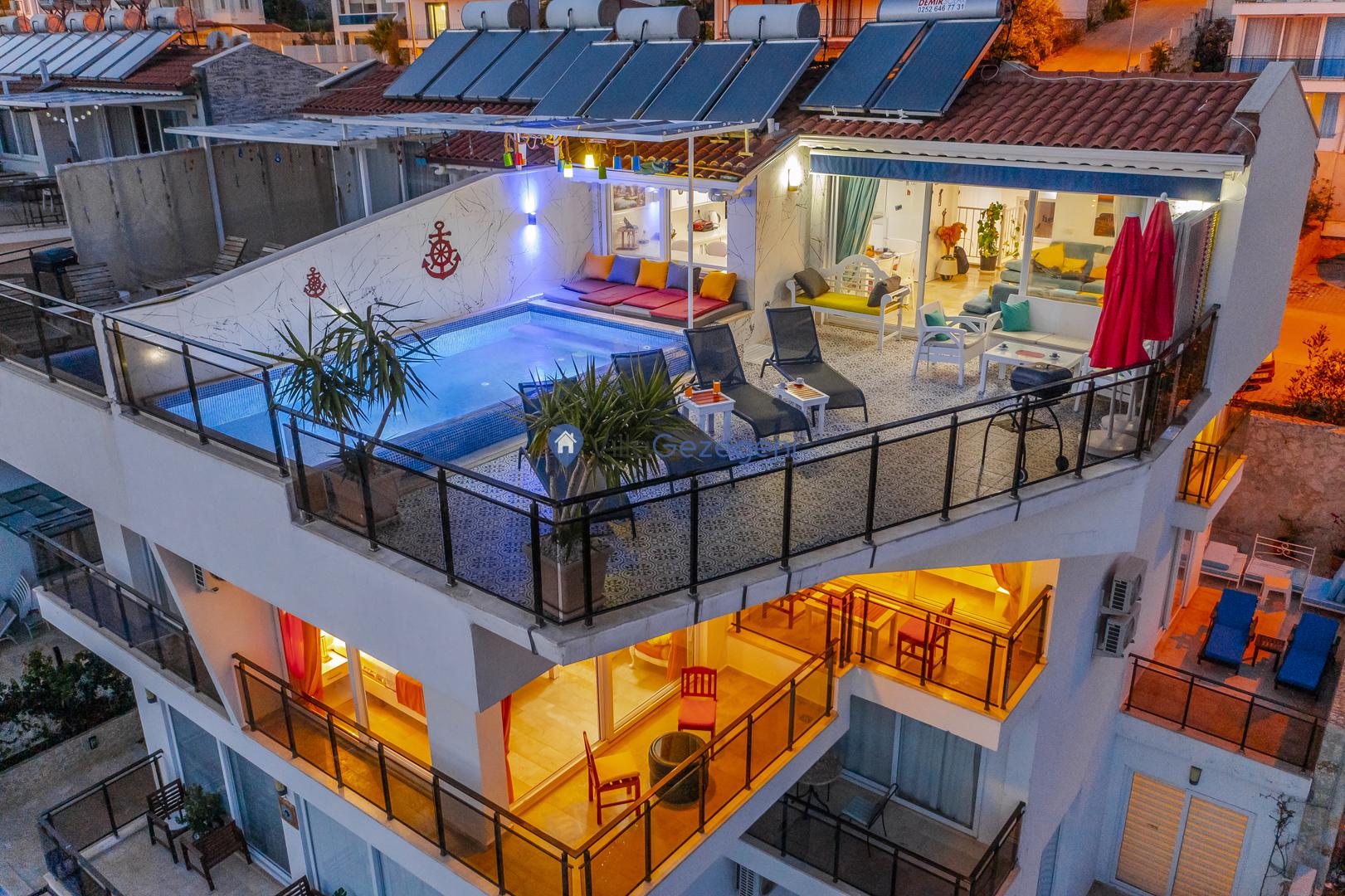 Akşam saatlerinin verdiği sessizlik ile teras ışıklarının altında vakit geçirme planınıza deniz manzarasını eklemeyi unutmayın. Deniz manzaralı özel havuzlu apartlarımız ekonomik ve eğlenceli bir tatil için en uygun seçenekler arasındadır. Aileniz, eşiniz veya dostlarınız ile eğlence dolu bir tatil için size uygun olan apartlarımızdan birini seçebilirsiniz.