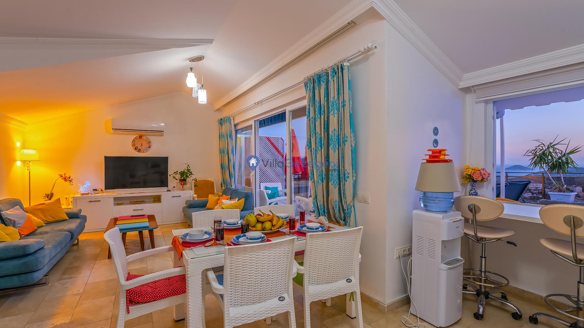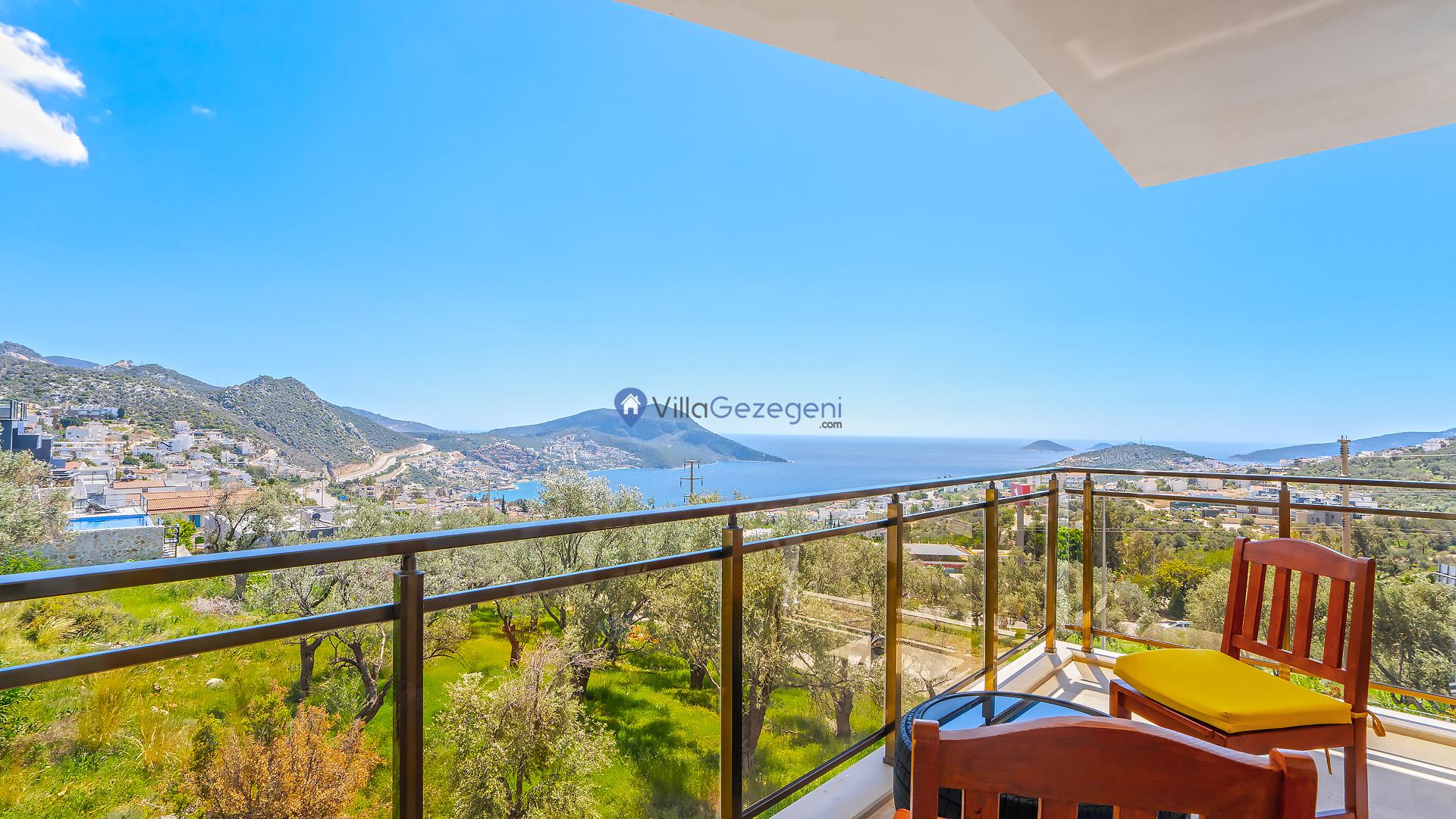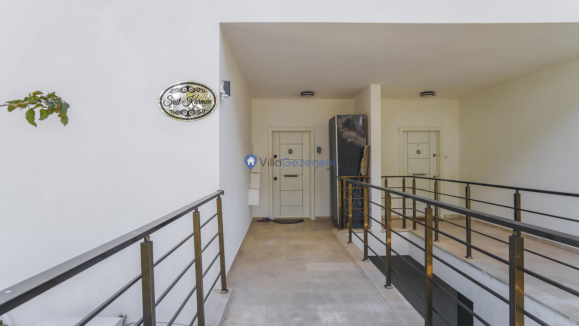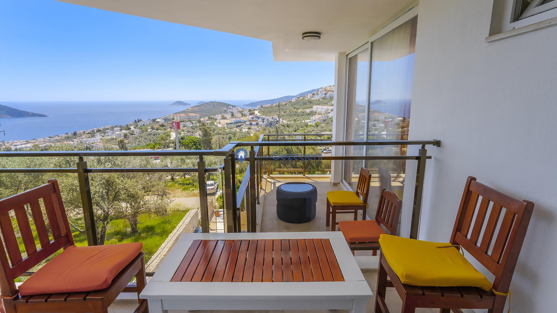 Suit Karmen, Kalkan Ortaalan'da 6 kişilik, markete ve restauranta yakın, deniz manzaralı, kiralık geniş aile ve arkadaş grupları için kiralık apart