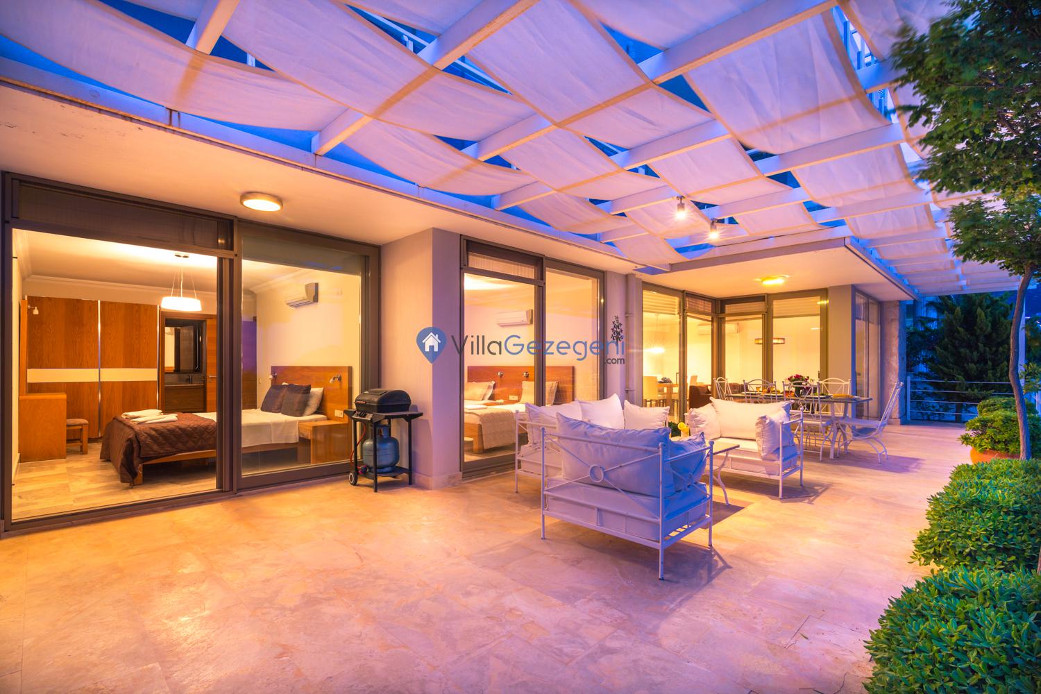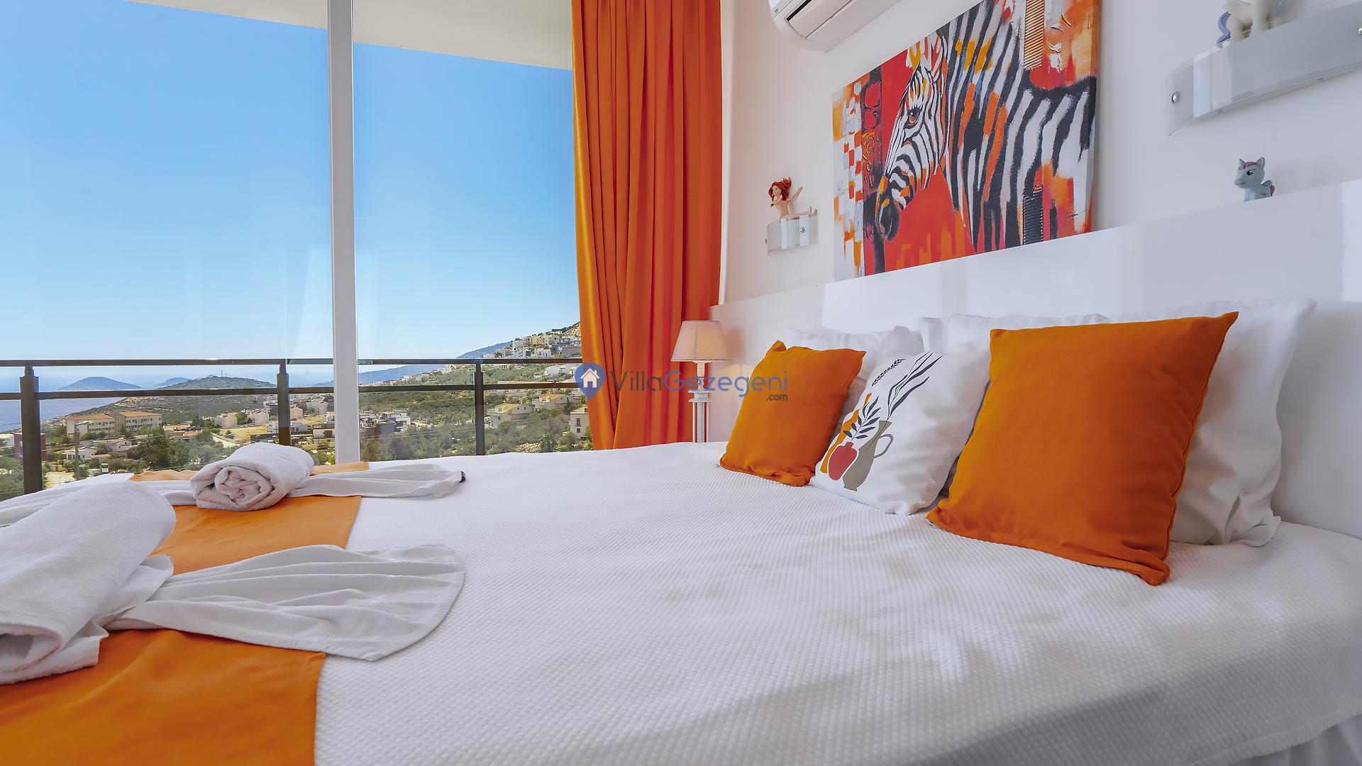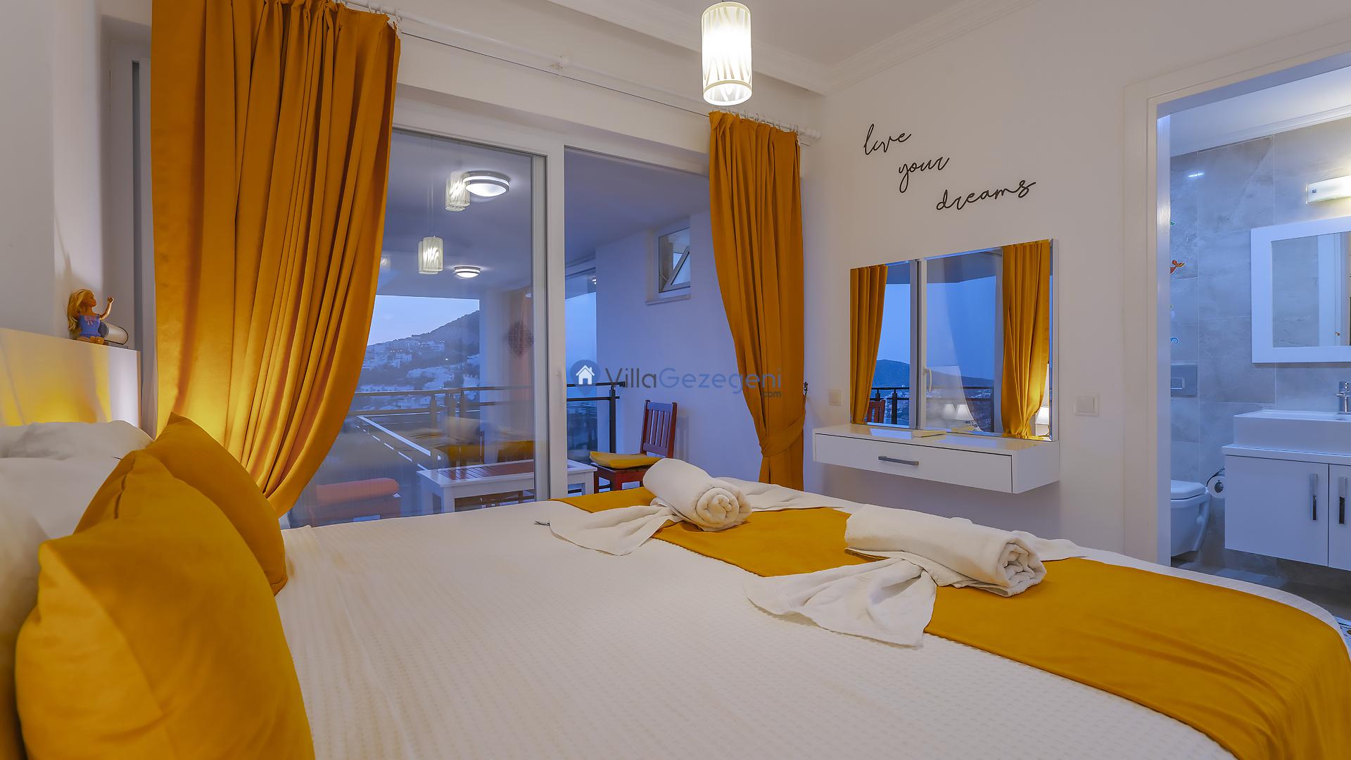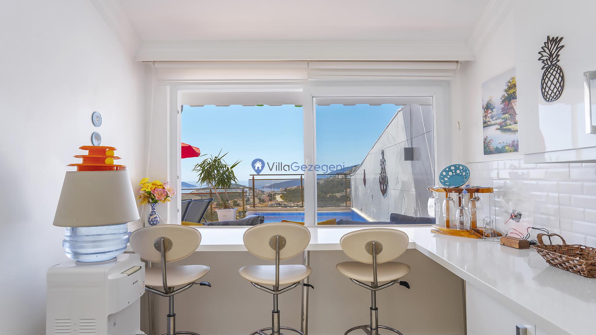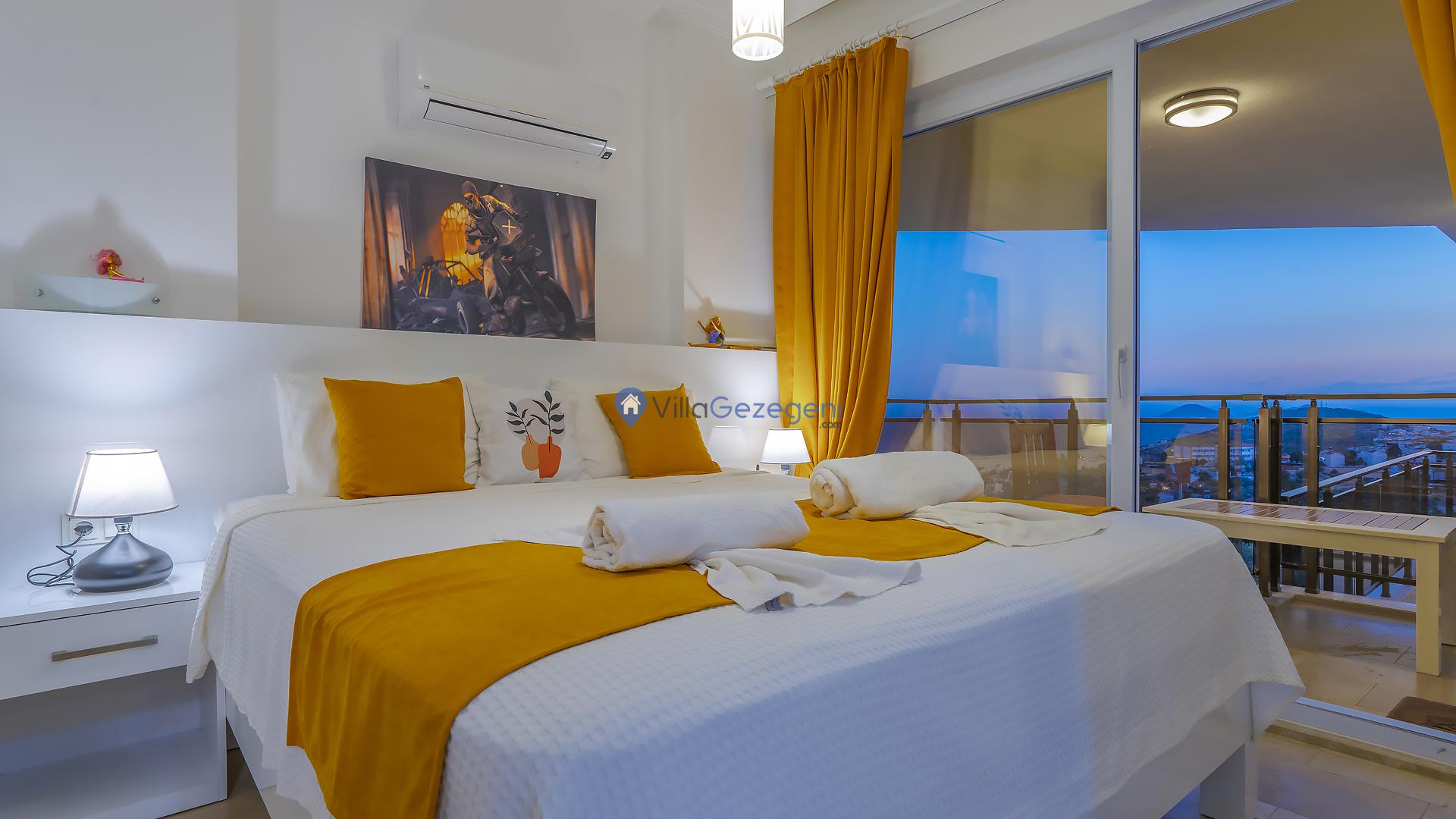 Suit Karmen, Kalkan Ortaalan'da 6 kişilik, markete ve restauranta yakın, deniz manzaralı, kiralık geniş aile ve arkadaş grupları için kiralık apart