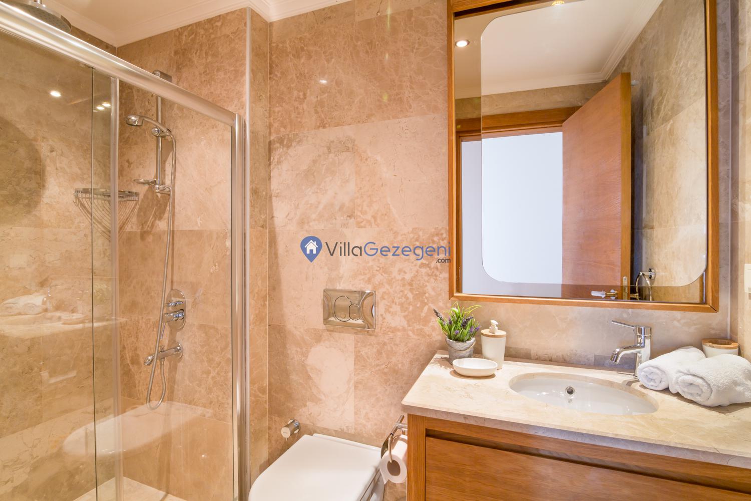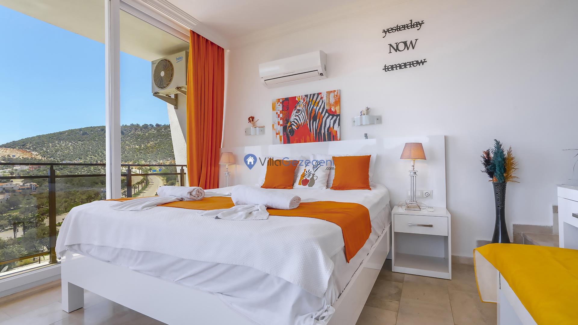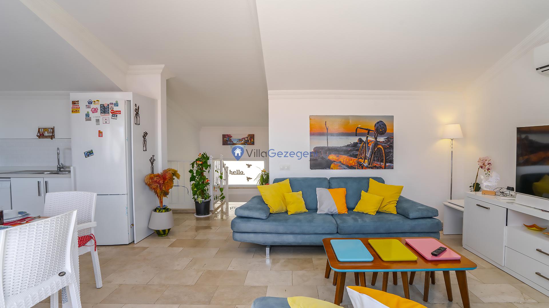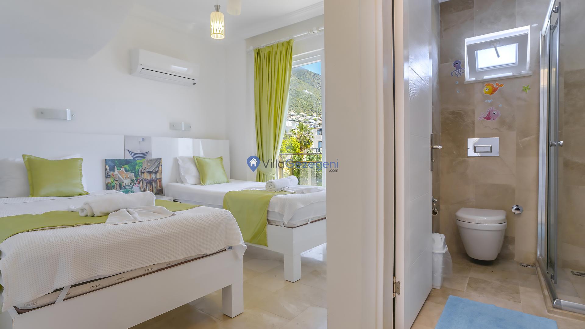 Suit Karmen, Kalkan Ortaalan'da 6 kişilik, markete ve restauranta yakın, deniz manzaralı, kiralık geniş aile ve arkadaş grupları için kiralık apart