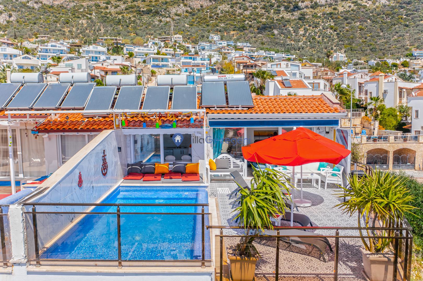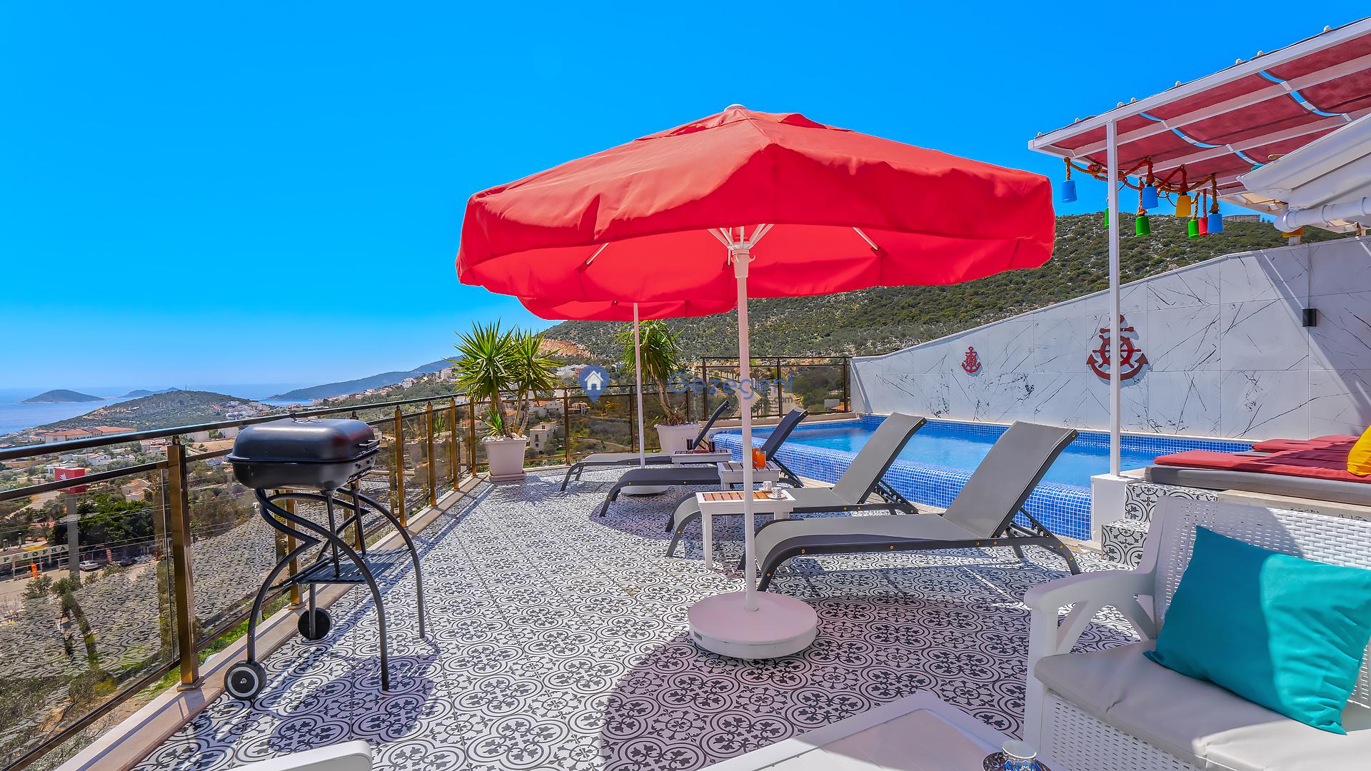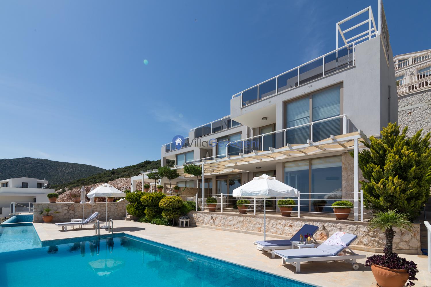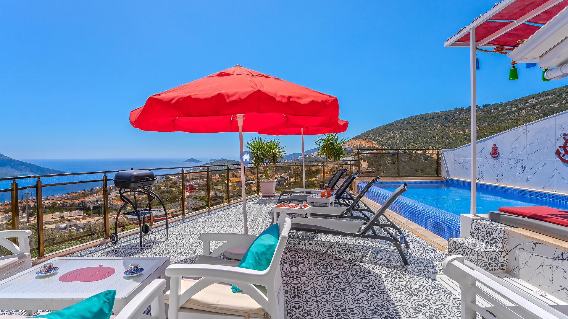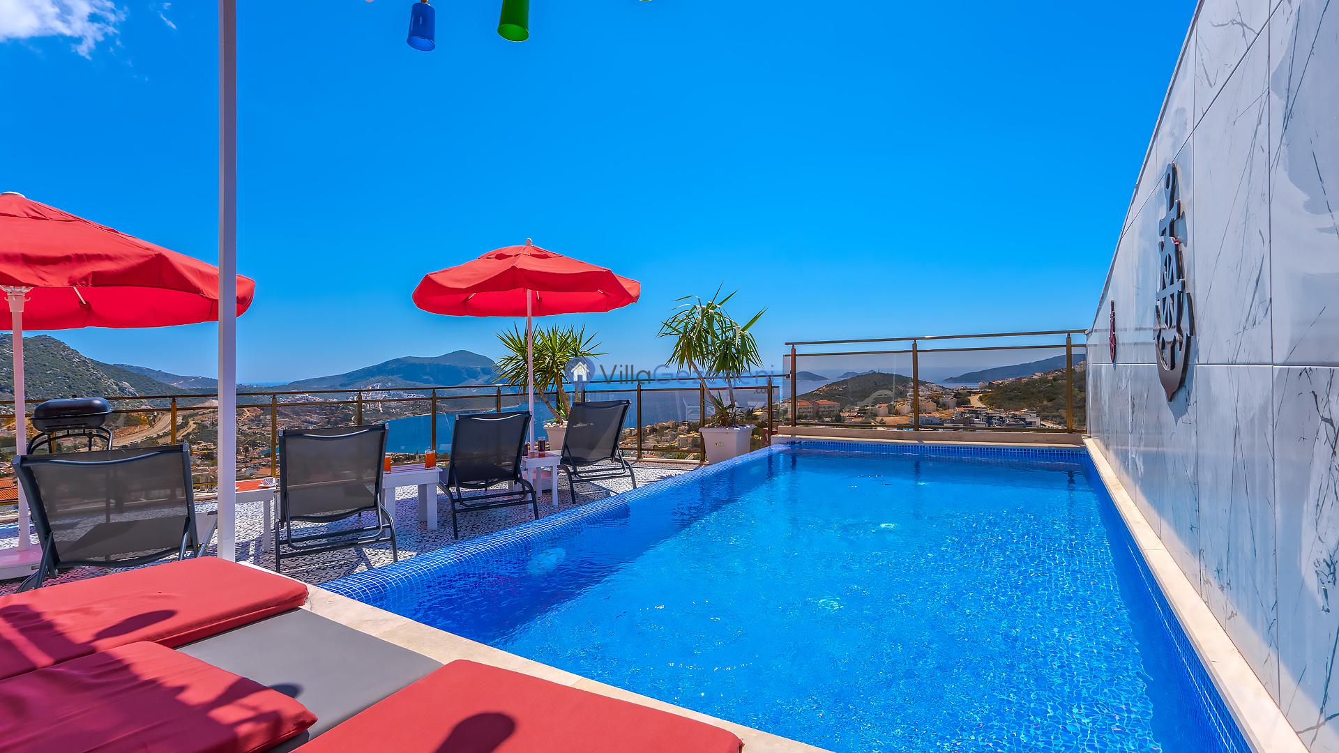 Kalkan Ortaalan’da sonsuzluk havuzlu, 6 kişilik manzaralı Suit Derin Deniz sizi bekliyor. Konforlu ve huzurlu tatil için hemen rezervasyon yapın! 🏖️